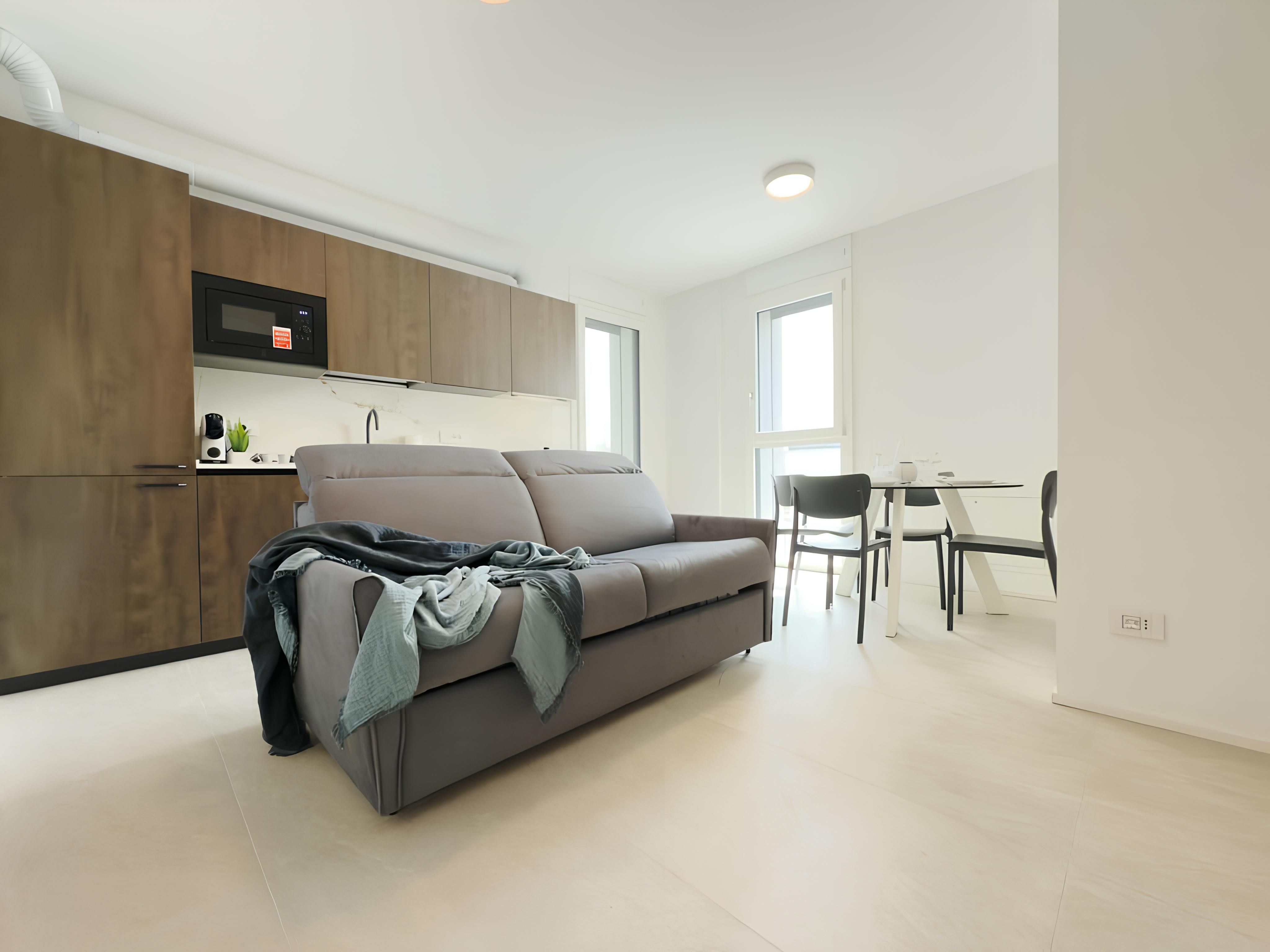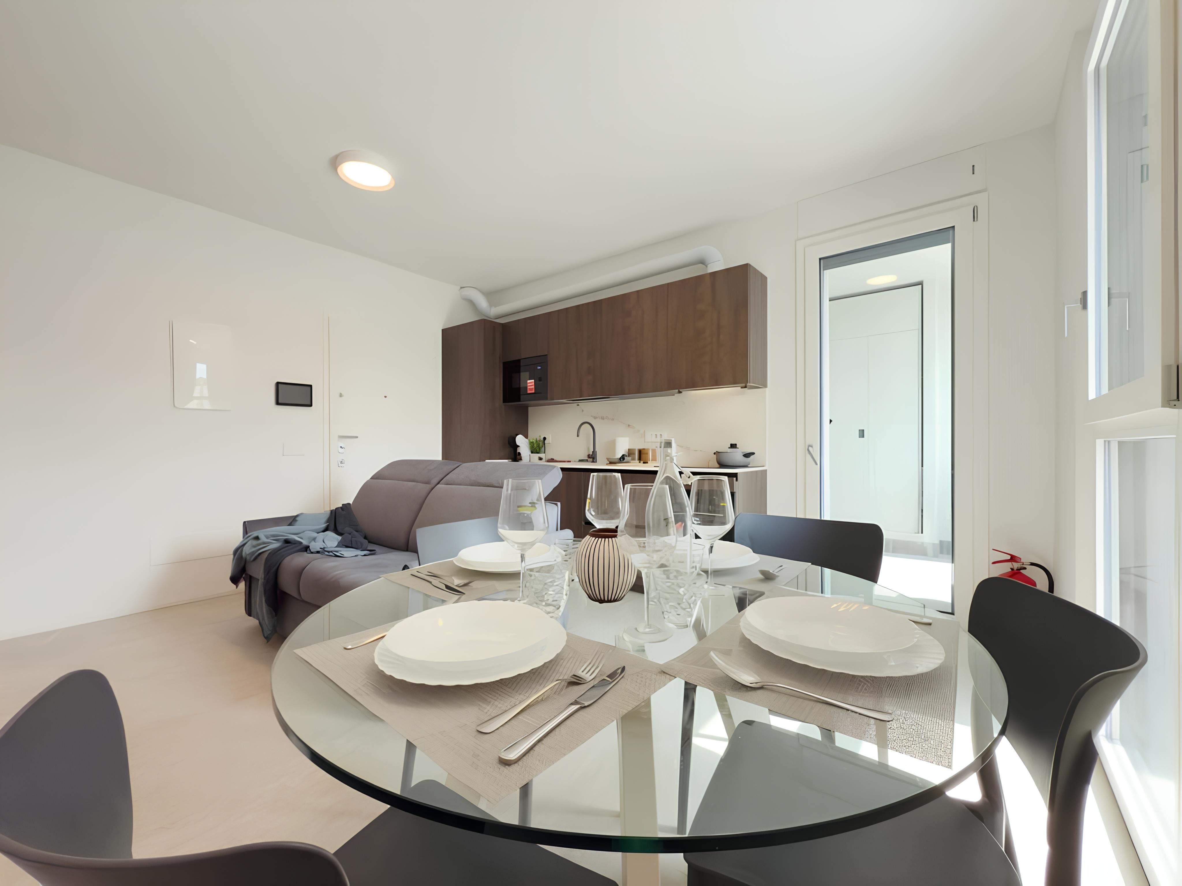 Located in a quiet residential neighbourhood, you’ll find cafes, restaurants, and a variety of shops within walking distance. The Shoah Memorial of Milan is also a short stroll away. The apartment is near the University of Milan and creative districts like NoLo and Ventura Milano as well. For many of the city’s key attractions, though, you’ll need to drive or make use of the great public transport links here. Back at this home, there’s a private balcony where you can relax after a busy day. The large open-plan living space also accommodates two guests on a sofa bed at full occupancy. And if you want to keep up your fitness regime while away, there’s a treadmill here.
