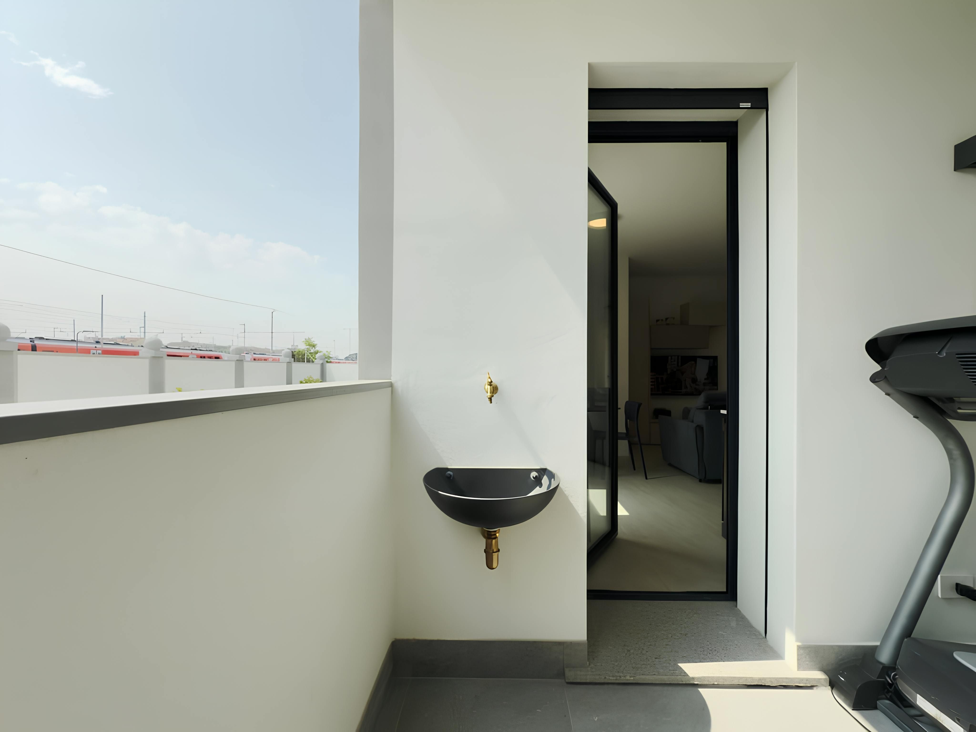 *The treadmill is on the balcony, along with an outdoor sink.