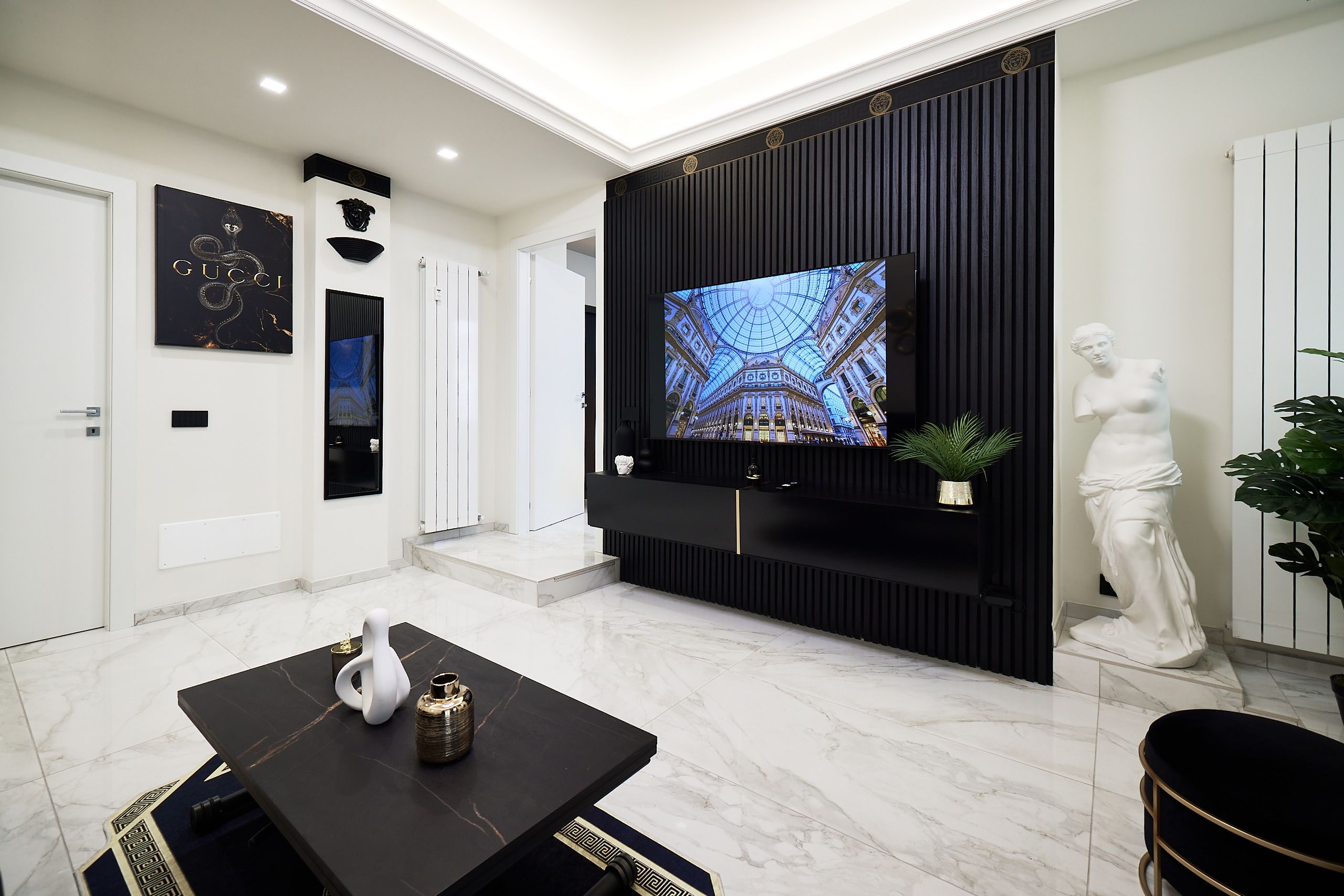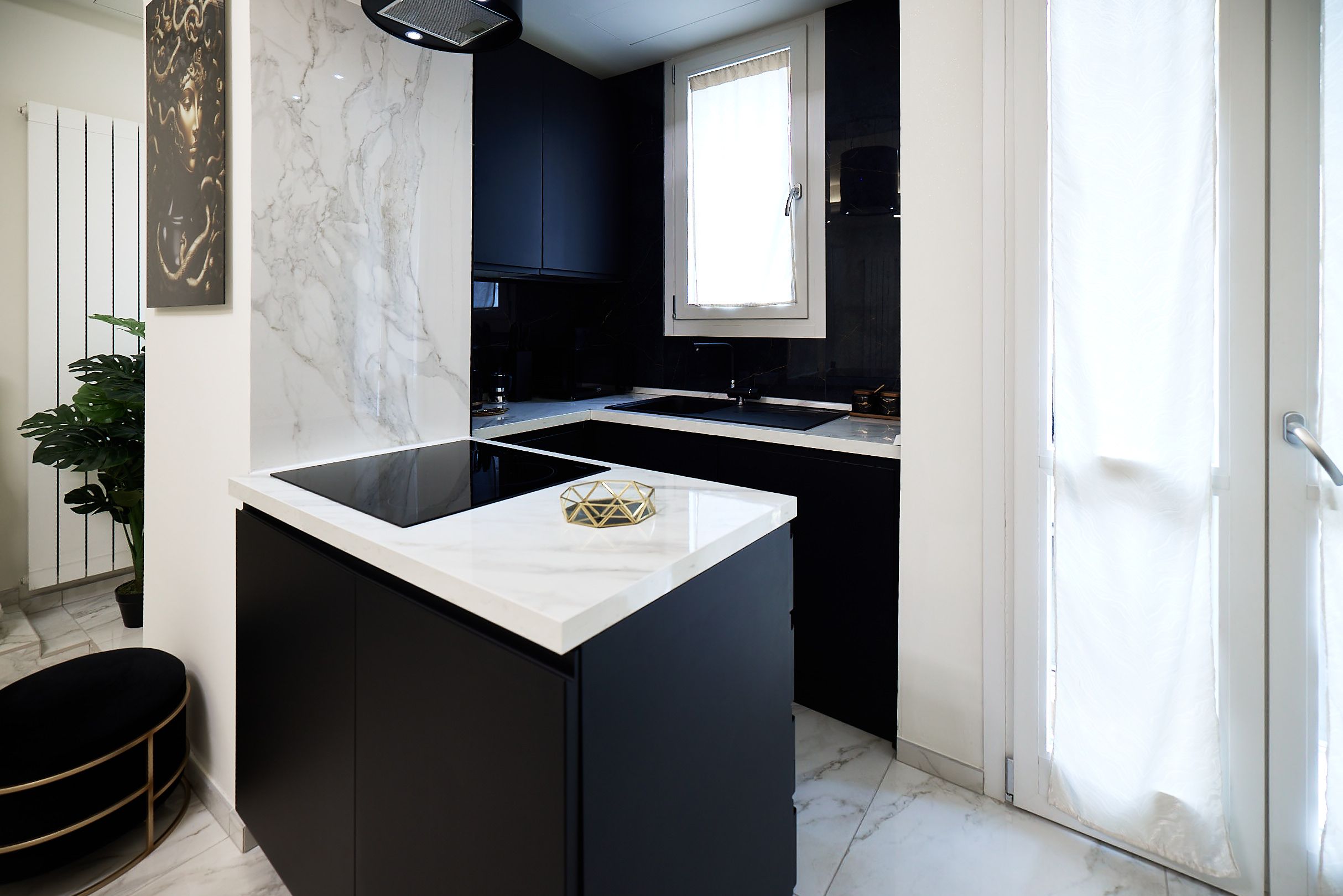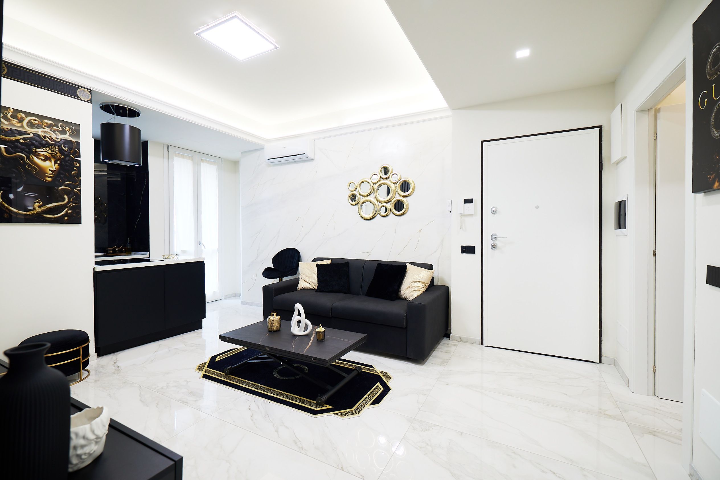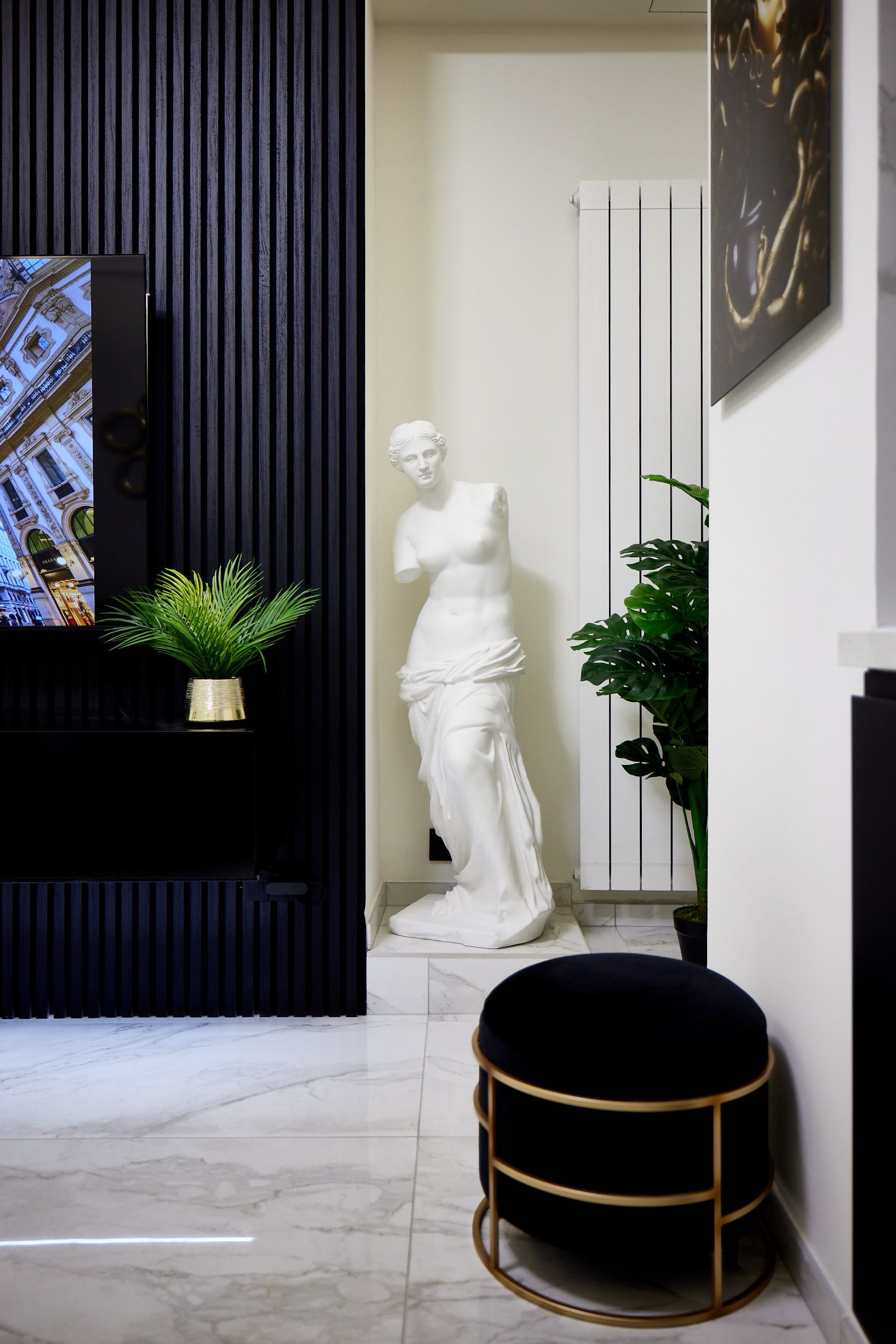You’ll find this apartment in the bustling Isola district. The shops, clubs, and restaurants of Corso Como are only a twelve-minute walk away, and Porta Nuova is ten minutes away. There are excellent public transport links – it takes less than ten minutes to reach the iconic Duomo on the metro. The apartment is a modern masterpiece of marble finishes and high-end furnishings. Fashion-themed artwork adorns the walls, and luxe lighting gives the living room a contemporary vibe. Two guests will sleep on a sofa bed in the living room at full occupancy – if space and privacy are key for you, we’d stick to a guest count of two.