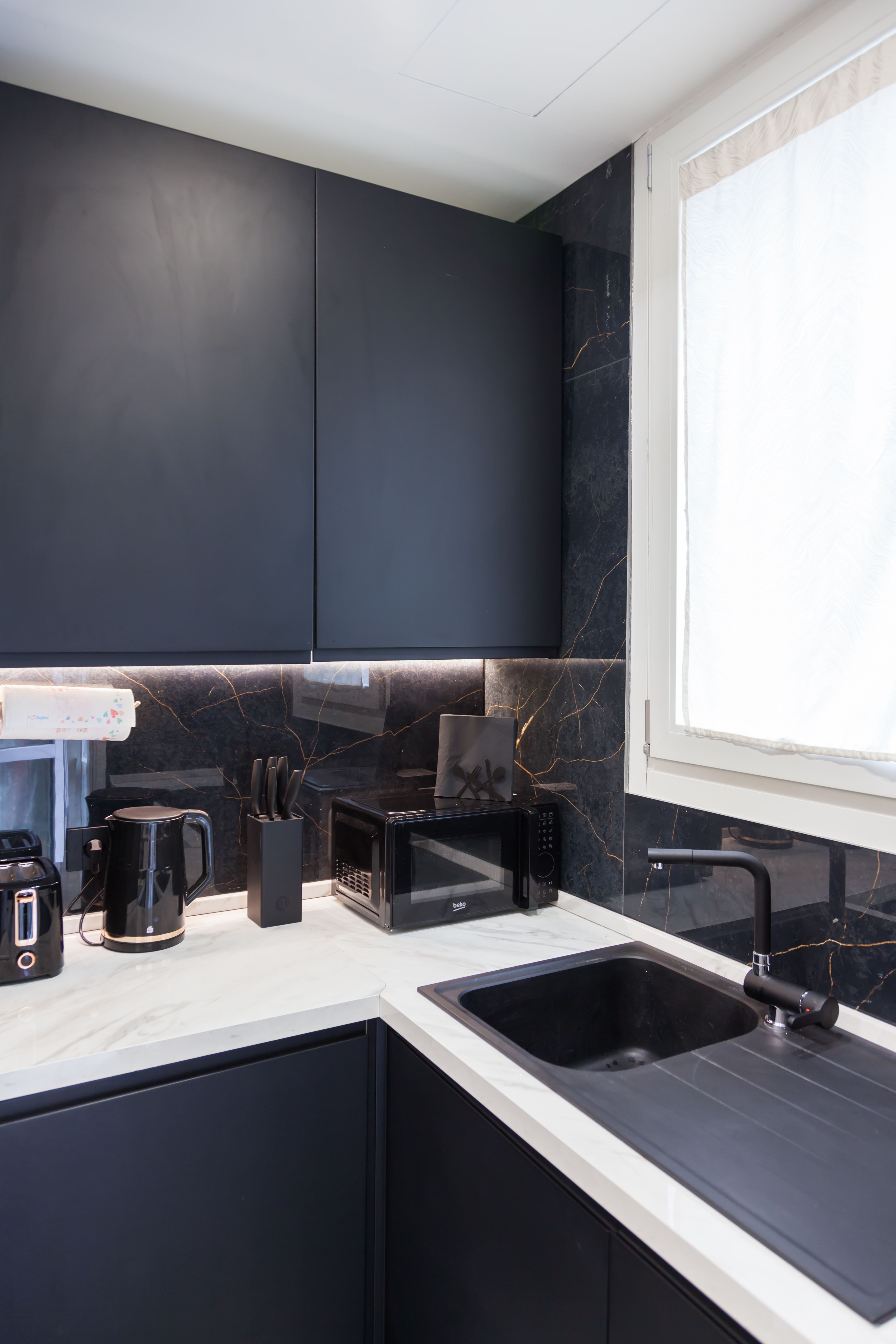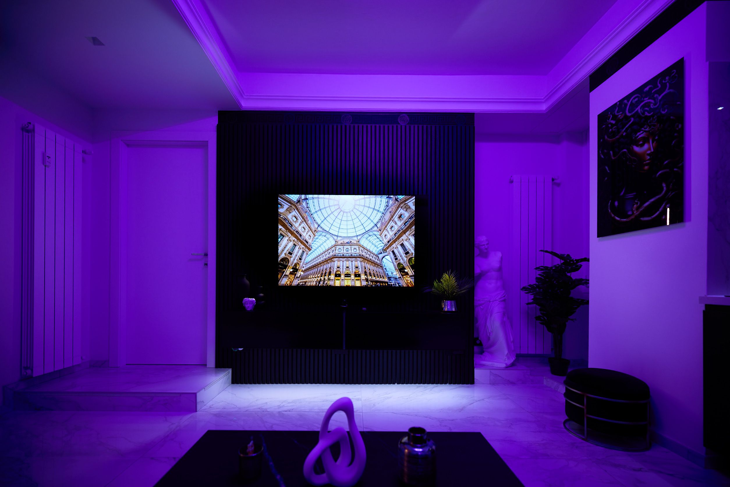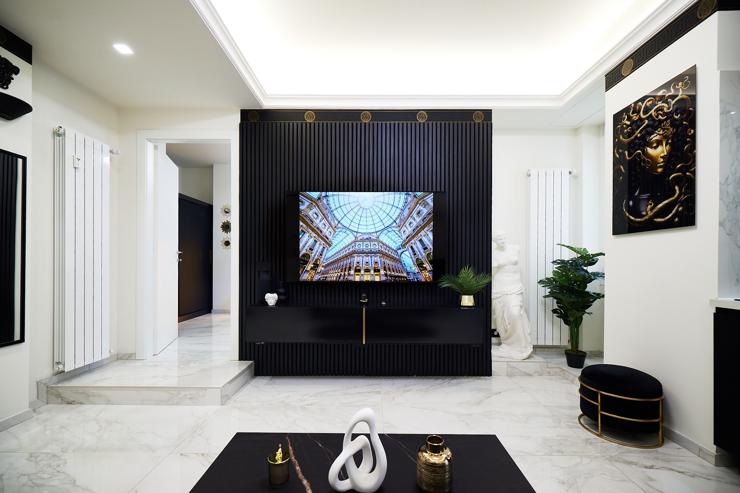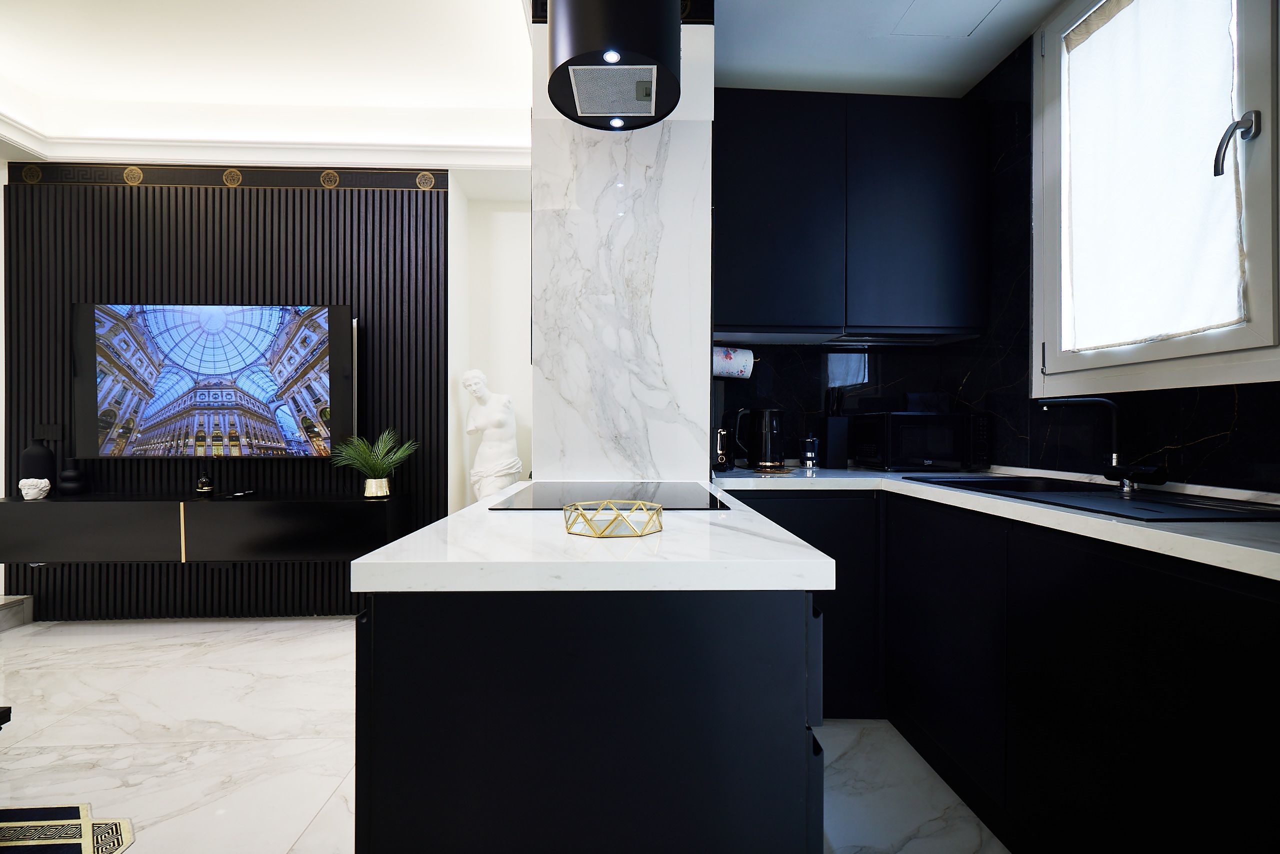 You’ll find this apartment in the bustling Isola district. The shops, clubs, and restaurants of Corso Como are only a twelve-minute walk away, and Porta Nuova is ten minutes away. There are excellent public transport links – it takes less than ten minutes to reach the iconic Duomo on the metro. The apartment is a modern masterpiece of marble finishes and high-end furnishings. Fashion-themed artwork adorns the walls, and luxe lighting gives the living room a contemporary vibe. Two guests will sleep on a sofa bed in the living room at full occupancy – if space and privacy are key for you, we’d stick to a guest count of two.