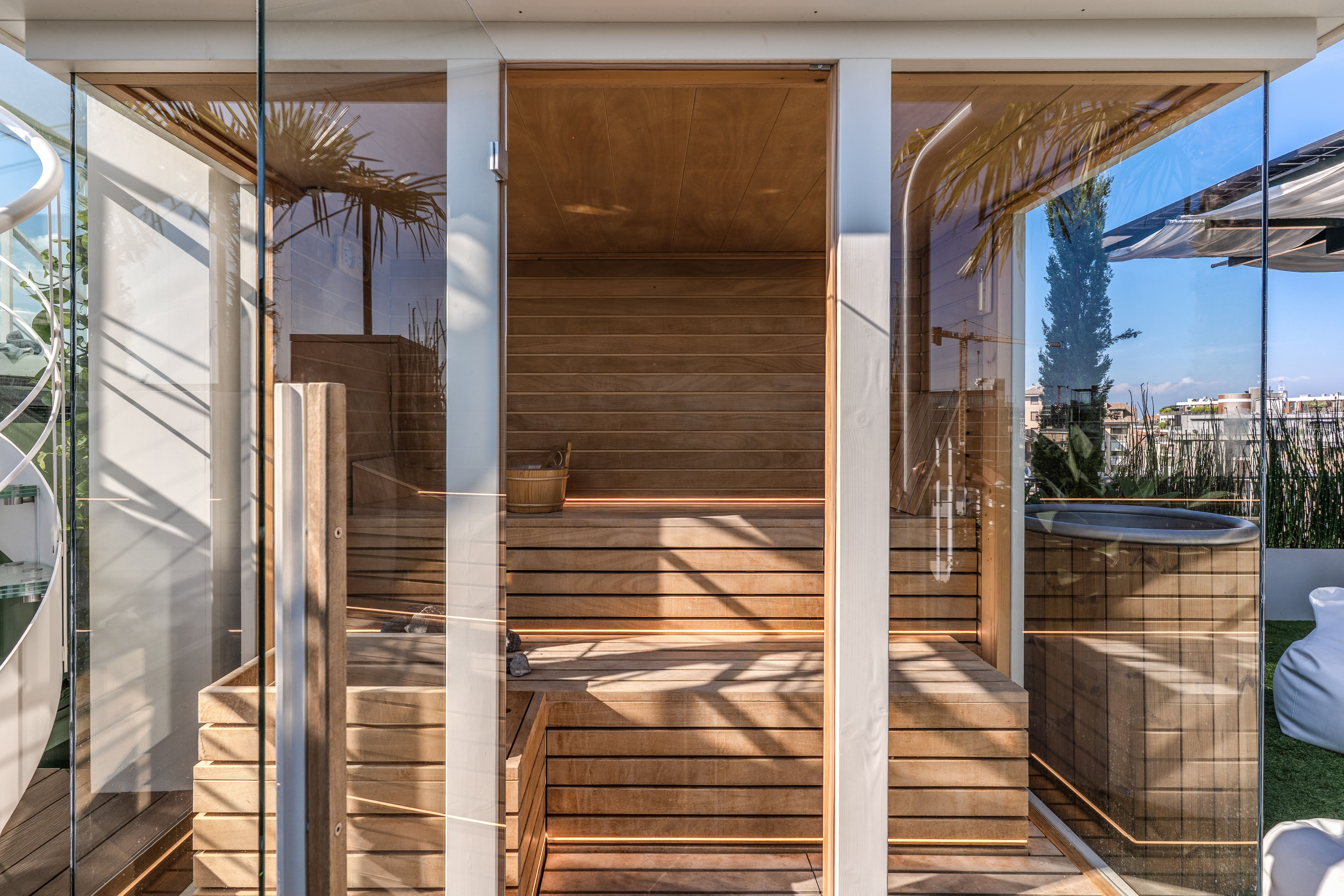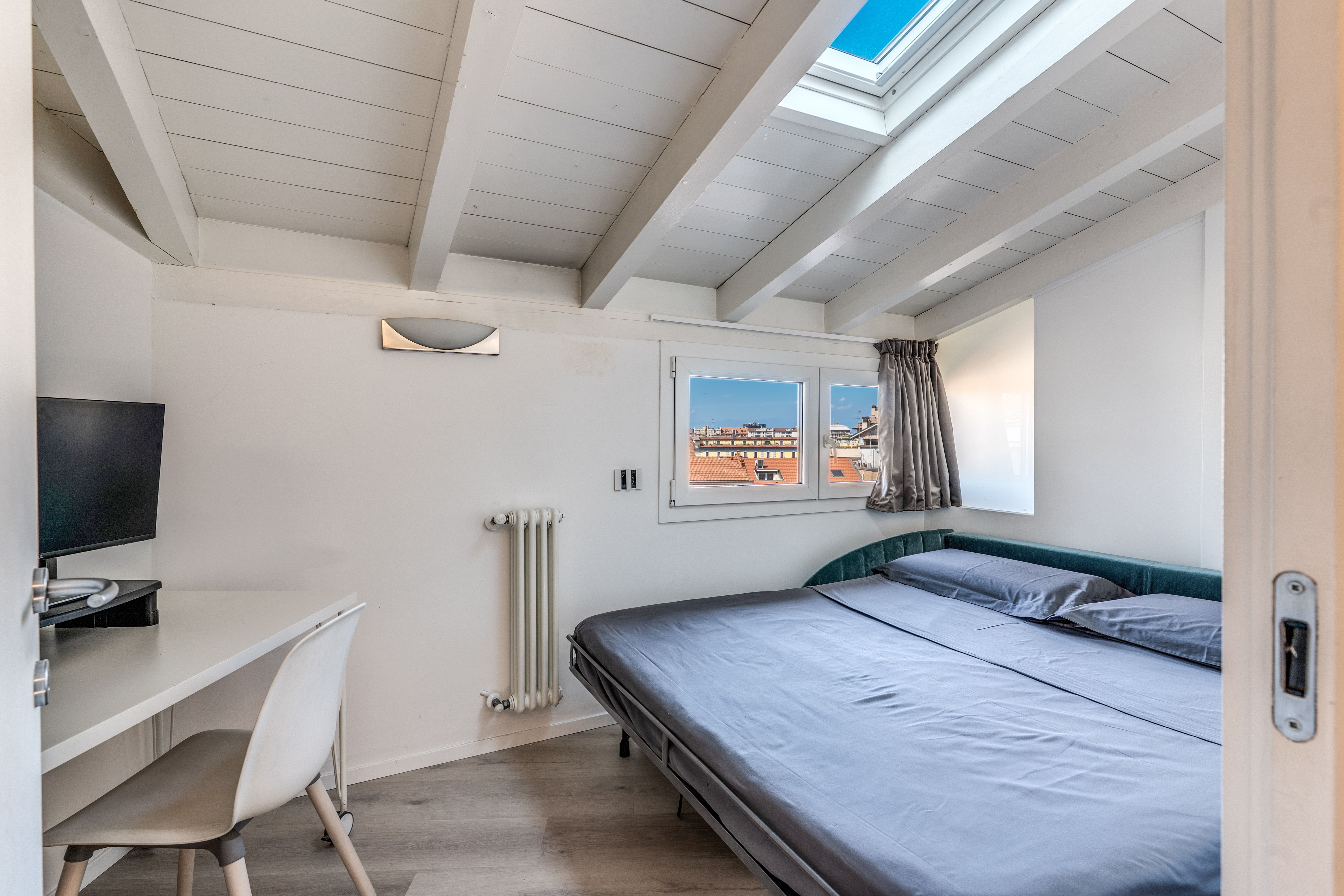 This plush penthouse combines a great location, skyline views, and little luxuries like your very own sauna, ice bath, and a private gym. One of our favourite features is the sleek swimming pool, which can be heated all year-round and comes with a counter-current flow so you can set the speed you’d like to swim at. When you’re not busy enjoying this home’s many perks, you’ll find plenty of space inside to stretch out, including an open-plan living space and separate cinema room, along with four cosy bedrooms (one with a sofa bed). All this, and you’ll be in trendy Isola – home to hip boutiques, cool coffee shops, and lively restaurants.