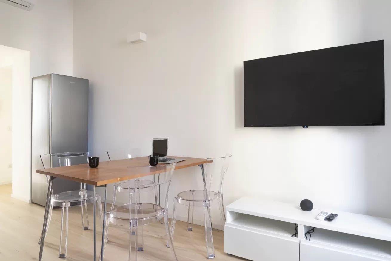 Home truths: *Parking in Milan can be tricky, so we recommend sticking to public transport or exploring the city on foot *The entrance to this home is shared with the building's other residents *This home is on a main road, so noise is to be expected *Though there isn't a dedicated desk here, the dining table doubles up as a laptop-friendly workspace