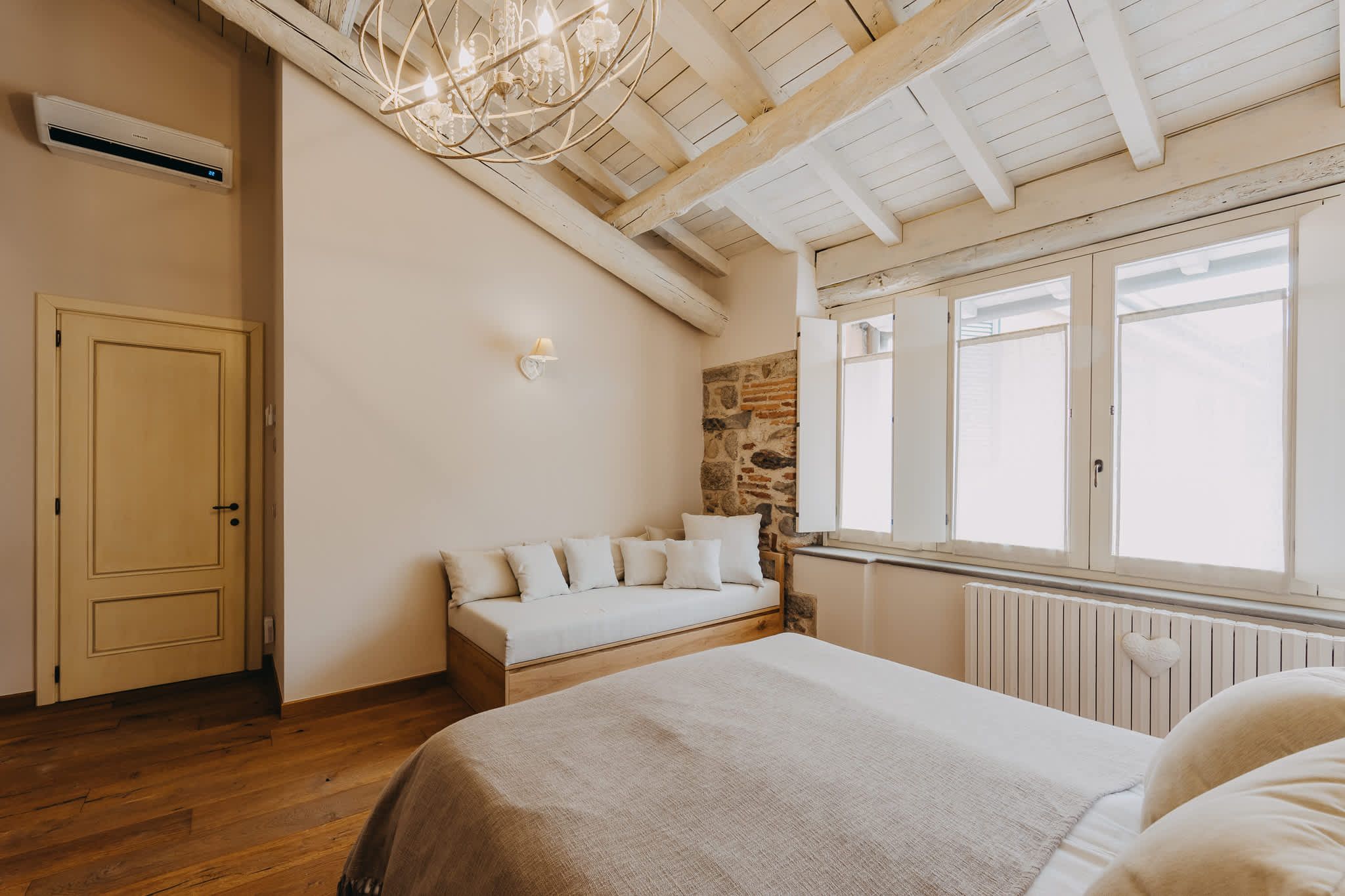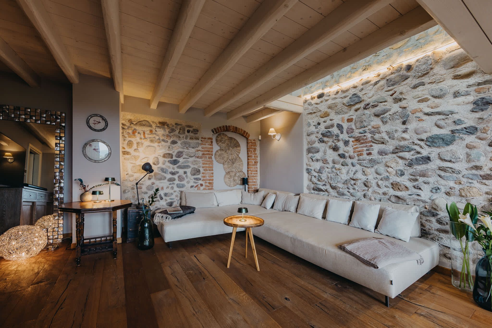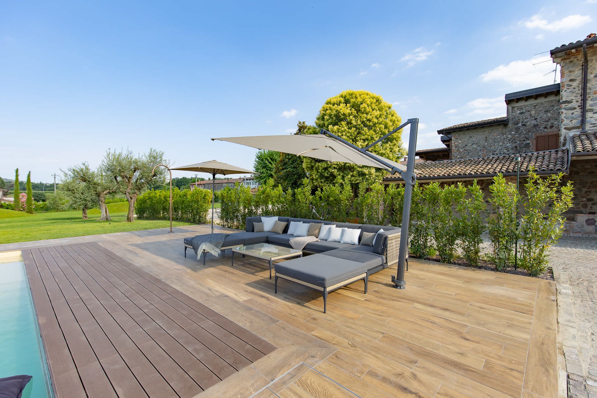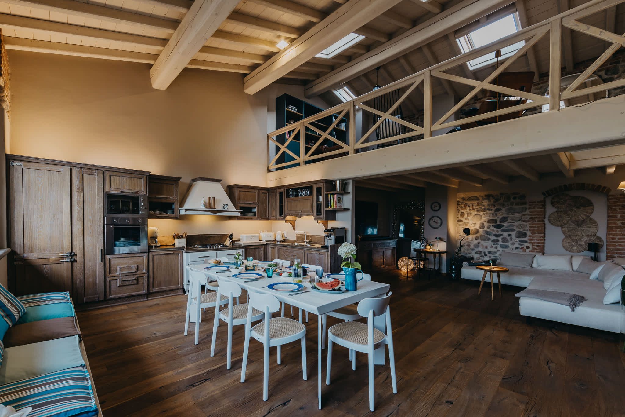 Nestled within the rolling vineyards of the Valtenesi region, this 17th-century home has worn many hats – monastery, winery, private residence, and now a rental retreat. Outside, you’ll find a 25-metre pool, scenic spots for relaxing or dining alfresco, and a hammock strung between the trees. Inside, historic charm meets contemporary living – think soft linens, exposed stone walls, and a sleek kitchen. There’s even a gym in the cellar. Whether you’re here for the wine, nature, or golfing, this spot makes it all feel effortless.