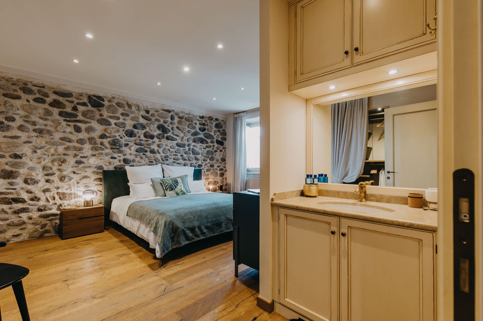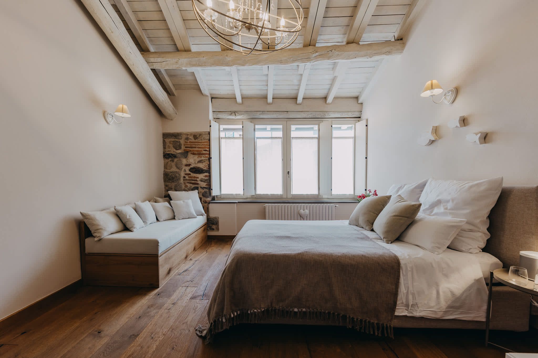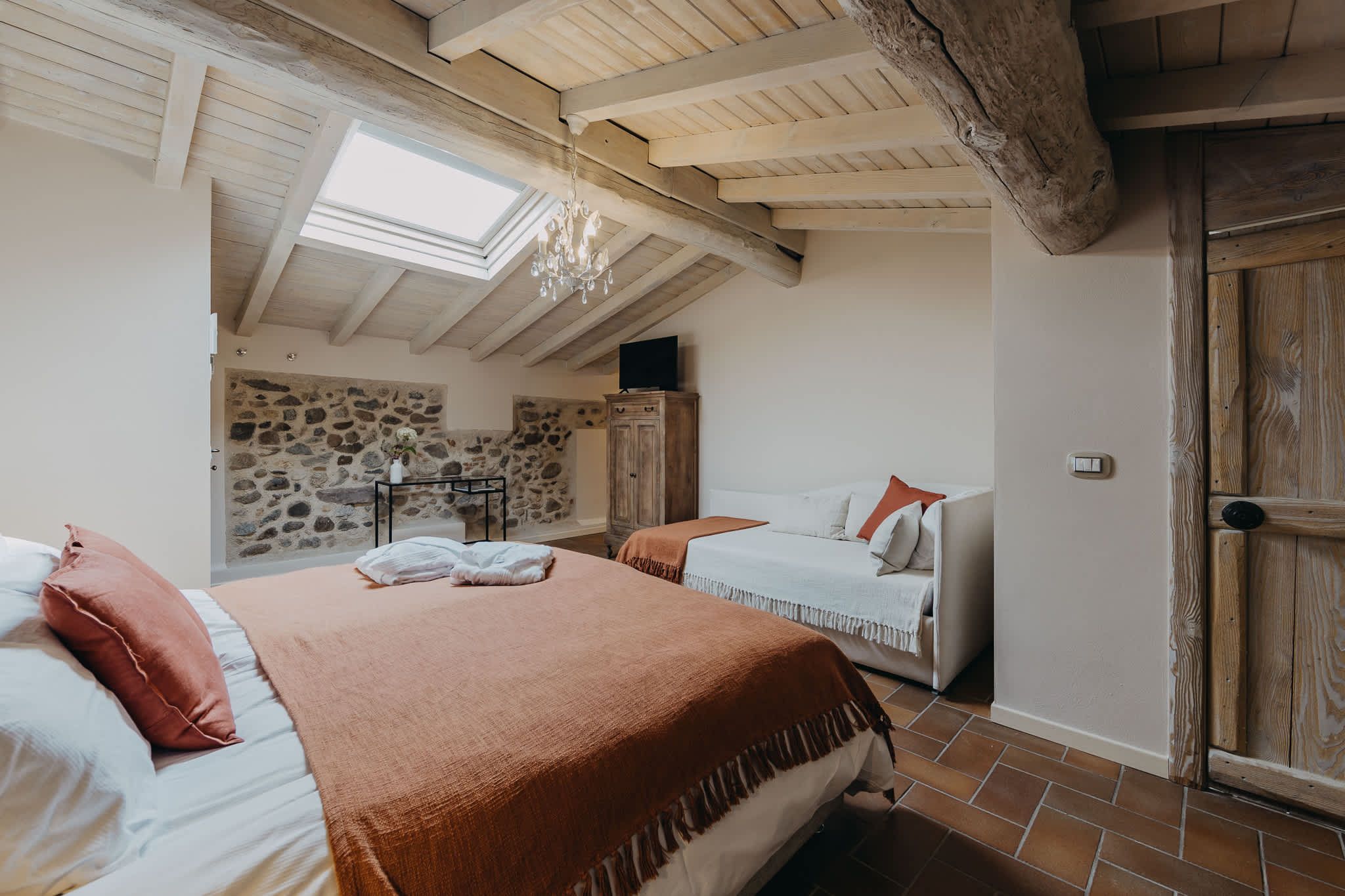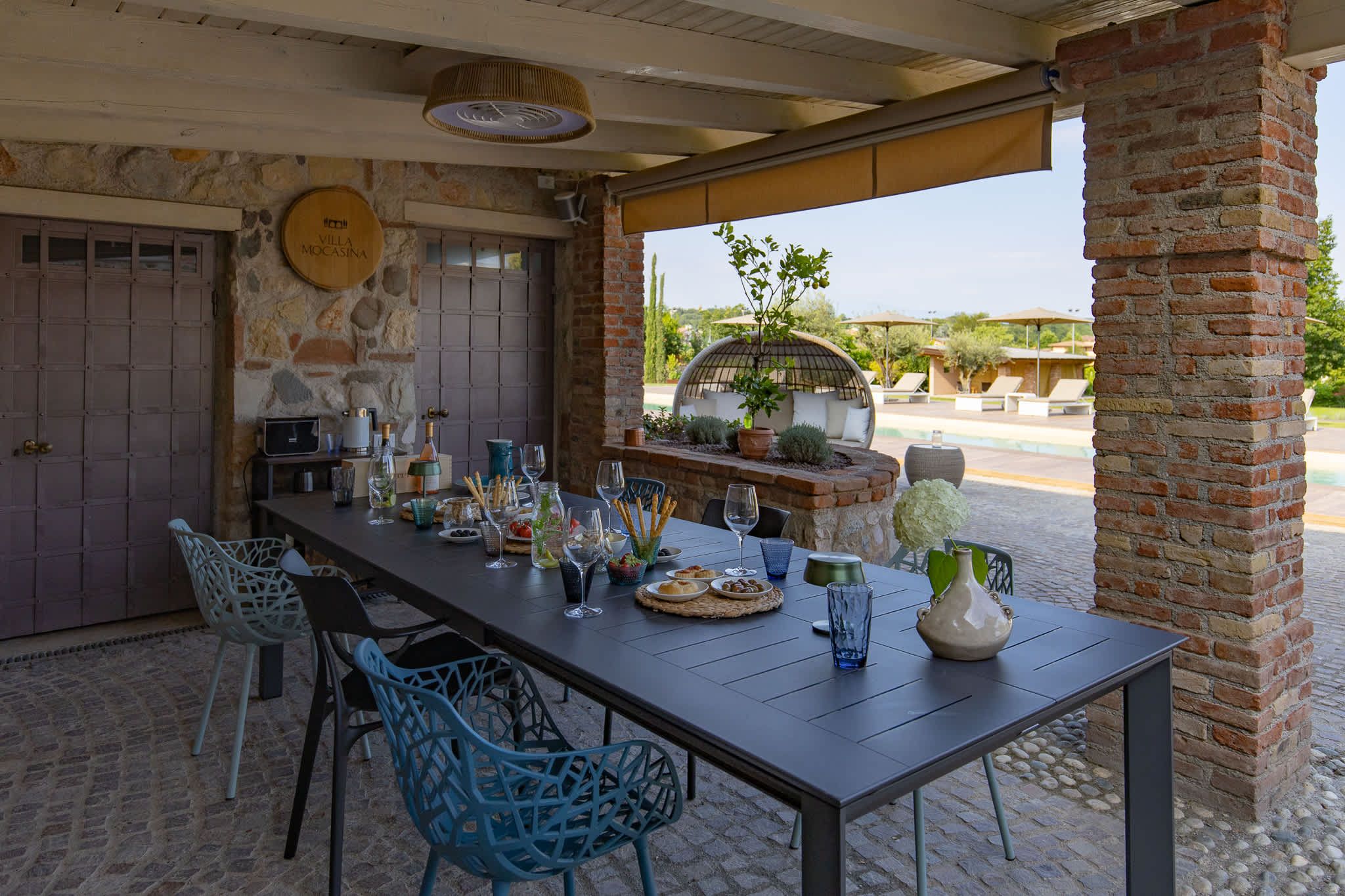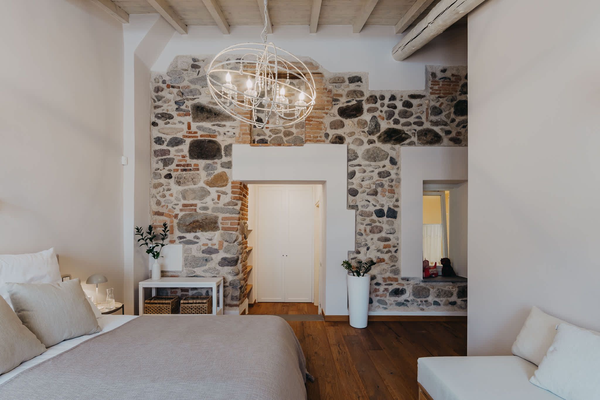 Nestled within the rolling vineyards of the Valtenesi region, this 17th-century home has worn many hats – monastery, winery, private residence, and now a rental retreat. Outside, you’ll find a 25-metre pool, scenic spots for relaxing or dining alfresco, and a hammock strung between the trees. Inside, historic charm meets contemporary living – think soft linens, exposed stone walls, and a sleek kitchen. There’s even a gym in the cellar. Whether you’re here for the wine, nature, or golfing, this spot makes it all feel effortless.