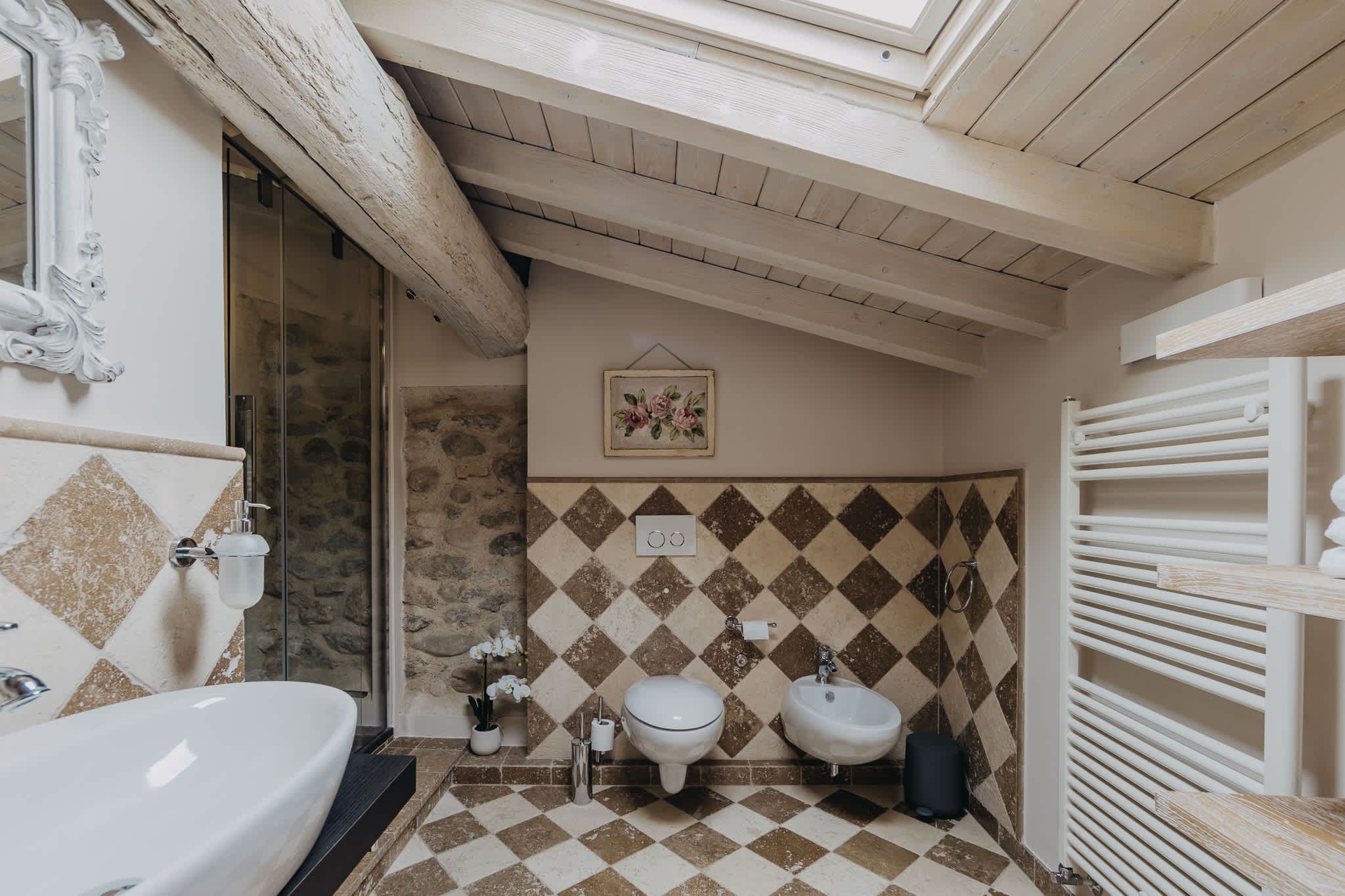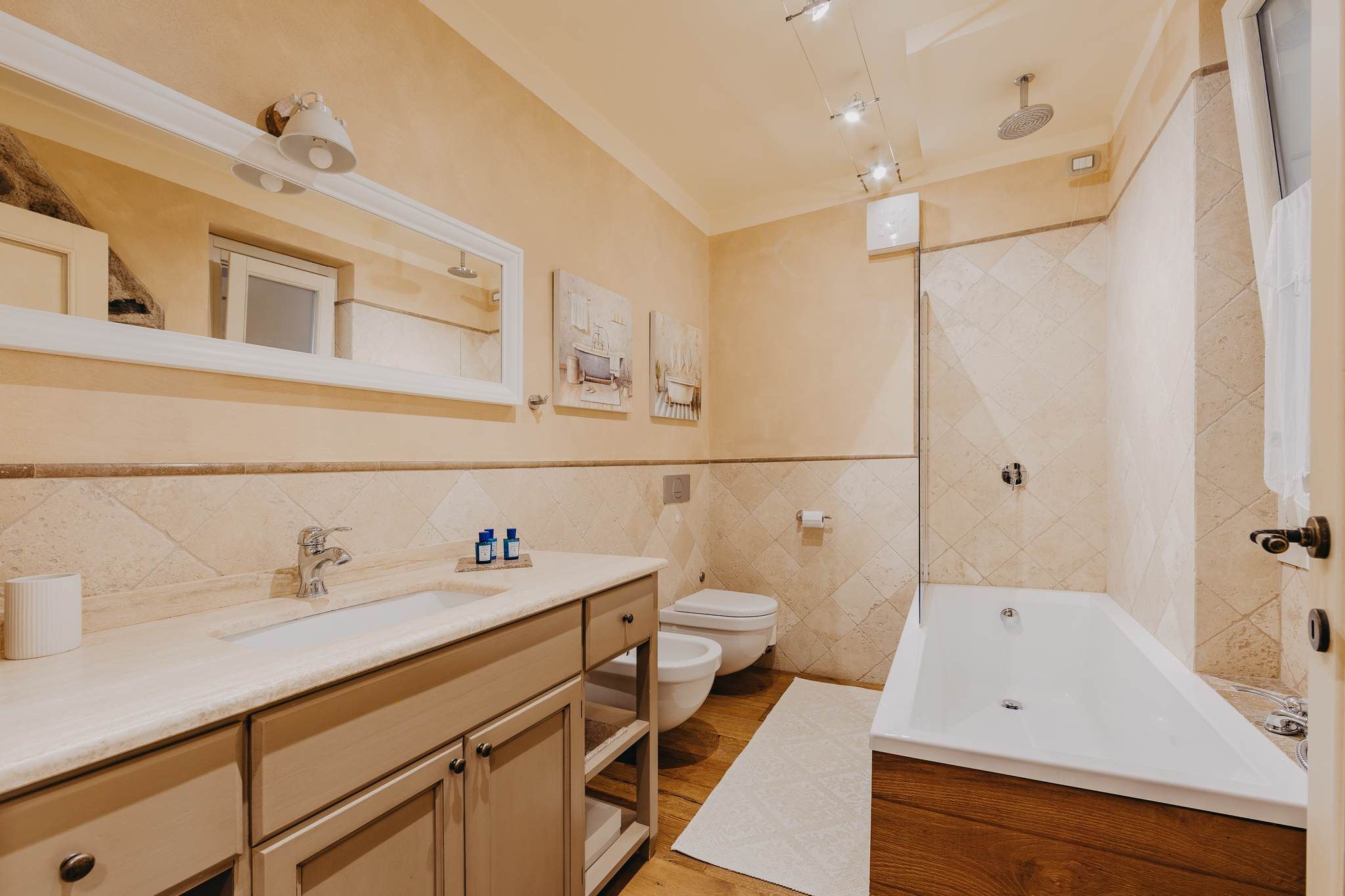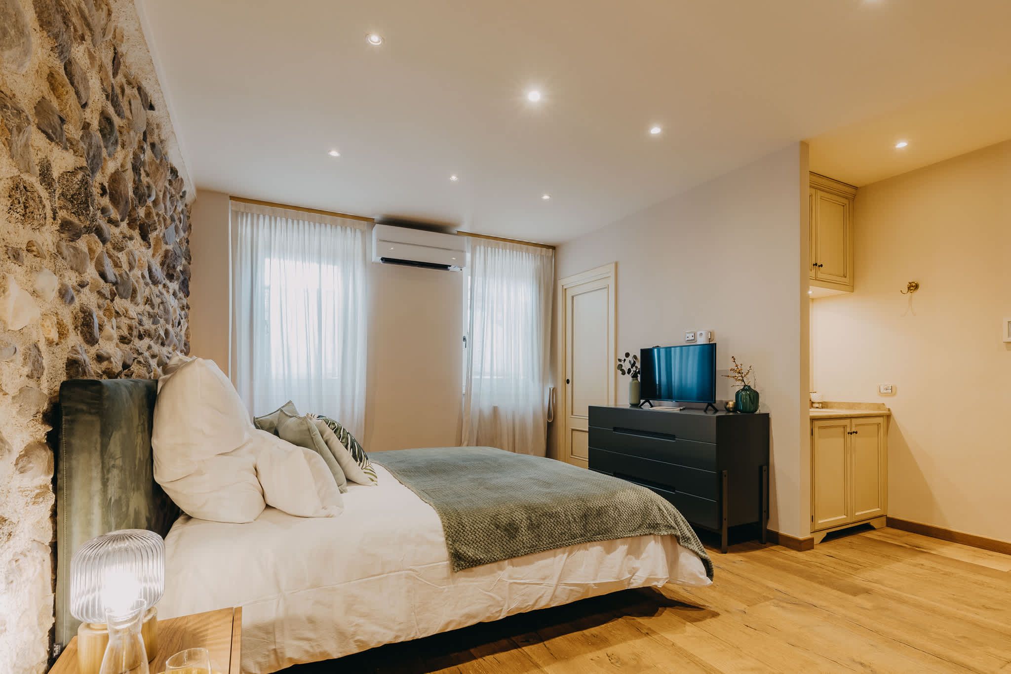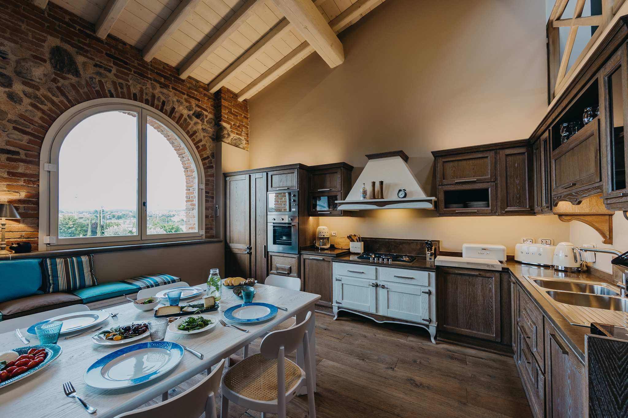 Nestled within the rolling vineyards of the Valtenesi region, this 17th-century home has worn many hats – monastery, winery, private residence, and now a rental retreat. Outside, you’ll find a 25-metre pool, scenic spots for relaxing or dining alfresco, and a hammock strung between the trees. Inside, historic charm meets contemporary living – think soft linens, exposed stone walls, and a sleek kitchen. There’s even a gym in the cellar. Whether you’re here for the wine, nature, or golfing, this spot makes it all feel effortless.