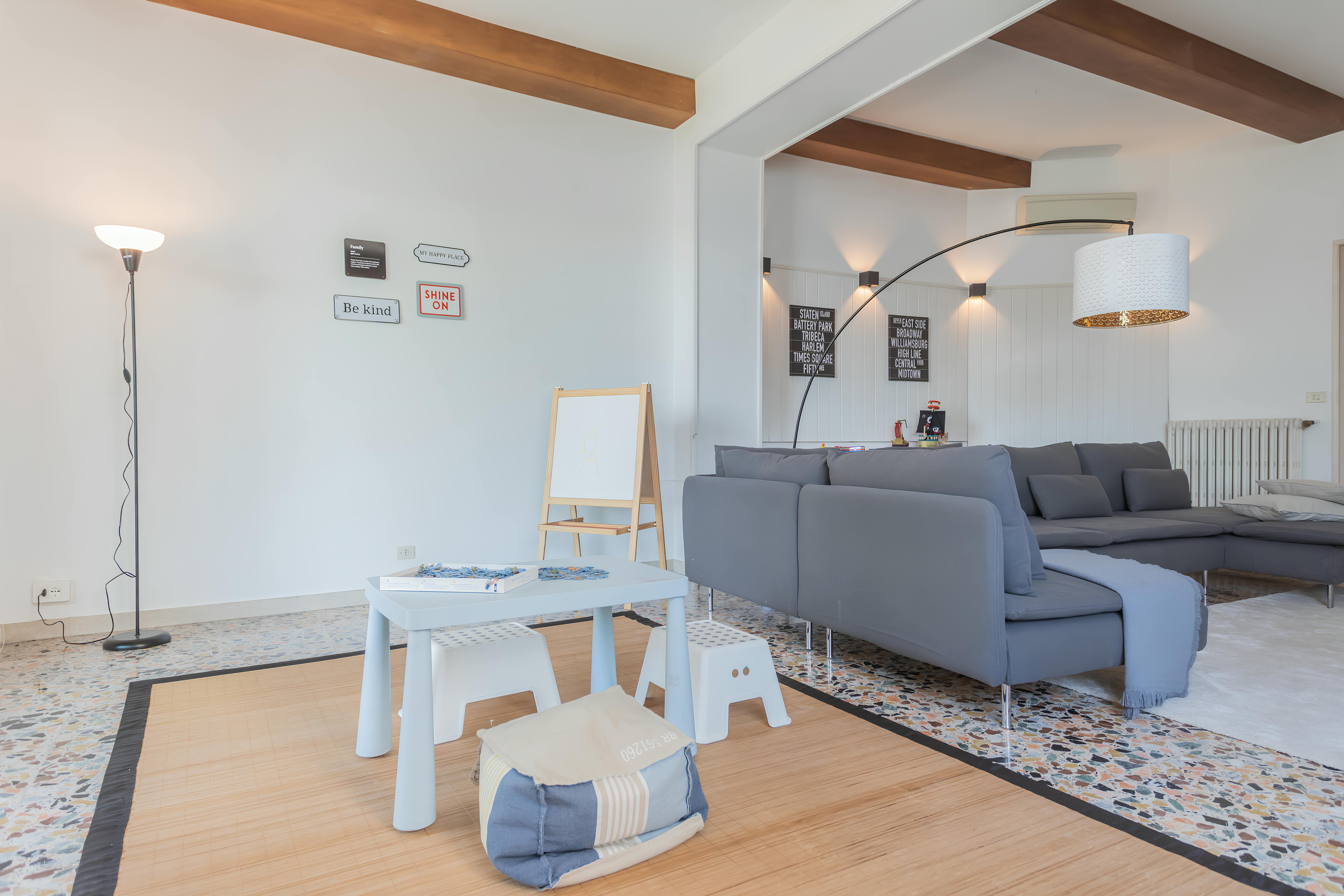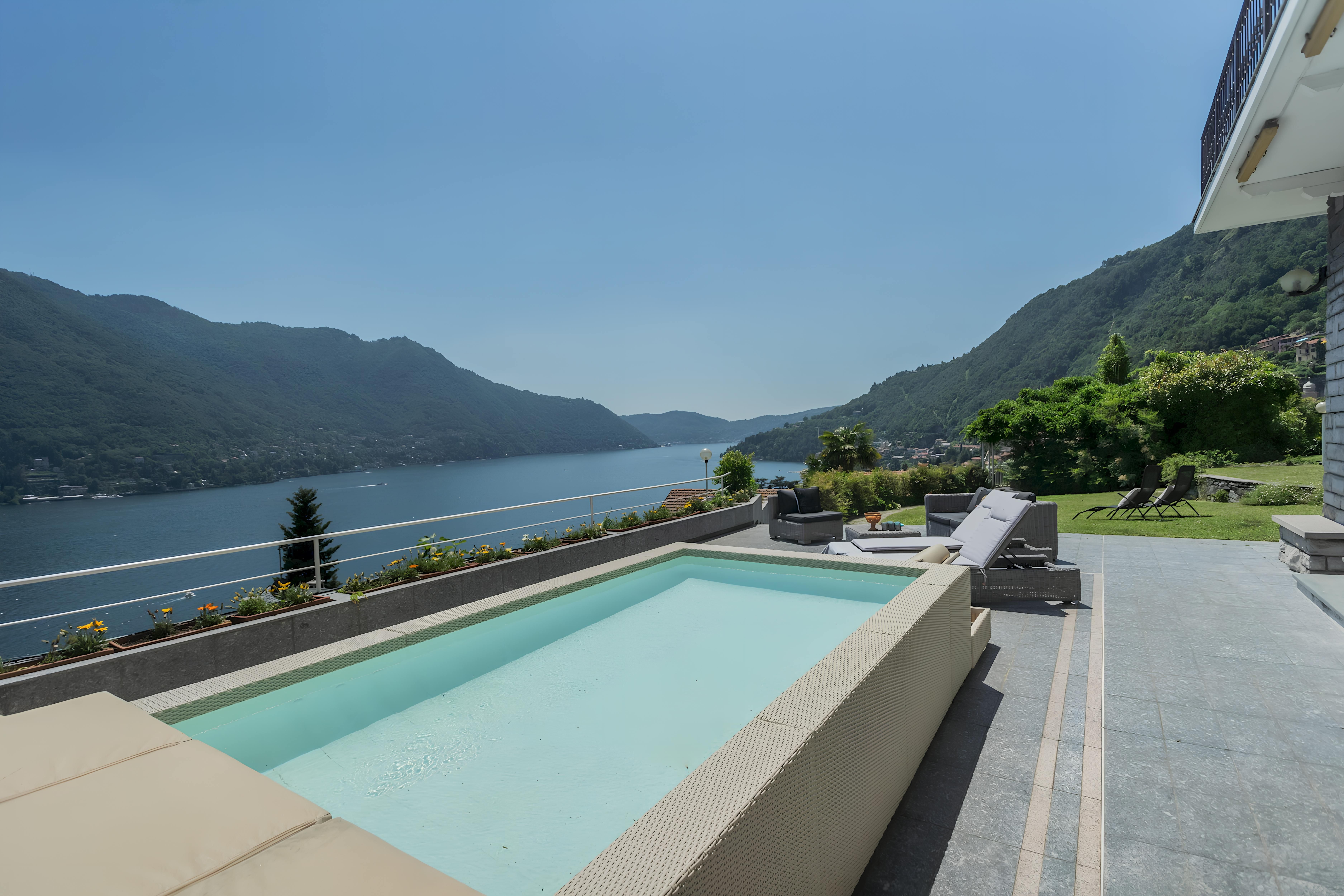 Escape to the shores of Lake Como and immerse yourself in the incredible vistas here. There’s a private pool and Jacuzzi, gardens with winding paths, a lawn and a vine-shaded gazebo, as well as an outdoor kitchen. Inside, there are several living spaces and seating areas, a kid’s playroom, and a ping pong table, making this place perfect for families or friends. Many of the rooms have views over the lake and if you need to work while away there’s a quiet study with high-speed internet. When you want to explore, Moltrasio with its selection of restaurants and farmers’ market is a short stroll away.