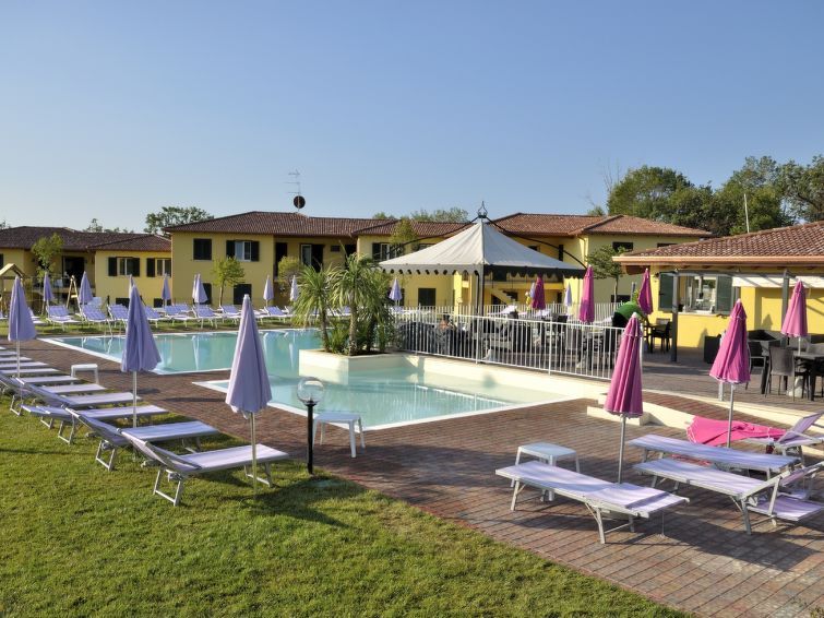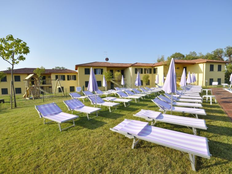 The complex is in good condition. There was plenty of free parking. The apartment amenities were adequate, clean, and everything was there. Dog owners were accommodated in the ground floor apartments, and we didn't find them a nuisance on the upper floor. The pool and sunbathing area were very good. There were always enough loungers, including cushions, available. The owners were very friendly and helpful. The bread roll service was okay. Minor requests were available at reception.