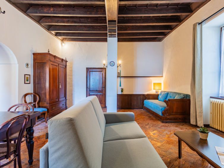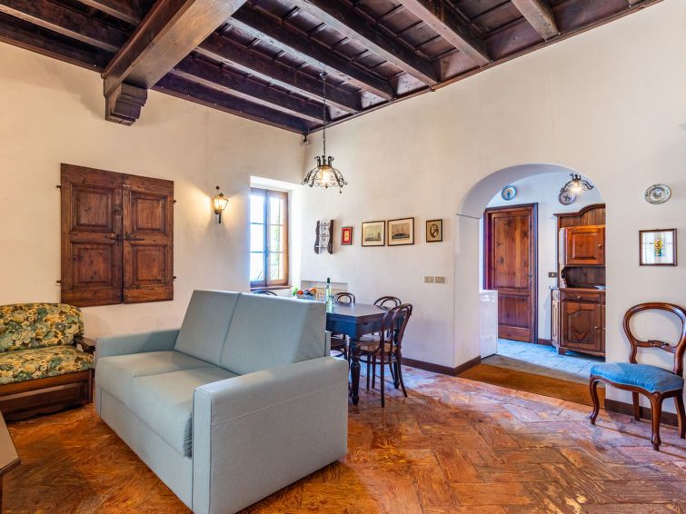 1-room apartment 50 m2, on the ground floor. Spacious, beautiful and rustic furnishings: large living/sleeping room with 1 double sofabed and open-hearth fireplace (only for decoration), dining table and TV (flat screen). Open kitchen (oven, dishwasher, Gas stove, 4 gas rings, toaster, kettle, microwave, freezer, electric coffee machine).