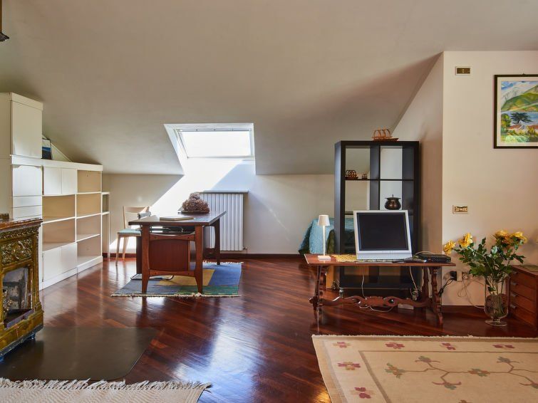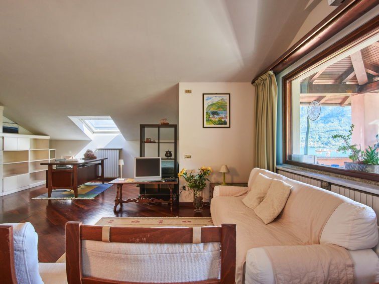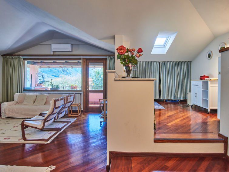 In a well-maintained, spacious apartment with a wonderful view of the lake. The property is lovingly planted and maintained, and climbing plants provide some privacy from the street. It's a quiet area, especially at night. The area isn't overcrowded. You can walk to neighboring towns via the mountain or along the shore. There are three high steps in the apartment between the living room, kitchen, and first bedroom, making it unsuitable for people with limited mobility. Very nice landlords. Thanks, D. and M.!