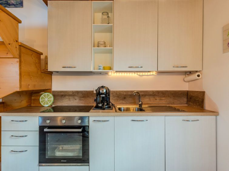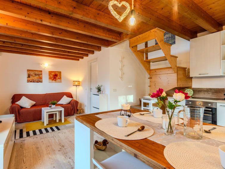 "Bellavista", 2-room apartment 70 m2 on 2 levels on 1st floor. Spacious and bright, very comfortable and cosy furnishings: living room with 1 double sofabed. Open kitchen in the entrance (oven, 5 induction hot plates, toaster, kettle, freezer, electric coffee machine) with bar. Exit to the terrace.