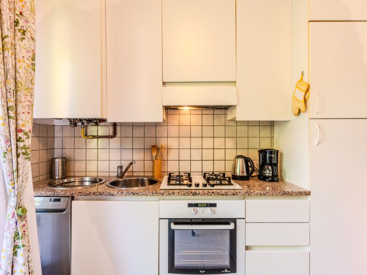 3-room apartment 80 m2 on 2nd floor. Beautiful and cosy furnishings: living/dining room with dining table and satellite TV (flat screen). Exit to the balcony. 1 double bedroom. 1 room with 1 bed. Open kitchen (4 hot plates, oven, dishwasher, toaster, kettle, microwave, freezer, electric coffee machine).