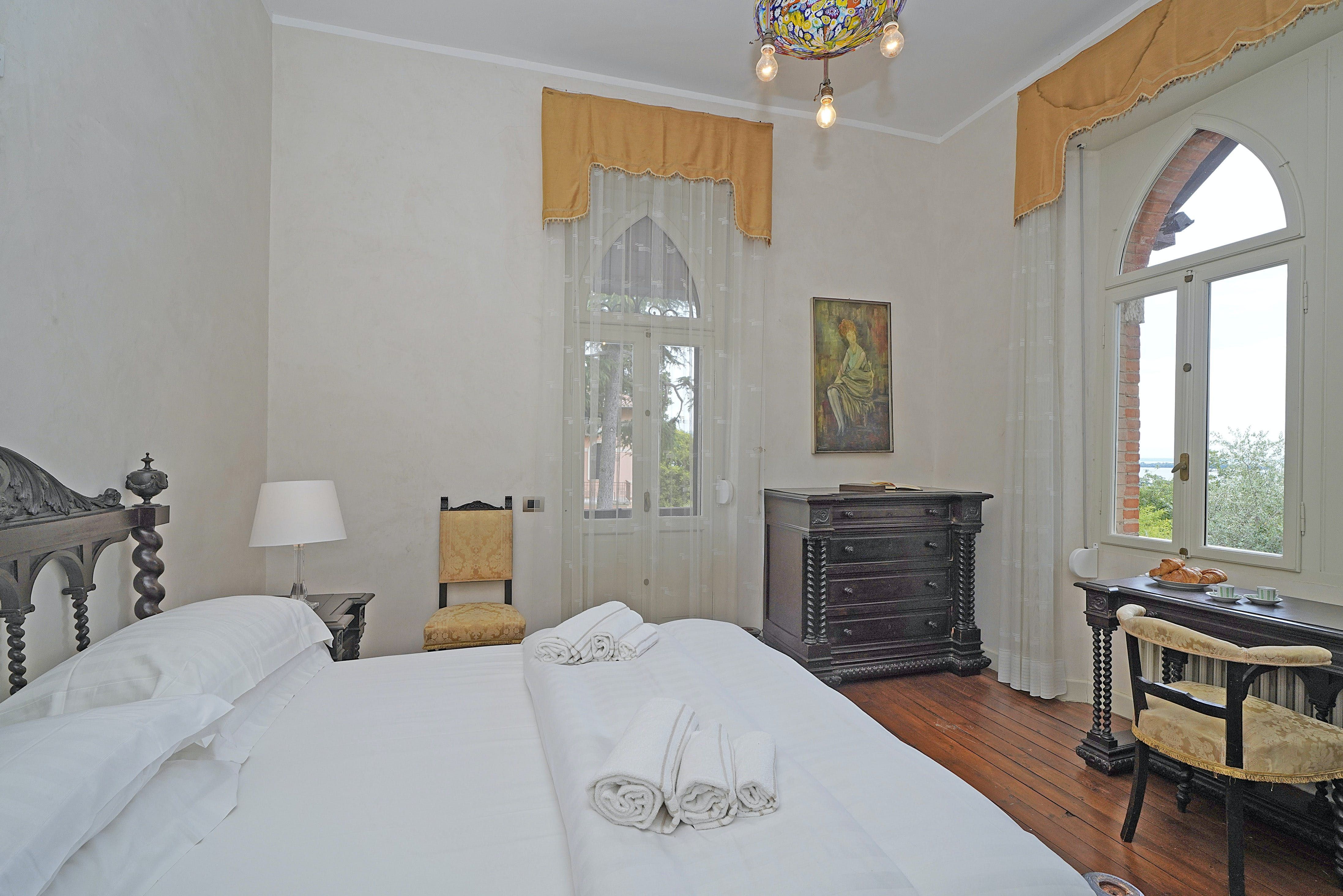This charming home stands in 2000 square metres of gardens and boasts lovely views of Lake Garda. Alongside dreamy vistas, plants and trees, you’ll find a private pool and a delightful alfresco dining area with a barbecue. Inside, you’ll find antique-style decor, including chandeliers and a rather grand staircase. Best of all, this home is just 850 metres from Gardone Riviera, where you can hop on a ferry or visit local restaurants. The beach is a five-minute walk, too.