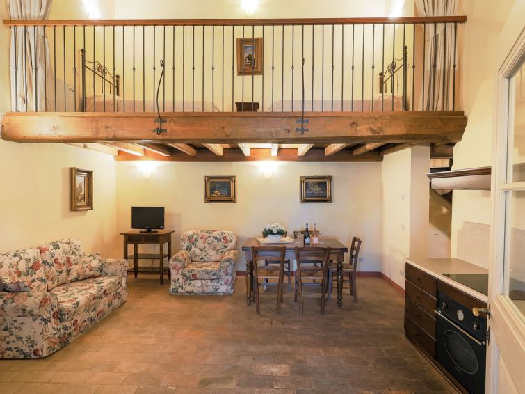 2-room apartment 55 m2 on 2 levels, on the upper floor. Renovated in 2008, tasteful furnishings: living/sleeping room with 1 sofabed, dining table, satellite TV and air conditioning. 1 double bedroom with air conditioning. Open kitchen (oven, dishwasher, 4 ceramic glass hob hotplates, electric coffee machine).