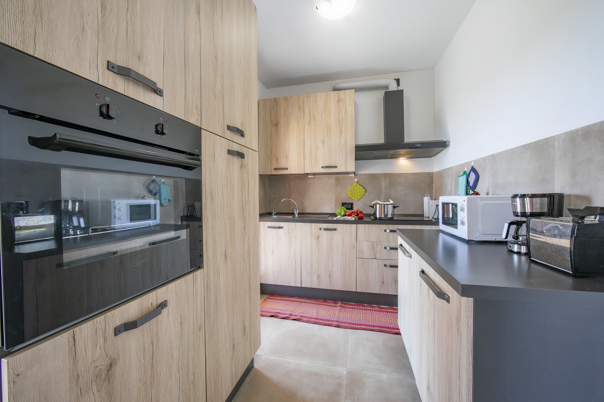 Inside, it's a ground floor apartment well suited to family life. Modern in design, its big windows and spacious rooms keep it bright and sociable, with all eyes on the view to the rear. There's a well kitted-out kitchen and a dining table inside, but we think you'll be spending much of your time eating on the covered terrace.