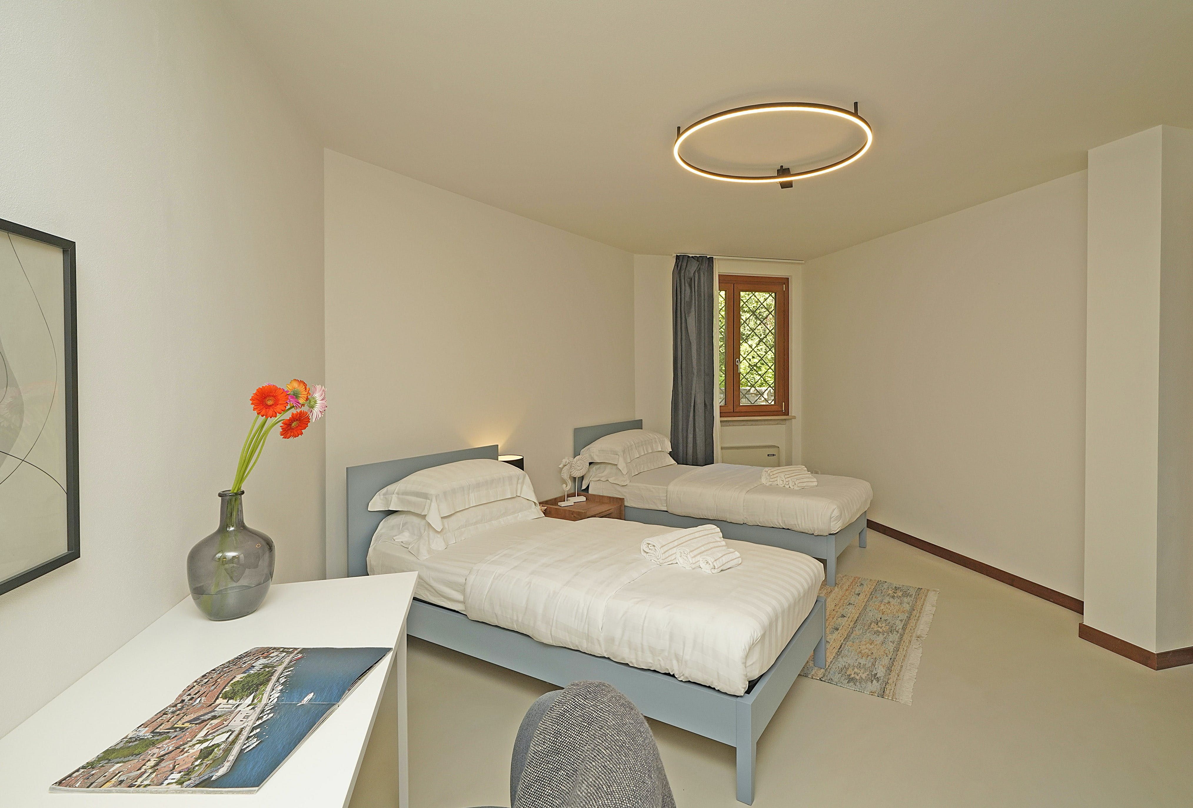 *At full occupancy, two people will be sleeping on a double sofa bed in the second lower-floor bedroom. The twin bedroom can be made into a double by pushing the beds together.