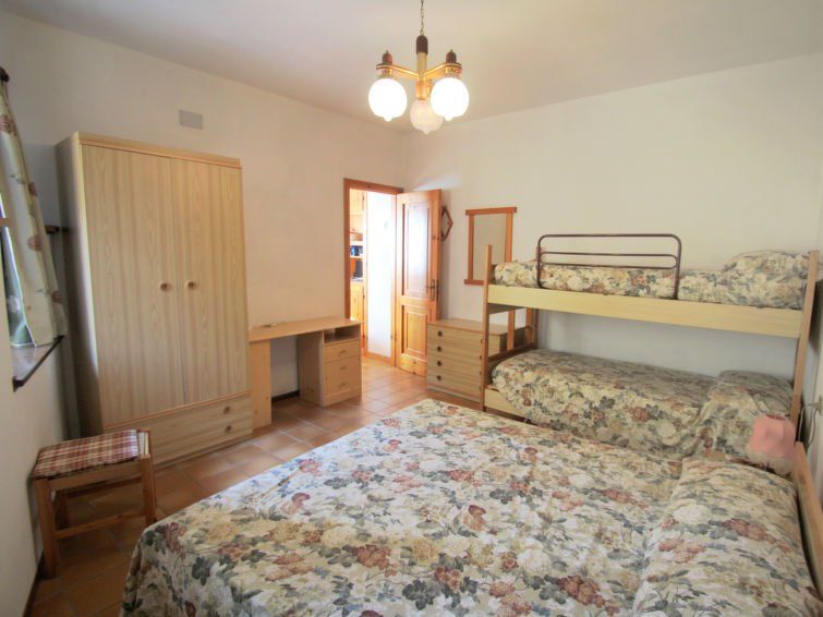 2-room apartment 35 m2, on the ground floor. Practical furnishings: 1 room with 1 x 2 bunk beds, 1 double bed. Kitchen in the entrance (4 hot plates, oven, microwave) with dining table, TV. Shower/bidet/WC. No heating option. Small patio. Balcony furniture. Facilities: Internet (WiFi, extra).