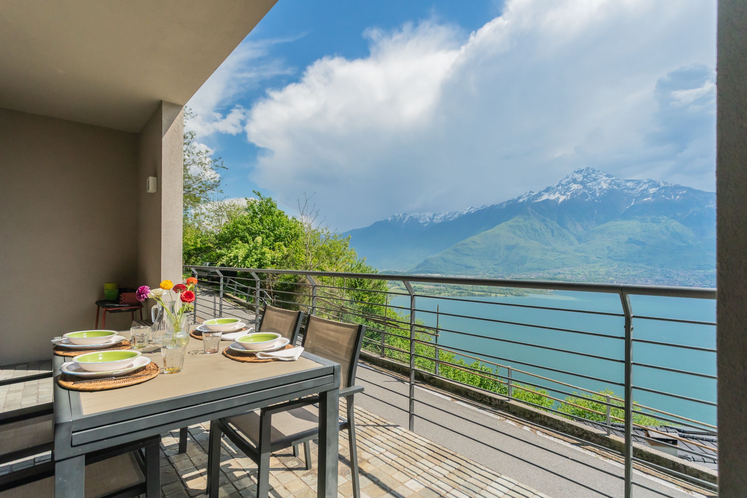 If you’re holidaying on Lake Como, ideally you want a view. Well, this home certainly delivers – the vistas are wonderful from the terrace. Imagine sunset drinks here or a morning coffee with breakfast. The outlook from this ground-floor apartment’s living room is fantastic too. And while the kitchen here is compact, it has everything you need for cooking some Italian cuisine. Before we move on to the great location, we should also mention that there’s a free parking space with this home. Situated in Trezzone, the lake is just a short stroll away, and when you want to explore further, charming Domaso is just ten minutes by car.
