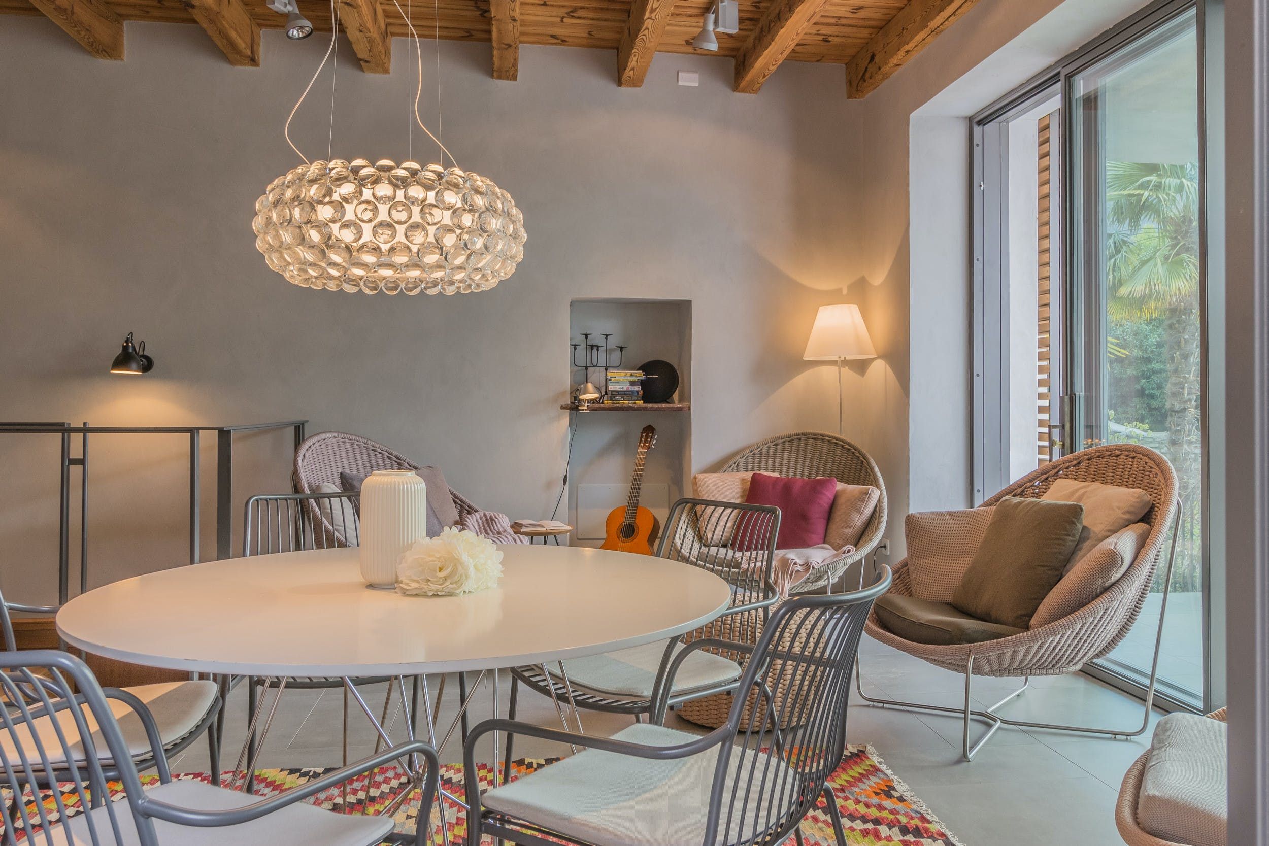 What a location this home has in the heart of Varenna's historic centre. Lake Como is just 10 metres away, while restaurants, ice cream parlours and shops are also very close by. Down one of Varenna's typical alleys, you'll find this charming house in a private courtyard full of roses and palm trees. A raised terrace with alfresco dining is perfect for enjoying the sunset. There's also a stunning view of the famous 'Walk of Lovers' from this home. Inside, there's an upside-down layout, with the bedrooms and a bathroom on the lower ground floor.