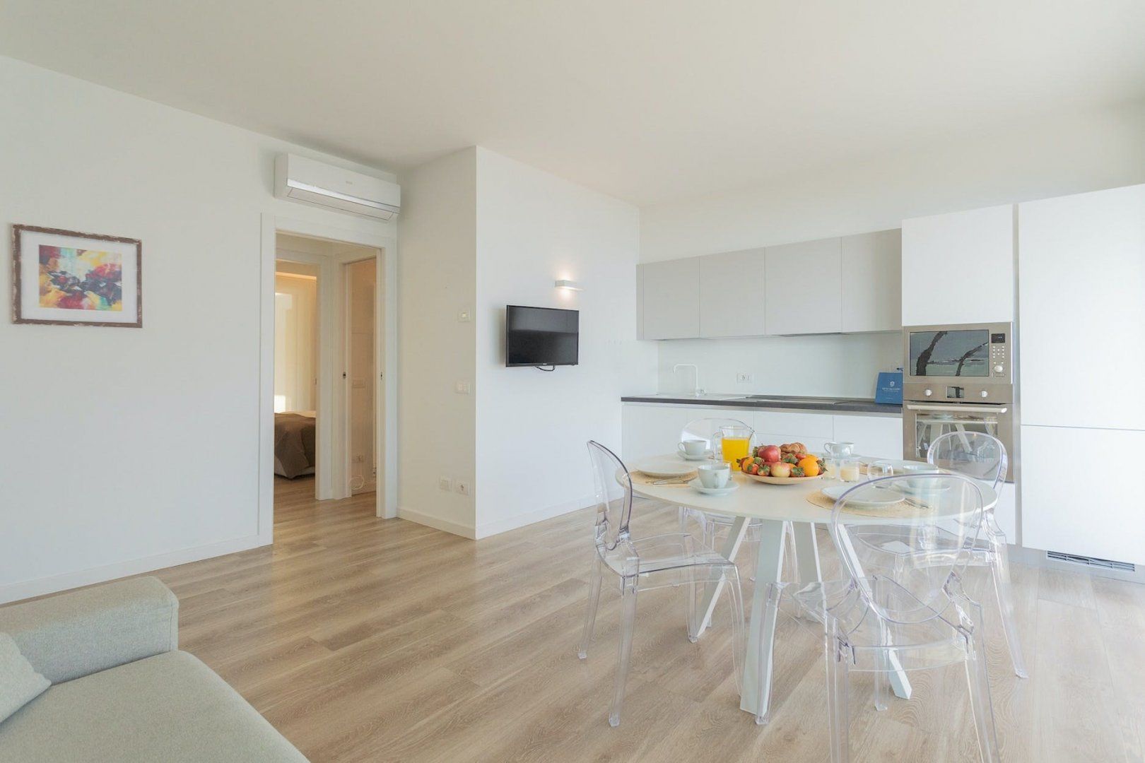 Combining stunning Lake Como views with a whole host of spa amenities, this apartment strikes us as an ideal tonic for cluttered minds. The living space is functional if a little on the sparse side, but it is awash with sunlight. That's thanks to the large French doors, which open onto the balcony – there you'll find an alfresco dining spot, perfect for twilight digestifs. In the shared spa, you're spoilt for choice, with a sauna, Turkish bath, massage tables, and heated pool vying for your attention.
