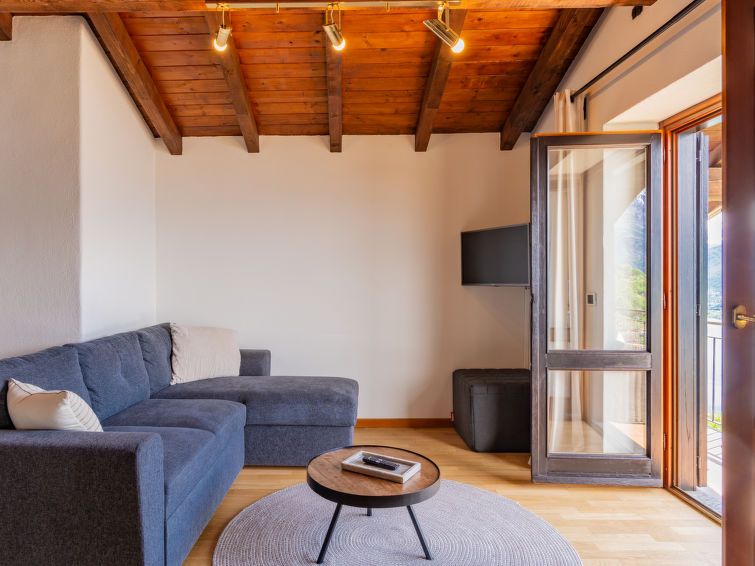 The apartment is on the top floor of a beautiful Alpine-style house. It features real wood-beam ceilings, a well-designed floor plan, good furniture, a functional kitchen, and a view of the lake and mountains that you won't find often in this world. The only criticism: the lighting is made with cheap track spotlights and unshielded bulbs. This is glaring and devalues the architecture. So please replace them with LED reflector bulbs, at the very least. It's not expensive and makes the whole place complete.