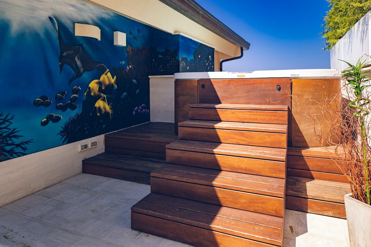 Home truths: *Parking and a private car (BMW series 4) are included with the villa. *Please note the villa is fitted with cameras with an infrared system. These can be covered or turned off. *The home is spread across two floors, and there are steps down to the garden and pool area, so it may not be suited to those with limited mobility. *You'll find expensive artwork and ornaments in this home, so it might not be the best choice if you're travelling with young children. *There's a private office with space to set up your laptop and take meetings if you need to work from home during your stay here.
