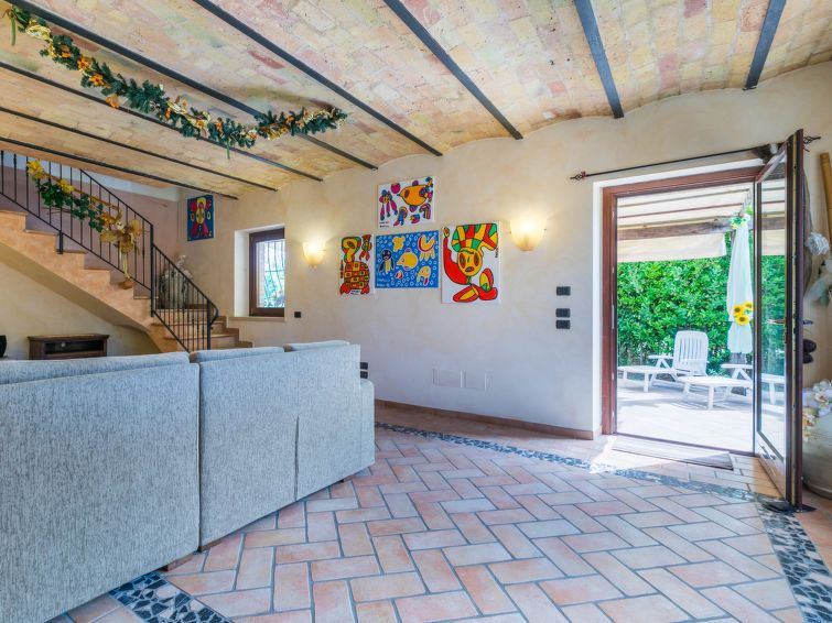 4-room house 240 m2 on 2 levels. Comfortable and rustic furnishings: large living room. Large dining room. Kitchen-/living room (dishwasher, 5 gas rings). Exit to the garden. Shower/bidet/WC. Upper floor: large walk-through room. Exit to the garden. 2 double bedrooms. Bath/bidet/WC, double hand-basin.
