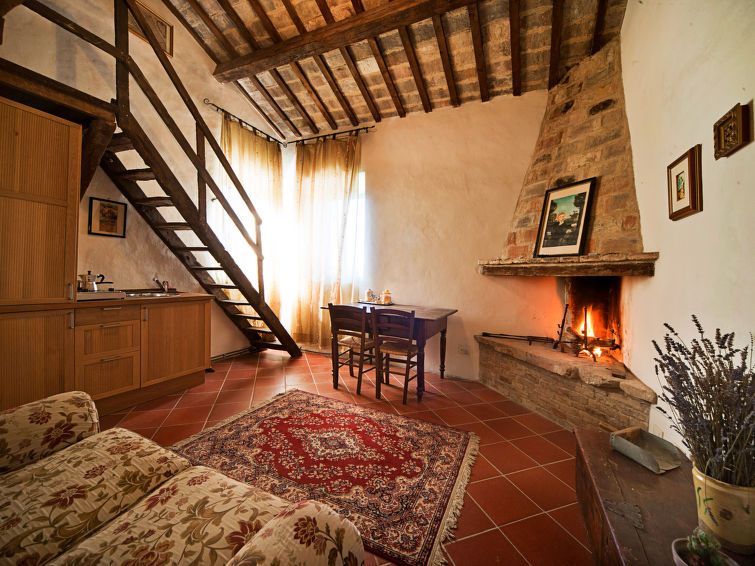 "Panoramica", 1-room apartment 31 m2 on 1st floor. Rustic furnishings: living/dining room with open-hearth fireplace, shower/bidet/WC and TV. Gallery with 1 double bed. Kitchenette (2 hot plates). Air-conditioning, forced-air heating. Beautiful view of the countryside. Facilities: Internet (WiFi, free).