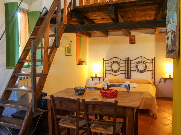 "Demetra", 1-room apartment 31 m2 on 1st floor. Rustic furnishings: living/sleeping room with 1 double bed, dining table, shower/bidet/WC, TV and air conditioning. Open gallery, without wardrobe with 2 beds and air conditioning. Kitchenette (2 hot plates). Air-conditioning, forced-air heating.