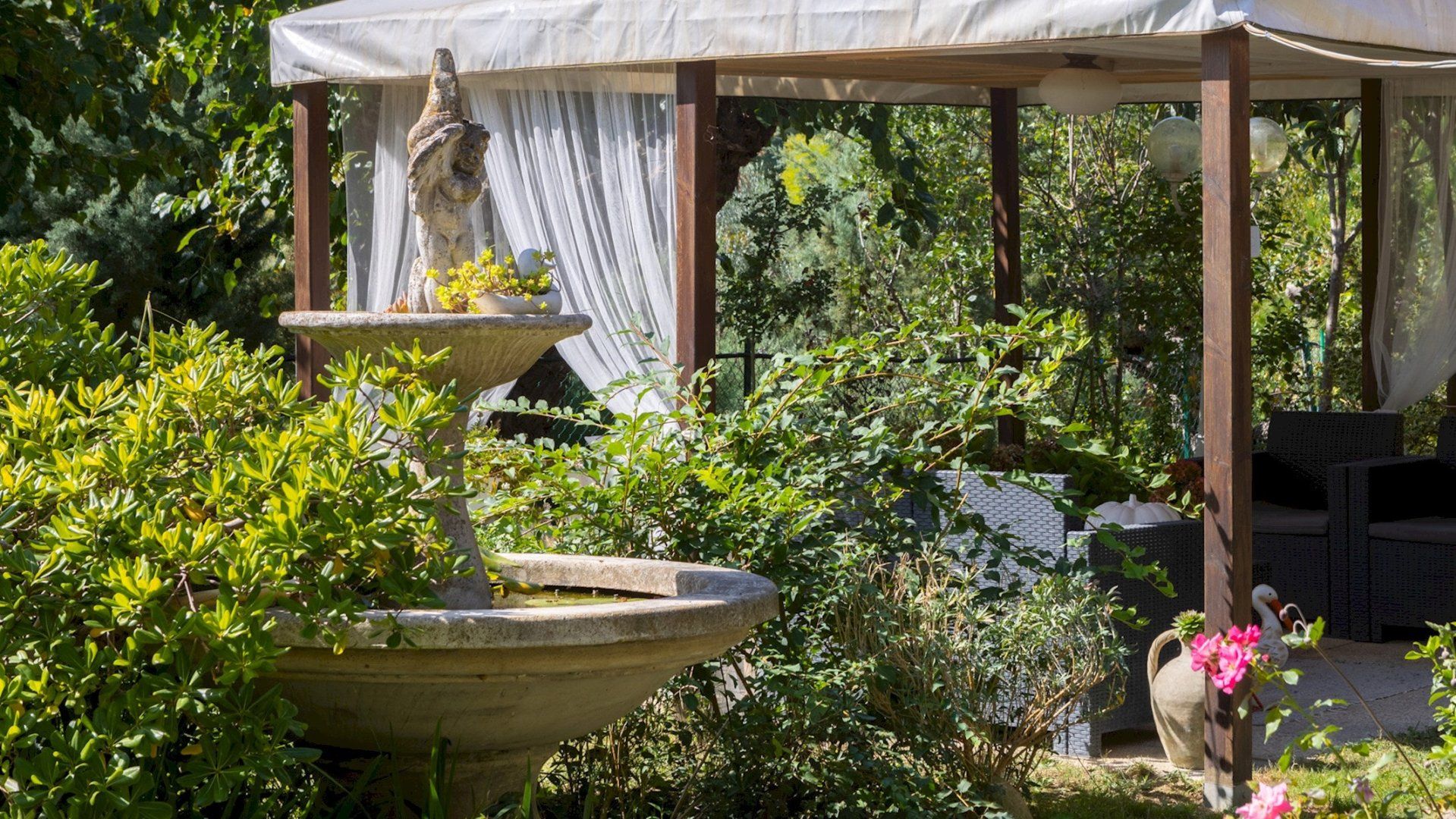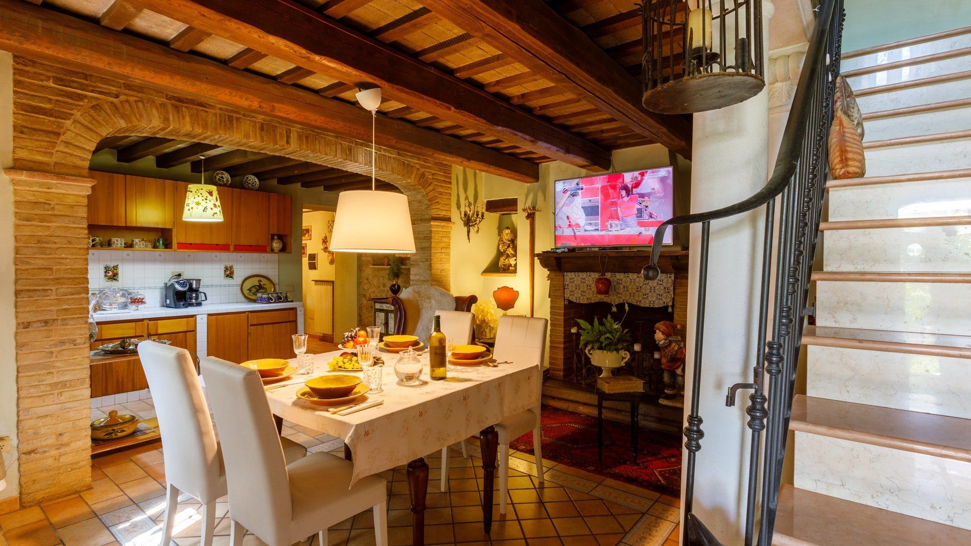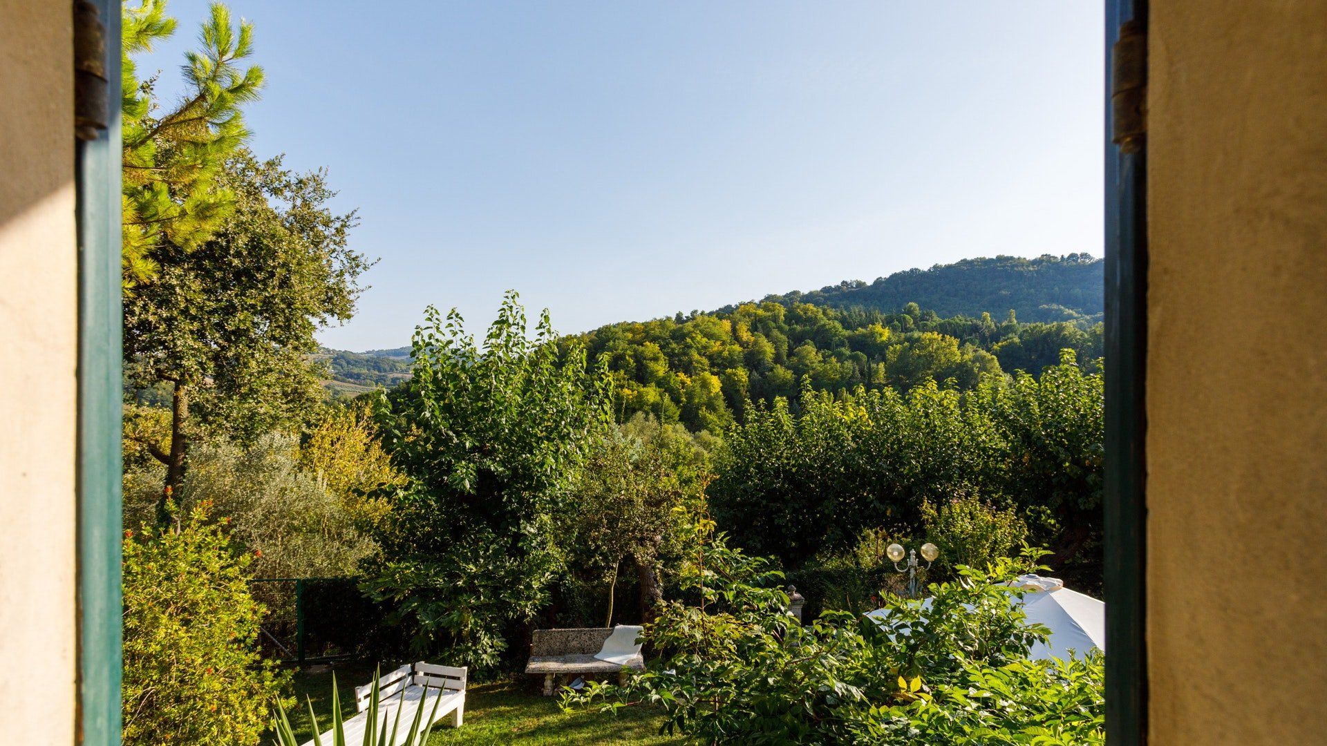 Nestled in the rolling hills of Marche, this home is the definition of rural charm. The 200-year-old farmhouse is now a charming, four-bedroom villa showcasing both modern amenities and traditional style. Admire the exposed wooden beams and fireplace in the living space, and take in the views from the master bedroom's private balcony – whoever takes this room is very lucky indeed. The garden is an attraction in its own right, with flourishing flowers and shaded dining areas where you can enjoy breakfast in the morning. Relax by the pool with a book and soak up the views, returning to the house only to rustle up lunch in the kitchen to enjout in the conservatory, one of our favourite spots. If it's even possible, the gardens perhaps look more charming after the sun goes down, when the pool lights up and lamps cast the trees in a warm glow. Gather out here for a barbecue, and afterwards curl up in the historic living room for a nightcap. While this home's charm comes from its rural location, you're just a twenty-minute drive from Pesaro, a coastal city where you can visit palaces and take to the many cycling trails.
