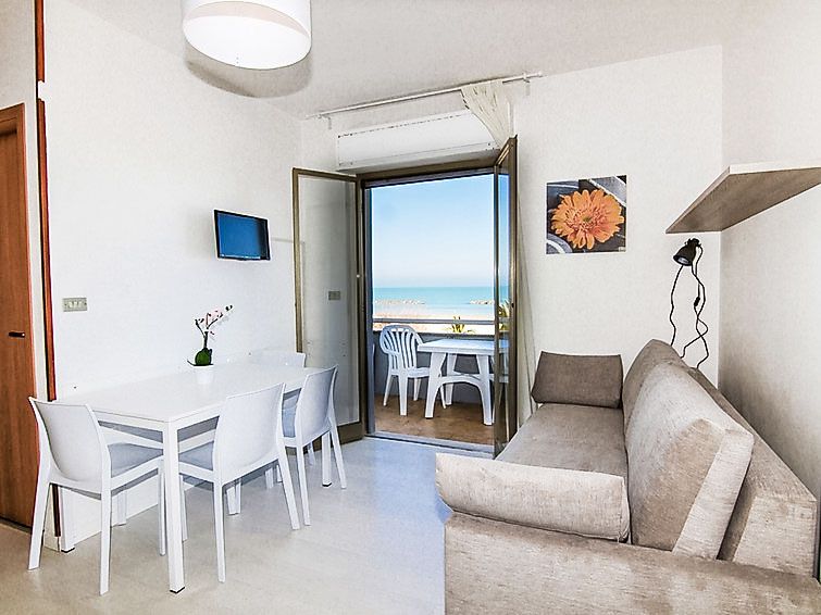 2-room apartment 35 m2, on the upper floor. Comfortable and modern furnishings: living/dining room with 1 sofabed, 1 pull-out bed and TV. Exit to the balcony. 1 double bedroom. Kitchenette (4 hot plates). Shower/bidet/WC. Heating, air-conditioning. Heating available only from 01.11.