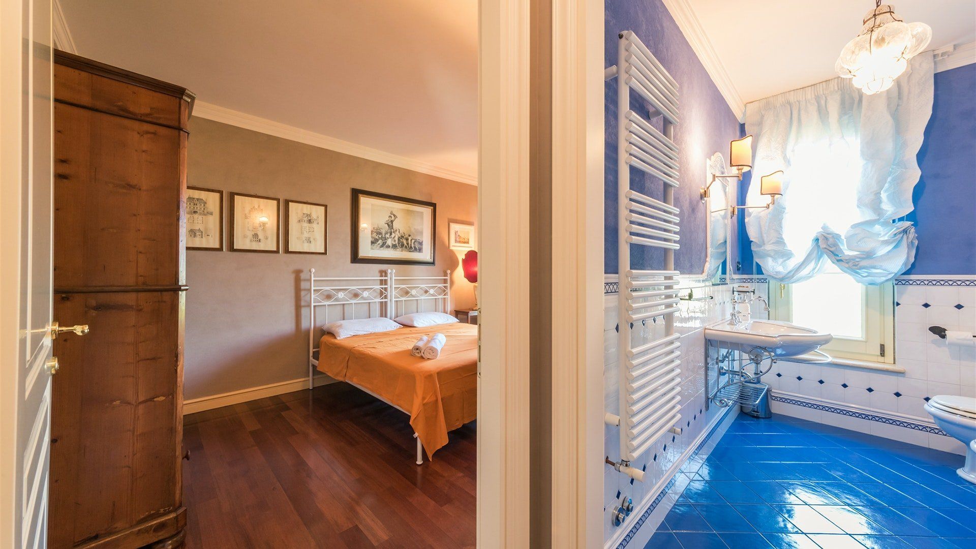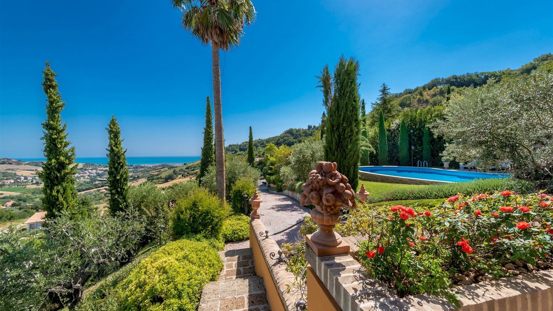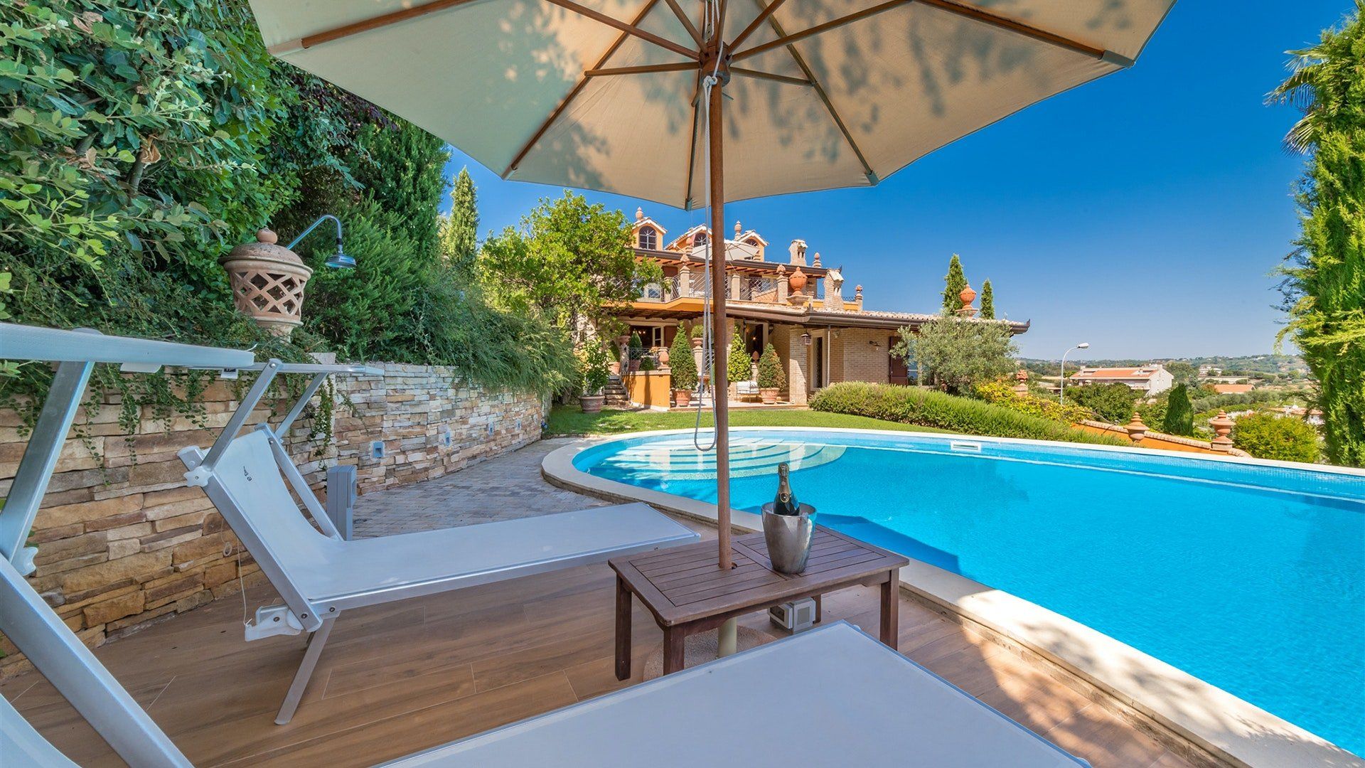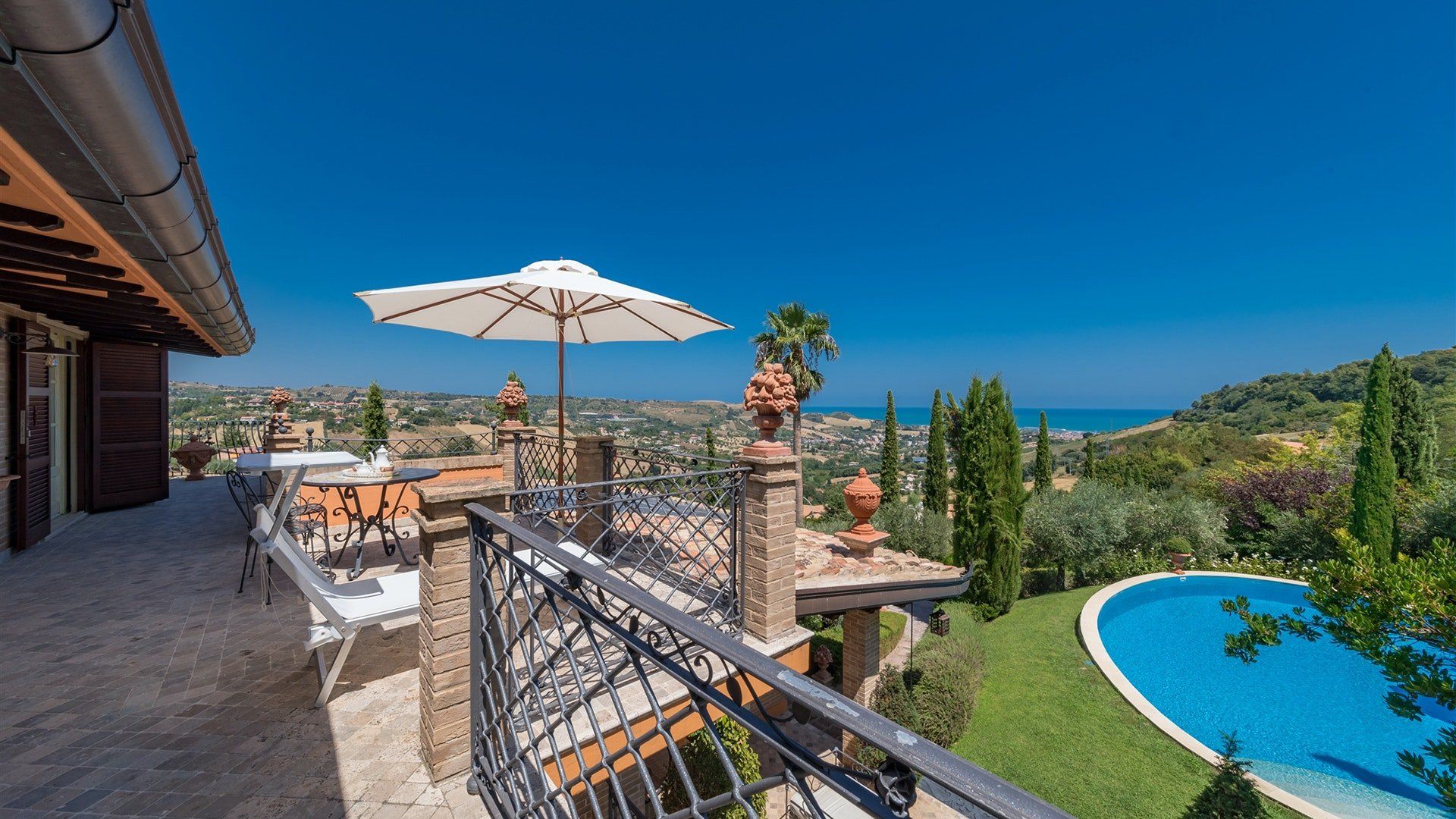 Surrounded by cypresses and olive trees, this hilltop villa is the perfect place to soak up the Italian sunshine. Featuring elegant interiors inspired by classical style and a tranquil Mediterranean garden, we reckon you'll never want to leave. Each room features antique furniture and paintings, and we can just imagine sinking back into the leather sofa in the living room. In the garden, take a dip in the swimming pool, sunbathe on a lounger, or just settle back with a cool drink on the terrace – it's hard not to be enraptured by the views of the coastline. Prepare an Italian feast in the kitchen, which has a dishwasher, fridge, and oven, or enjoy a barbecue in the garden, then admire the sunset with a glass of wine in hand. This charming villa lies just a short drive from the beach in San Benedetto del Tronto, where you might savour seafood in a restaurant or take walks along the palm-lined promenade.