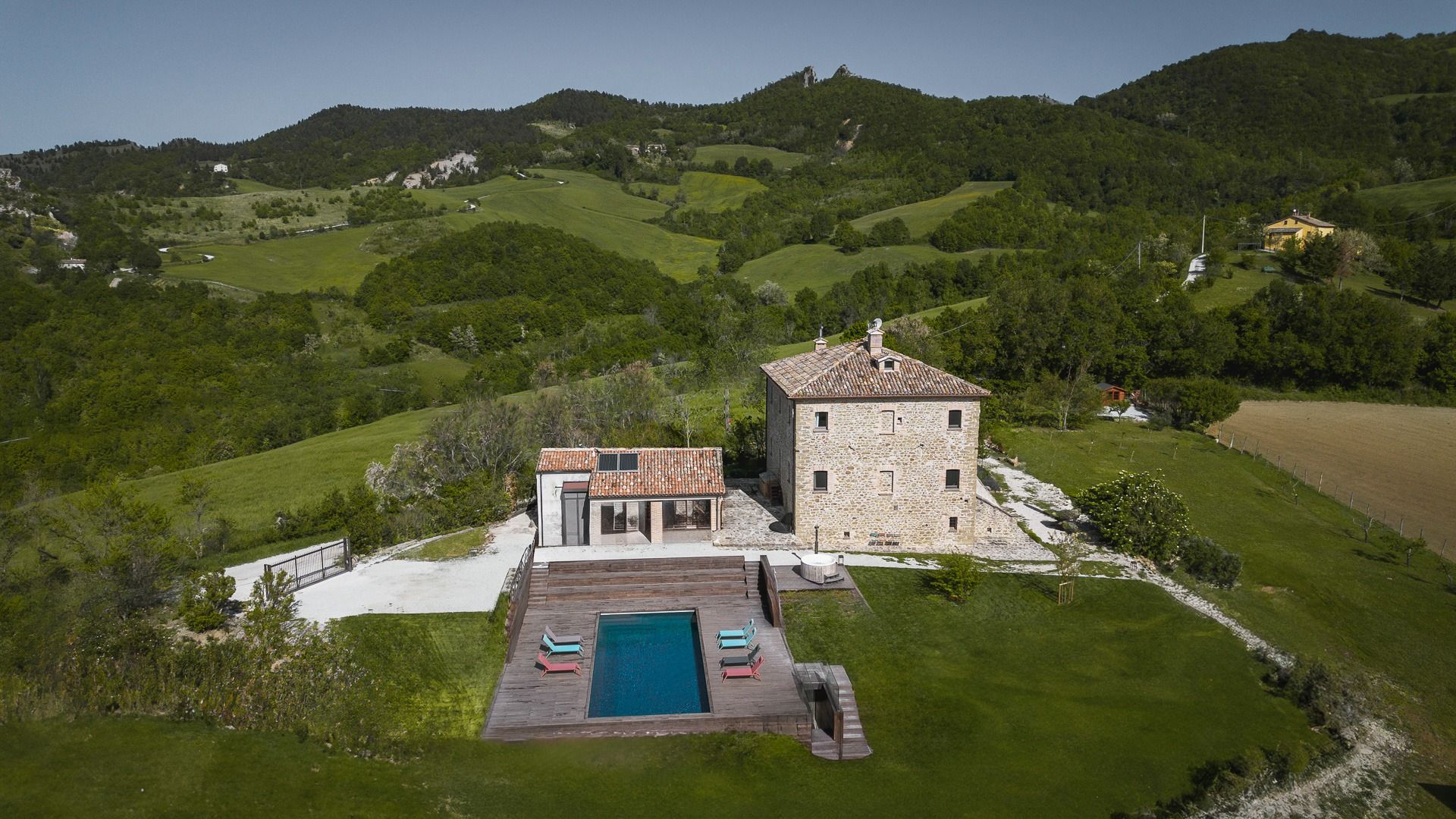 This showstopper of a home is a great choice for a group getaway. Standing on a hill with panoramic views across the Marecchia Valley and the Rocca di San Leo, you’ll really feel like you’ve got away from it all here. With a private pool, two hot tubs, and a cinema, there’s plenty to keep you entertained. And the former winery offers the perfect place for a communal meal or social event. With all that on offer, there’s really no need to leave, but if you do feel like venturing out, you’re just a ten-minute drive from the beautiful, medieval village of San Leo.