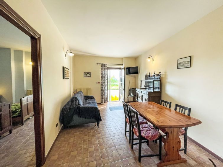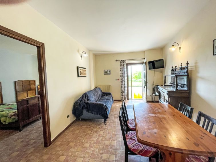 "Narcisio", 3-room apartment 85 m2, on the ground floor. Practical and rustic furnishings: living/sleeping room with 1 double sofabed and TV. 1 room with 2 beds. 1 double bedroom. Kitchenette (oven, Gas stove, 4 gas rings, toaster, kettle, electric coffee machine). Exit to the garden.