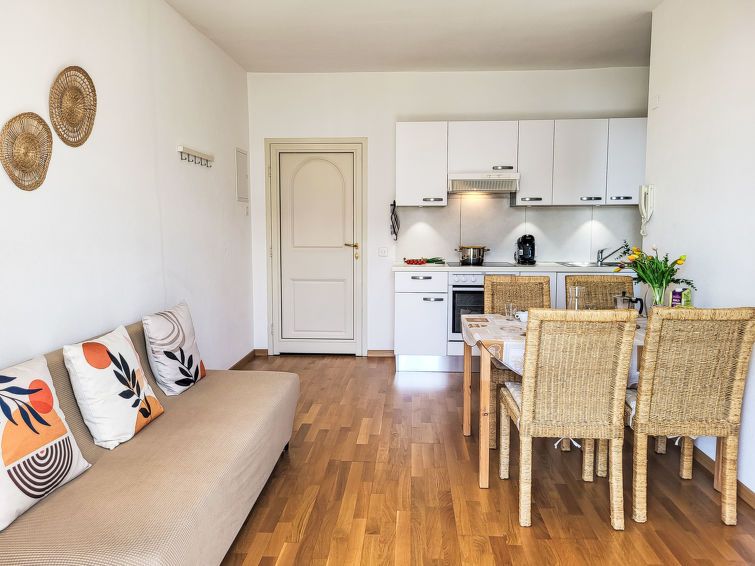"Casa Stella App. 1", 2-room apartment 50 m2, on the ground floor, south-east facing position. Object suitable for 2 adults + 1 child. Spacious and bright, partly renovated in 2021, beautiful and modern furnishings: open living/dining room with 1 sofabed (140 cm, length 190 cm), dining table, cable TV and international TV channels (flat screen), radio.