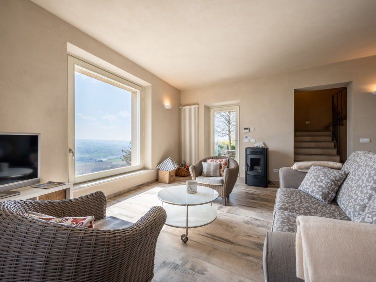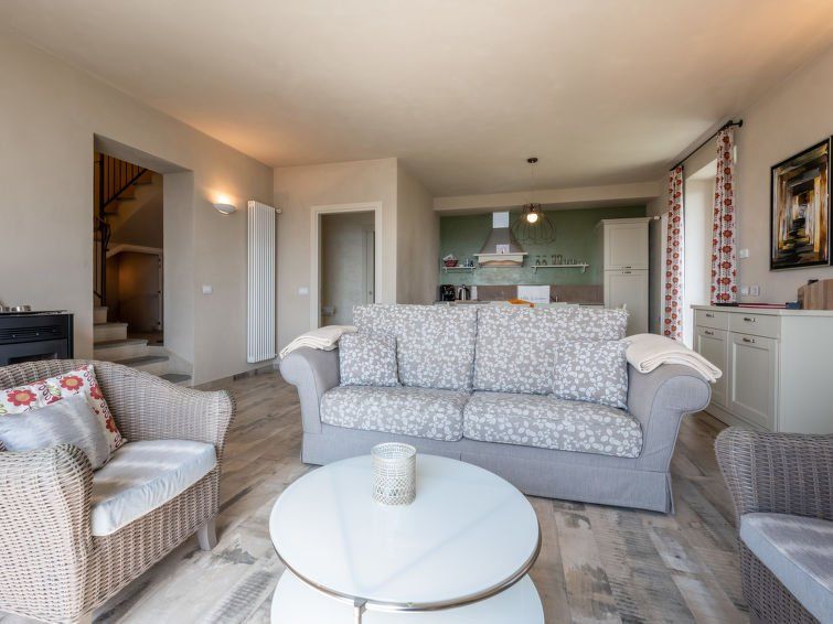"Cascina Vigne", 3-room semi-detached house 95 m2 on 2 levels. Comfortable and modern furnishings: living/sleeping room with 1 sofabed, Scandinavian wood stove, dining table, satellite TV and hi-fi system. Exit to the terrace. Open kitchen (dishwasher, 4 induction hot plates, toaster, kettle, freezer, electric coffee machine).