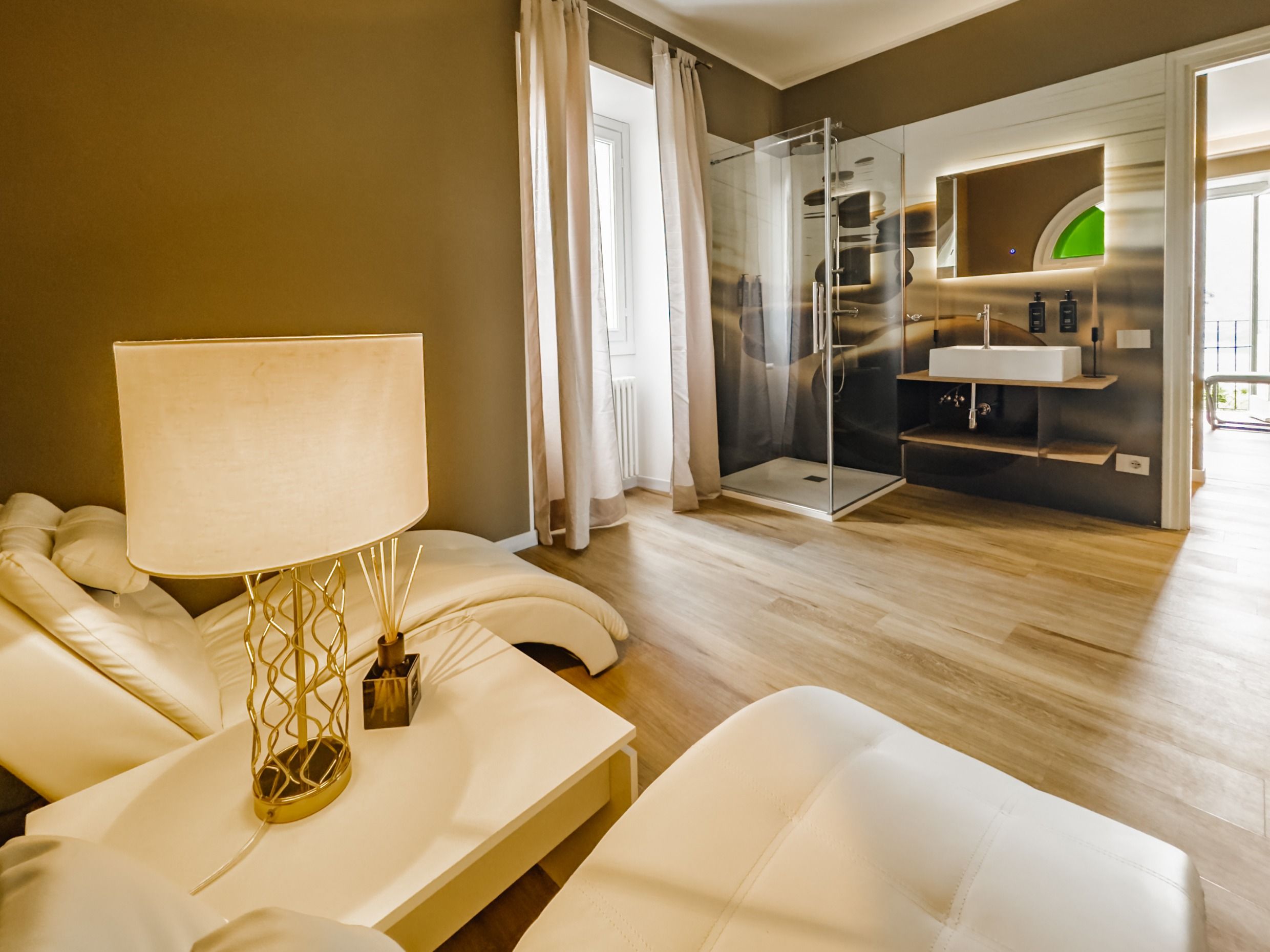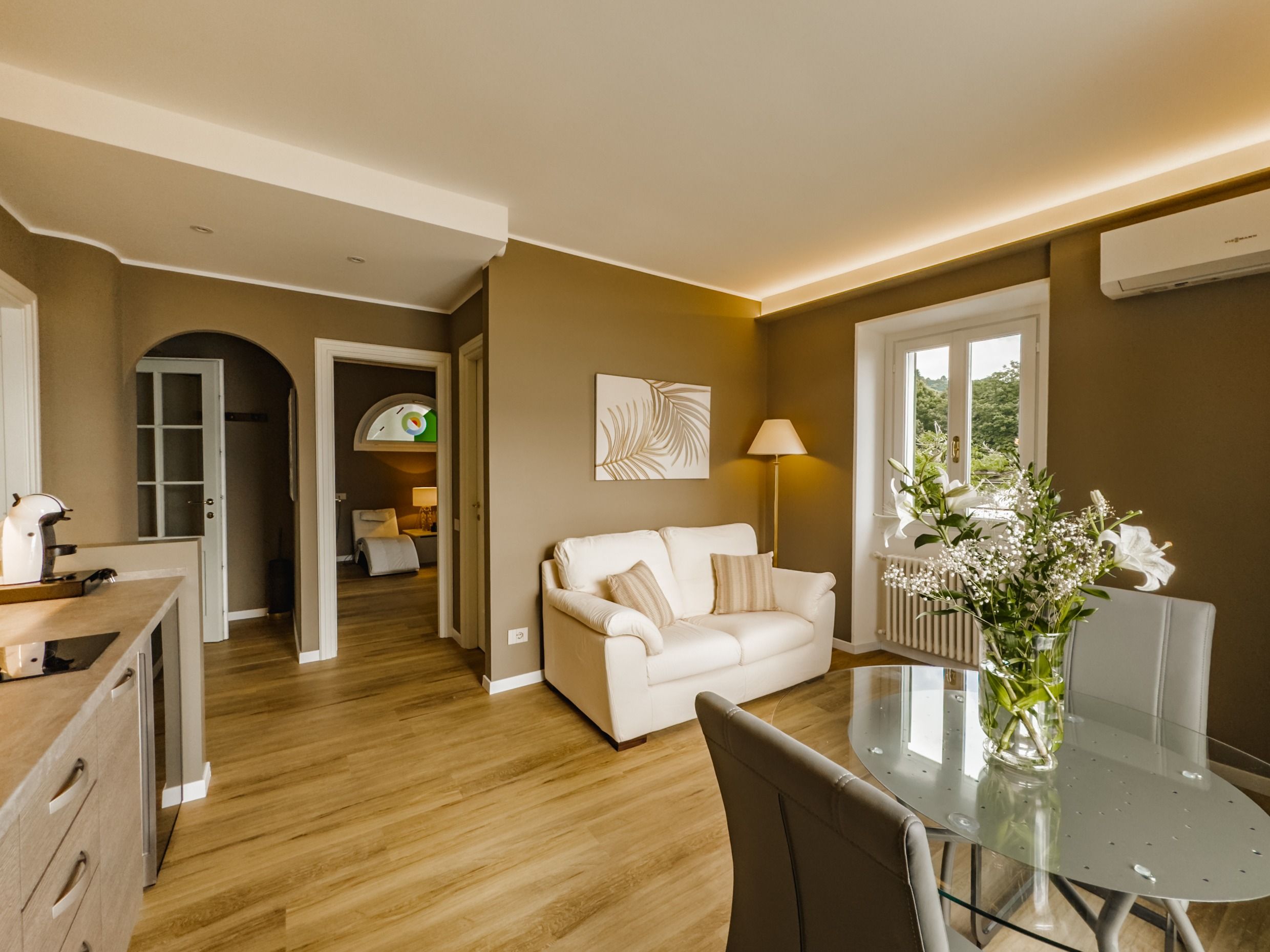 Indulge in a romantic getaway for two in this peaceful little spot on the edge of Lake Orta. Enjoy spectacular views of the lake from both the living room and bedroom, where the decor and furnishings are warm and inviting, offering an air of relaxation. We love the wide-open bathroom, which features a large walk-in shower and even comes with two massage chairs – perfect after a day on your feet. Outside, there’s a quiet patio in the courtyard with a trickling fountain, and guests also have access to the resort’s lakeside sun loungers and hot tub. A restful base in one of Italy’s prettiest lake towns.