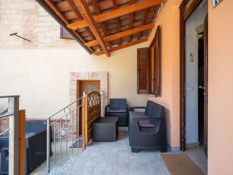 "Borghetto 2", 4-room apartment 120 m2 on 2 levels. Comfortable and tasteful furnishings: living room with open-hearth fireplace. Large kitchen (oven, dishwasher, 4 induction hot plates, toaster, kettle, microwave, electric coffee machine). Shower/WC. Upper floor: 3 double bedrooms.