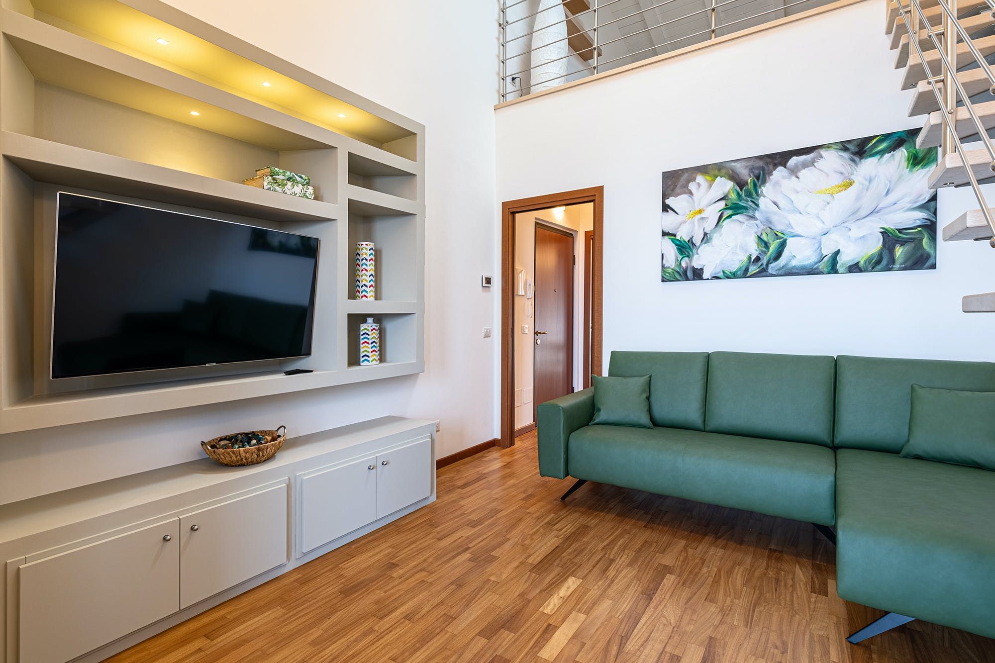 *The bedroom is located on a mezzanine level, and the bathroom is downstairs opposite the living room, which might not suit all guests