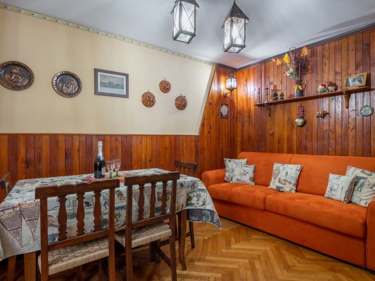 "Hedelweiss house", 2-room apartment 70 m2 on 2nd floor. Renovated: entrance hall. Living/dining room with 1 sofabed, TV and heating stove. Exit to the balcony. 1 double bedroom with 1 bed and 1 x 2 bunk beds. Exit to the veranda. Small kitchen (oven, dishwasher, Gas stove, 4 gas rings, kettle, microwave, electric coffee machine) with TV.