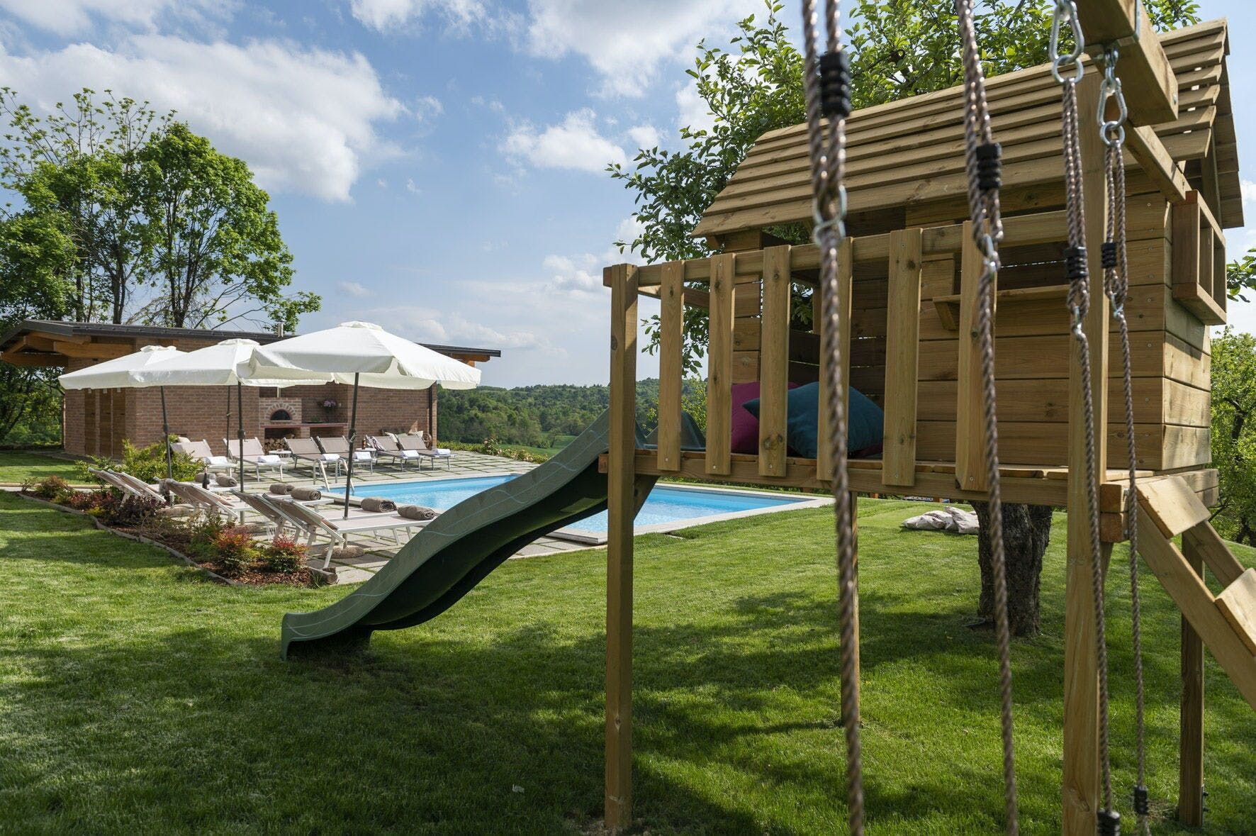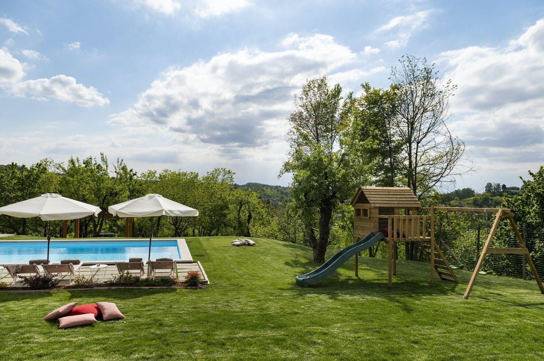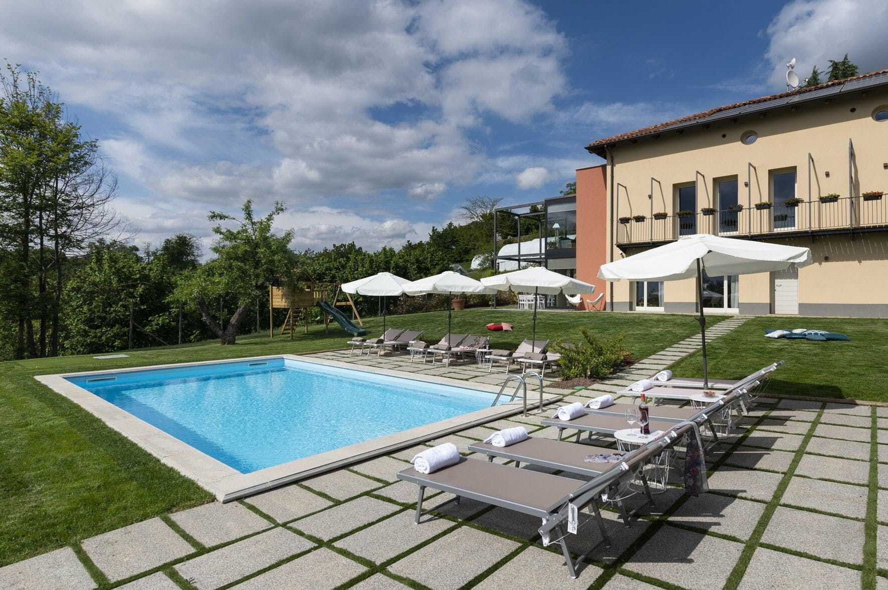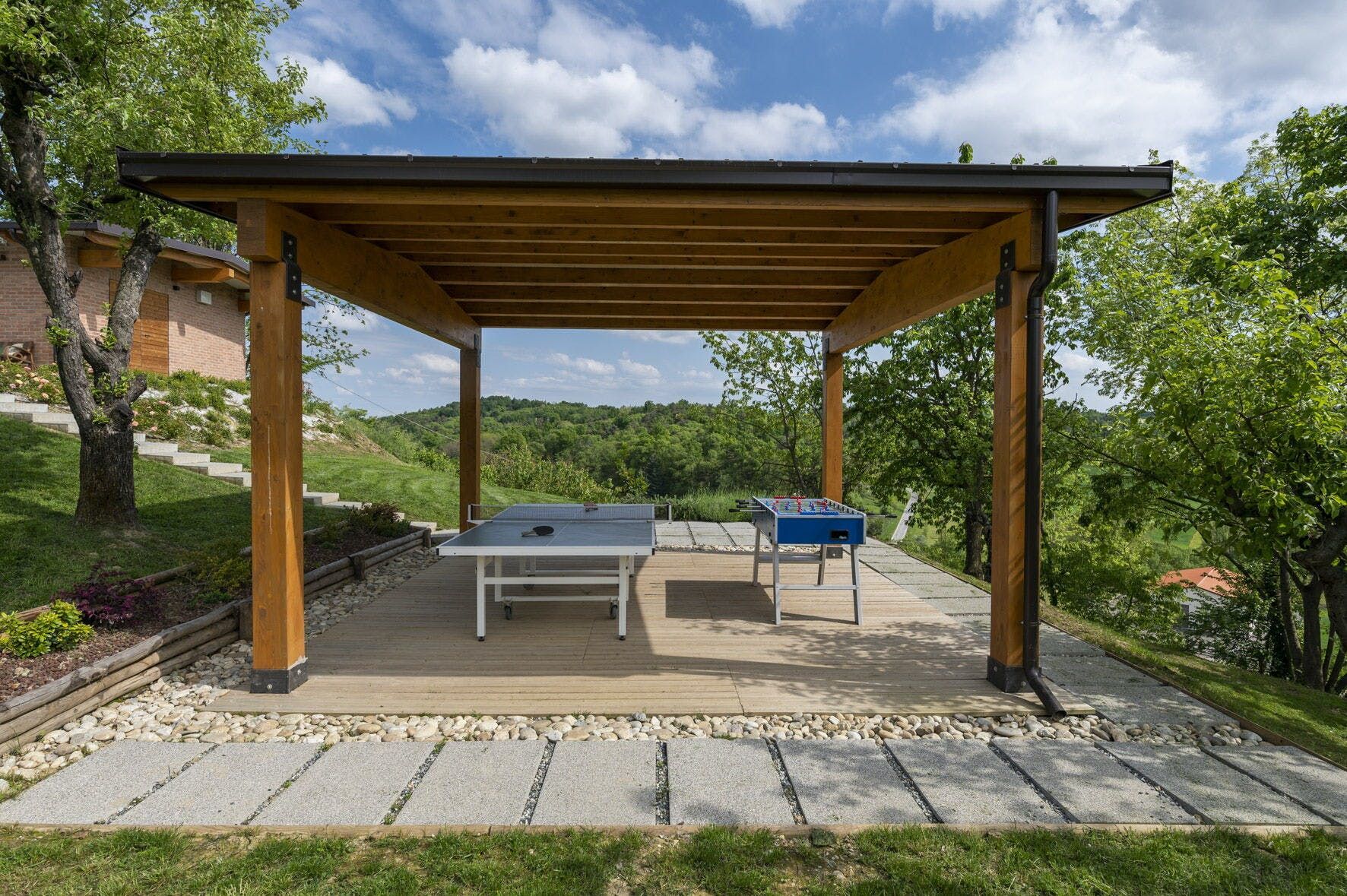 This large villa is the perfect place to relax and enjoy your holiday with your family. The property has a swimming pool, a ping-pong table, a table soccer, a children's play area, a wood-burning pizza oven and a gas barbecue. The house has been renovated with a focus on sustainability, using only natural materials and products. It is located in the town of Monteu Roero, in the province of Cuneo, just 2 kilometers from the village, less than 20 kilometers from the towns of Alba and Bra, and 50 kilometers from Turin.