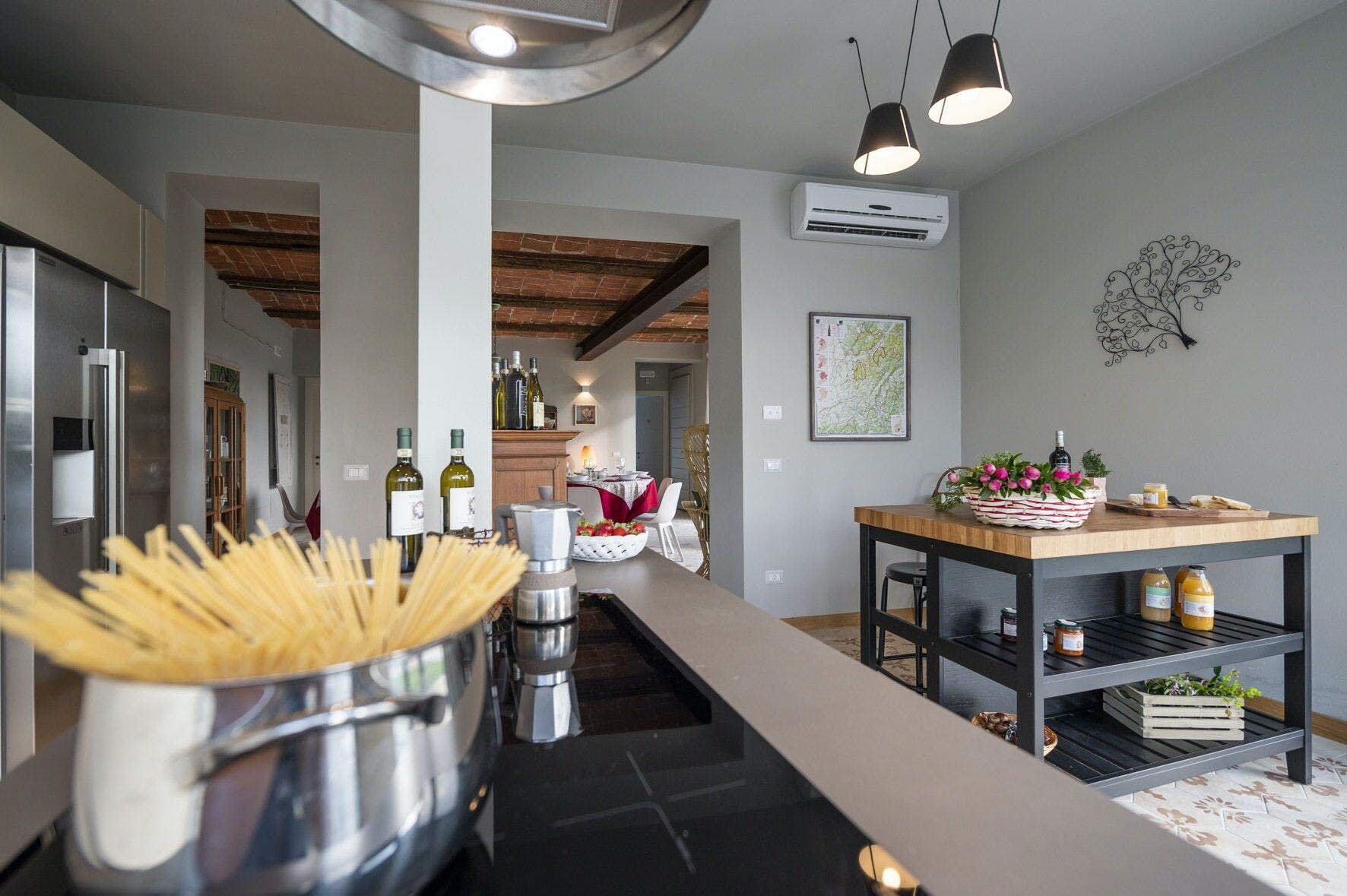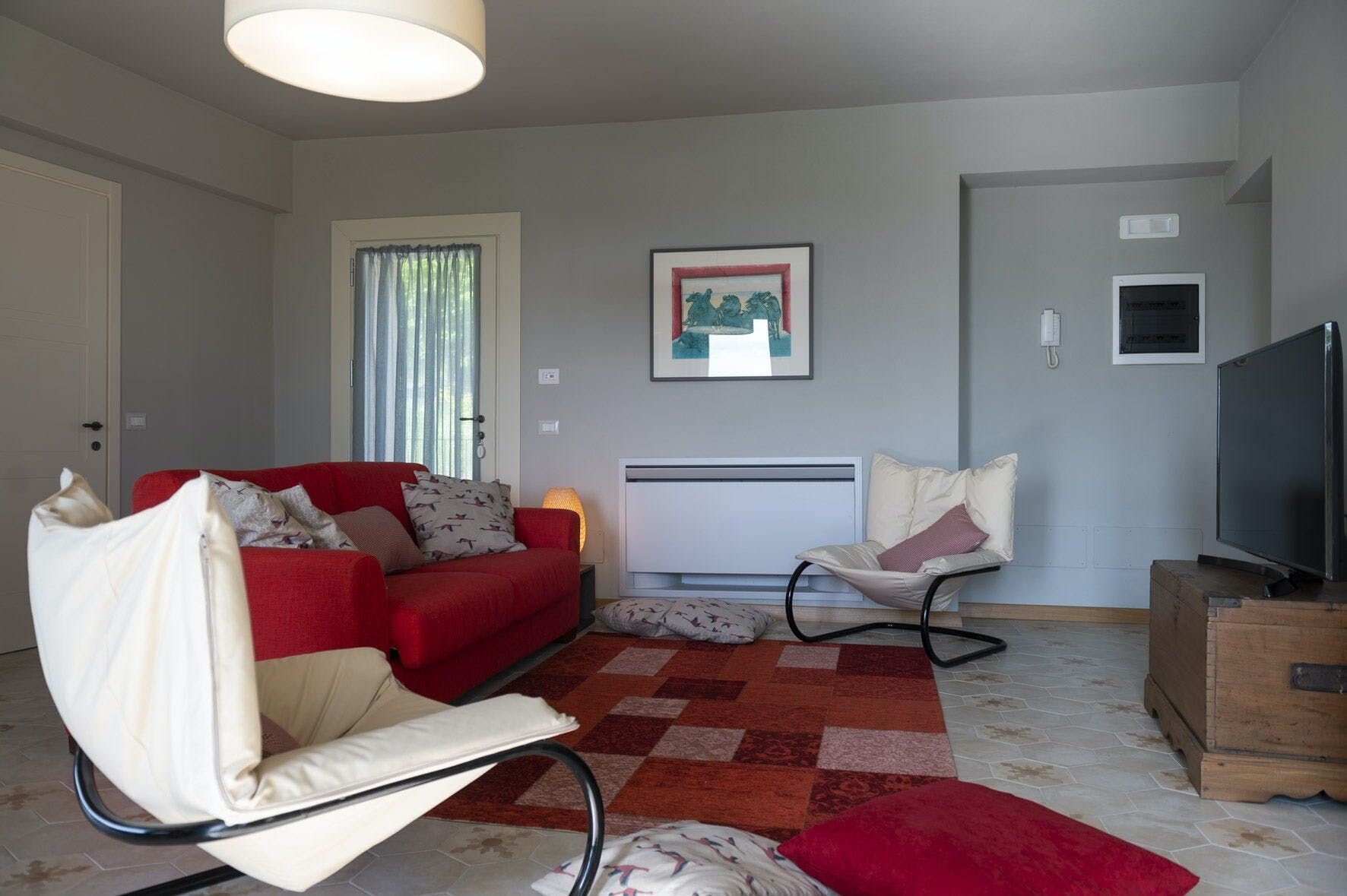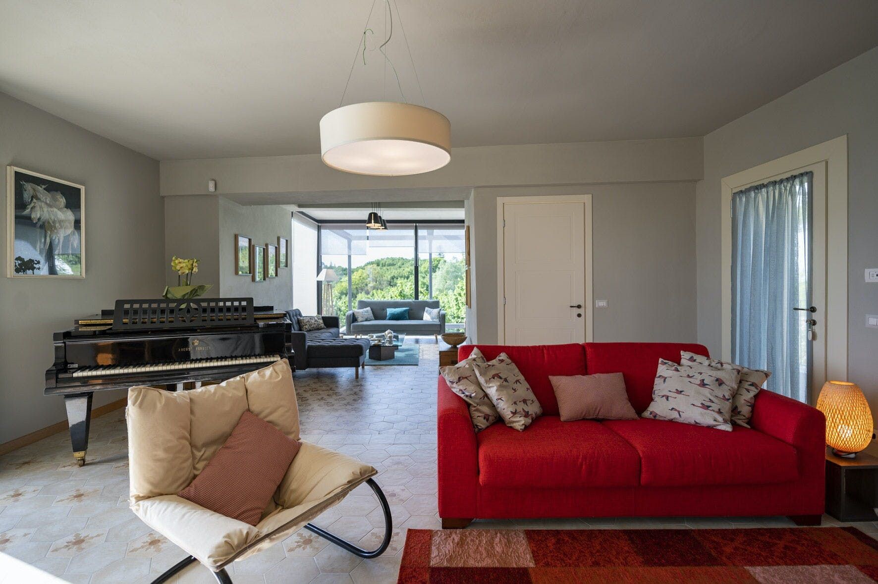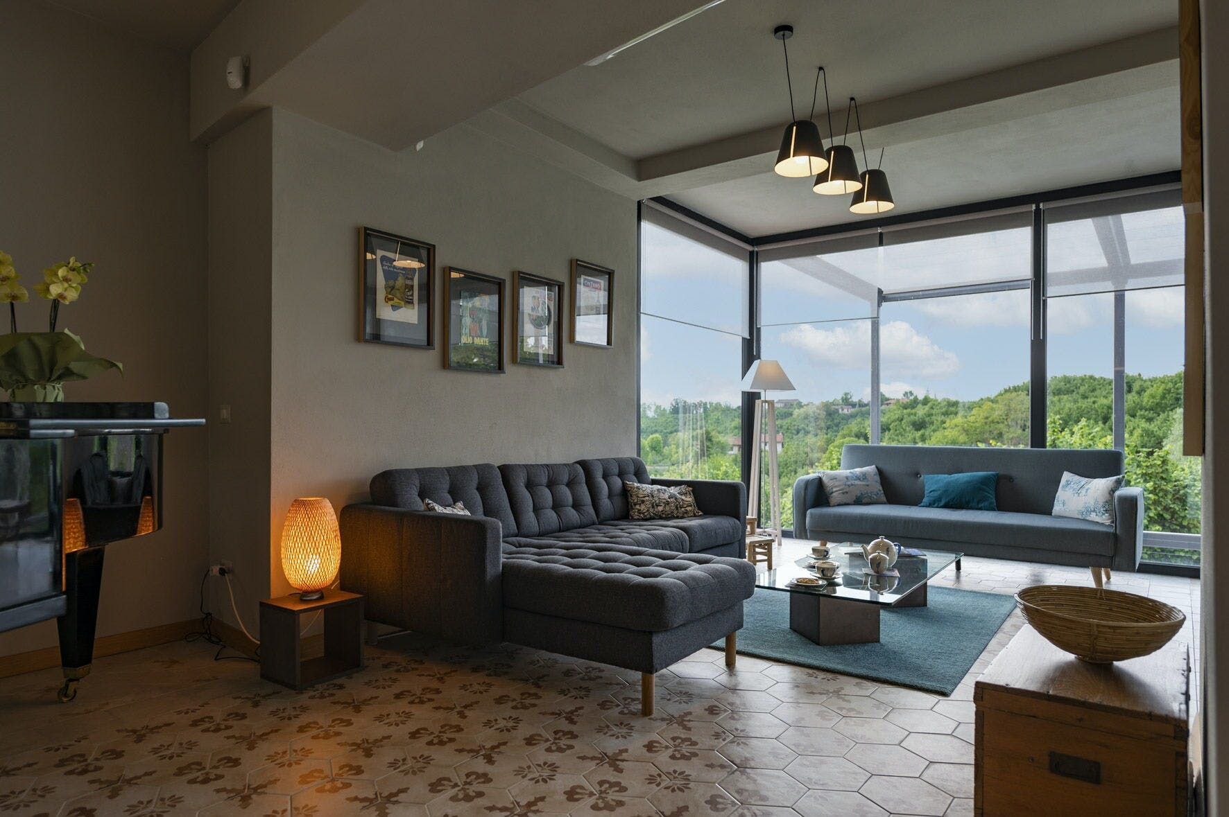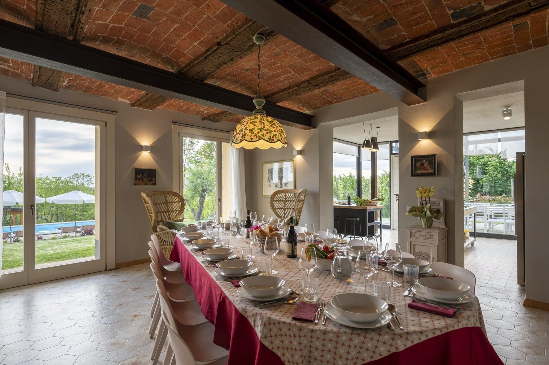 This large villa is the perfect place to relax and enjoy your holiday with your family. The property has a swimming pool, a ping-pong table, a table soccer, a children's play area, a wood-burning pizza oven and a gas barbecue. The house has been renovated with a focus on sustainability, using only natural materials and products. It is located in the town of Monteu Roero, in the province of Cuneo, just 2 kilometers from the village, less than 20 kilometers from the towns of Alba and Bra, and 50 kilometers from Turin.