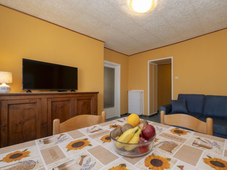4-room terraced house 80 m2 on 2 levels. Practical furnishings: living/dining room. Open kitchen (4 hot plates, oven, kettle, microwave, electric coffee machine) with dining table. Shower/bidet/WC. Upper floor: living room with TV. 2 double bedrooms. Gas heating. Heating available only from 01.