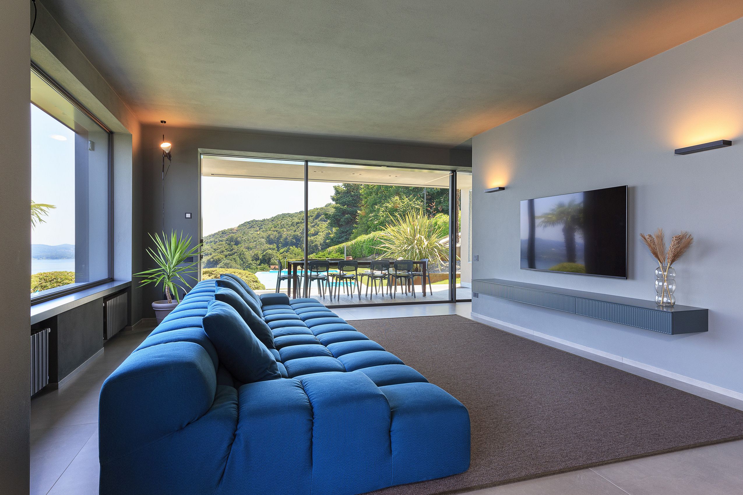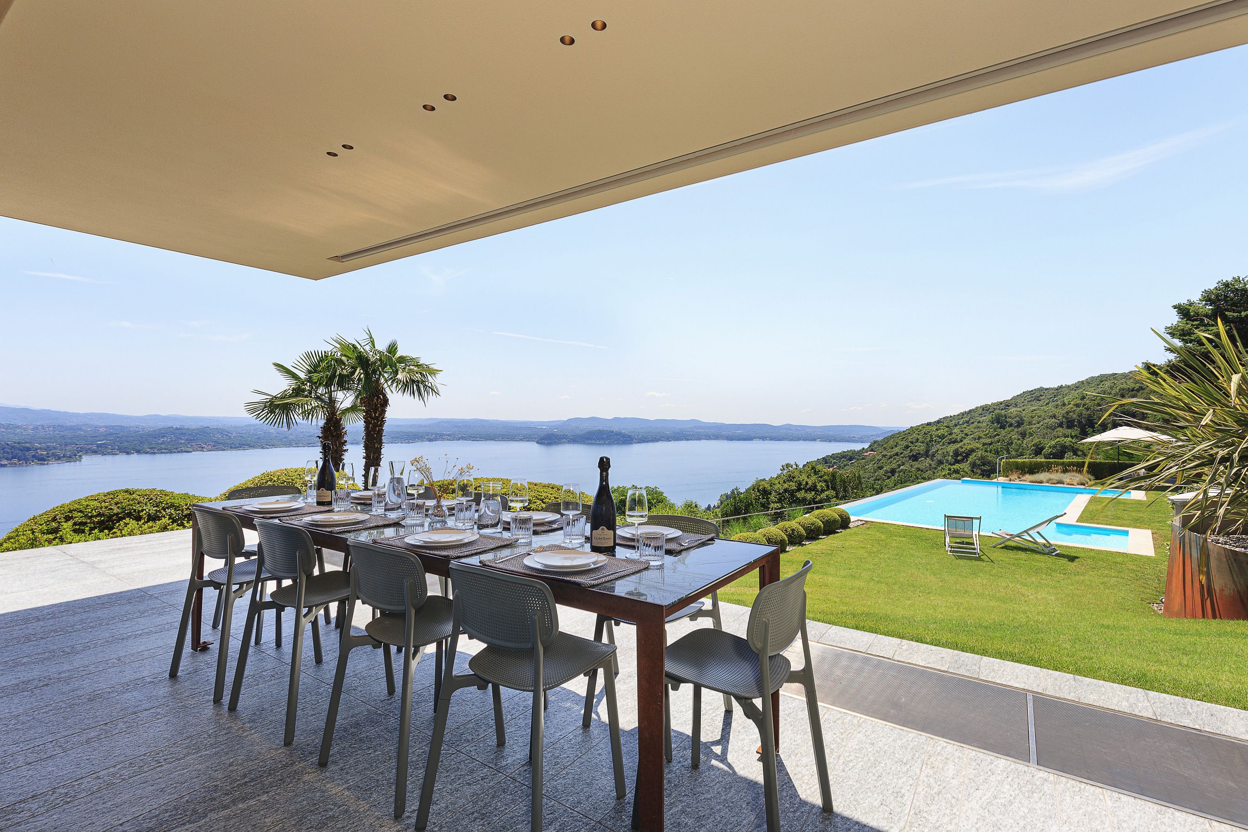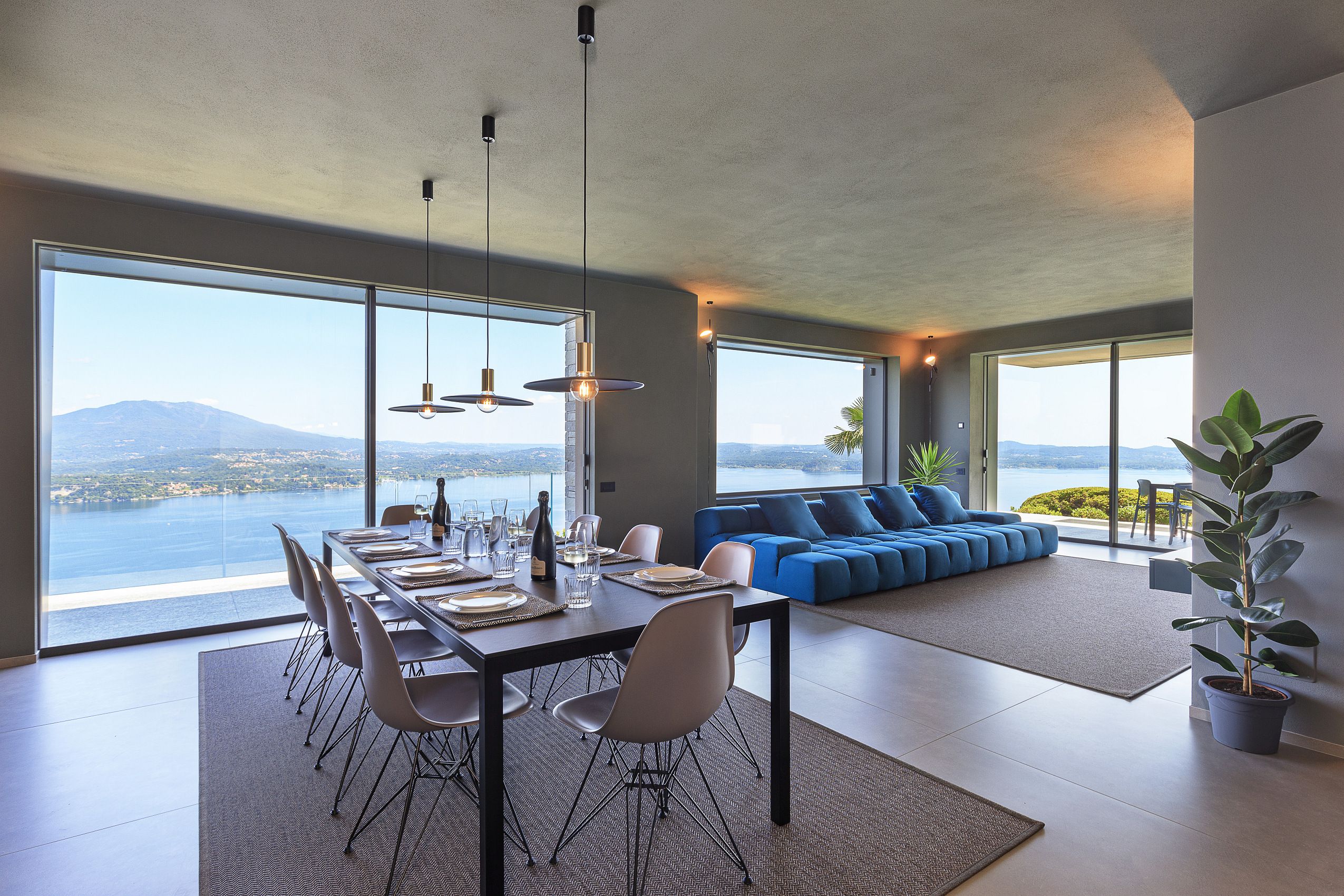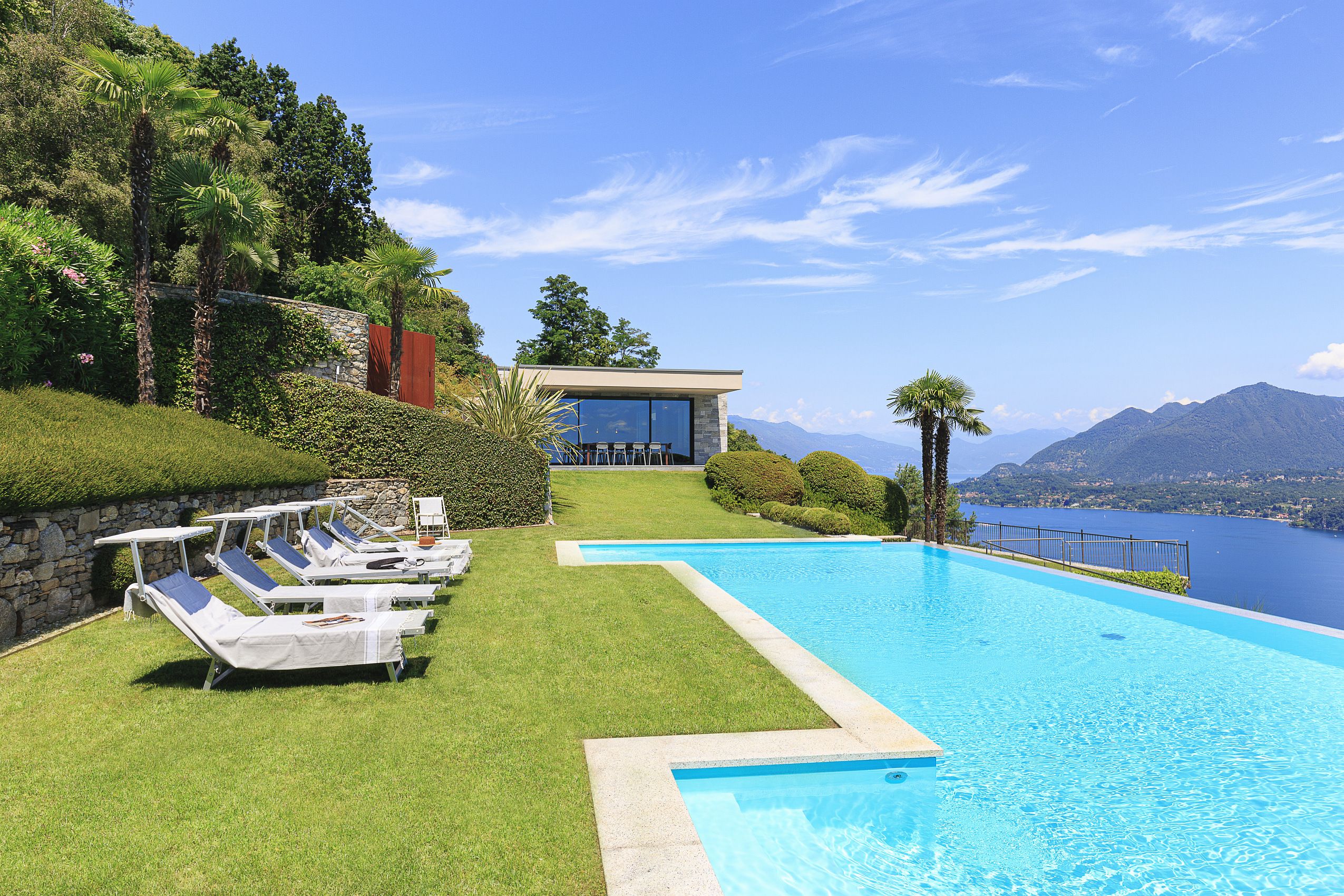 If you could pick up your home and place it anywhere in the world, an Italian, hillside spot with 180-degree views of Lake Maggiore would be a superb bet. Well, the dream location has already been snapped up by this Piedmont villa, and these panoramic scenes could not be any more beautiful. From the privacy of your infinity pool, balcony, and expansive, green garden, it feels as if the entire landscape is yours alone. Standing in a bold statement against its organic country setting, the bright red exterior offers a warm welcome and a colourful start to your stay. Inside, a monochrome theme cools things down with sharp edges, clean lines, and a sleek, modern, grey kitchen. Lunch doesn’t get any better than feasting upon local produce and wine from the renowned Piedmont vineyards. With the peaceful village of Magognino to call home, more shops, restaurants, and a picturesque promenade can be found down on the lake. From there, why not catch a ferry to explore magical islands, or the natural beauty of both Italy and Switzerland. Whether on land or water, there is nothing this home cannot offer you.