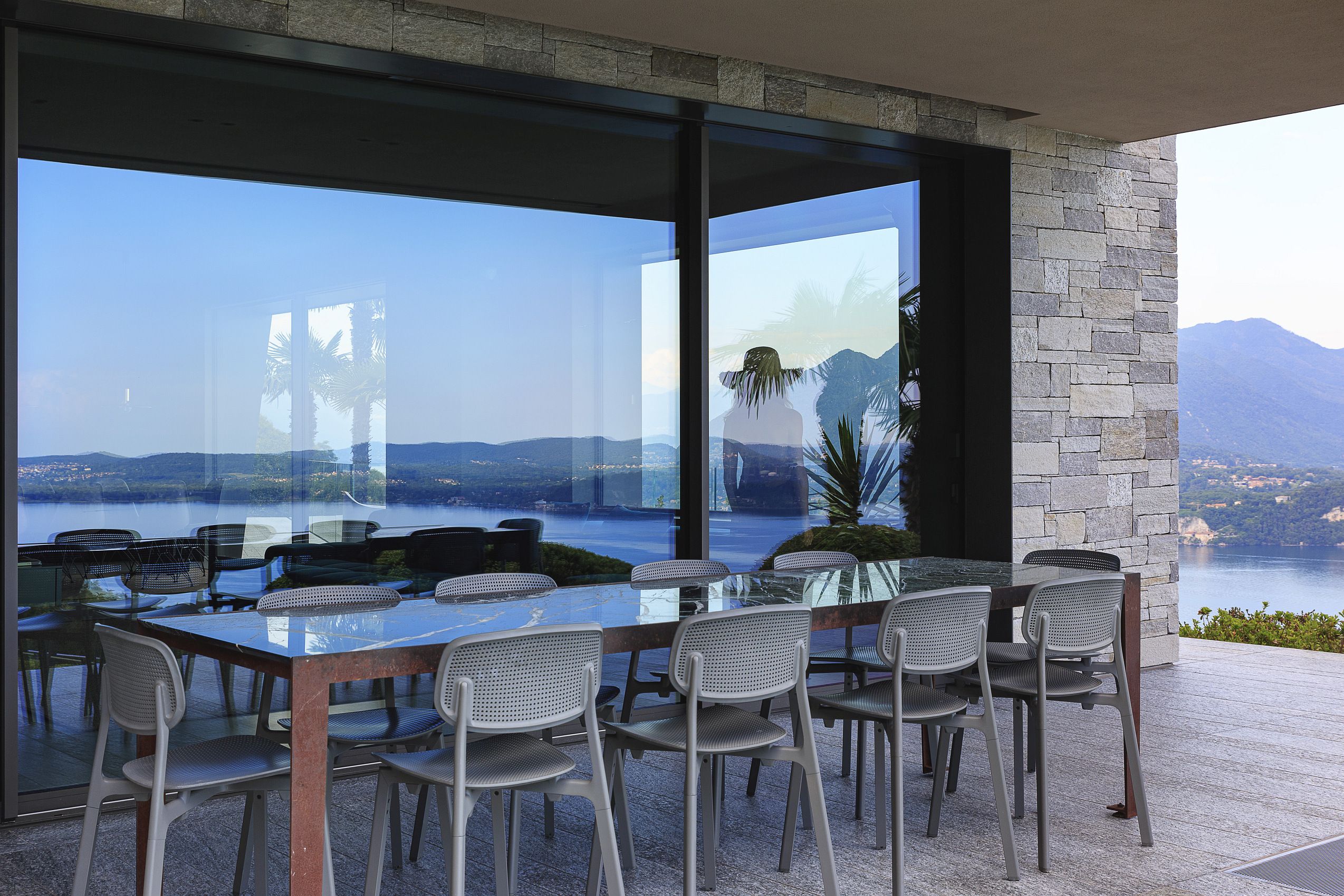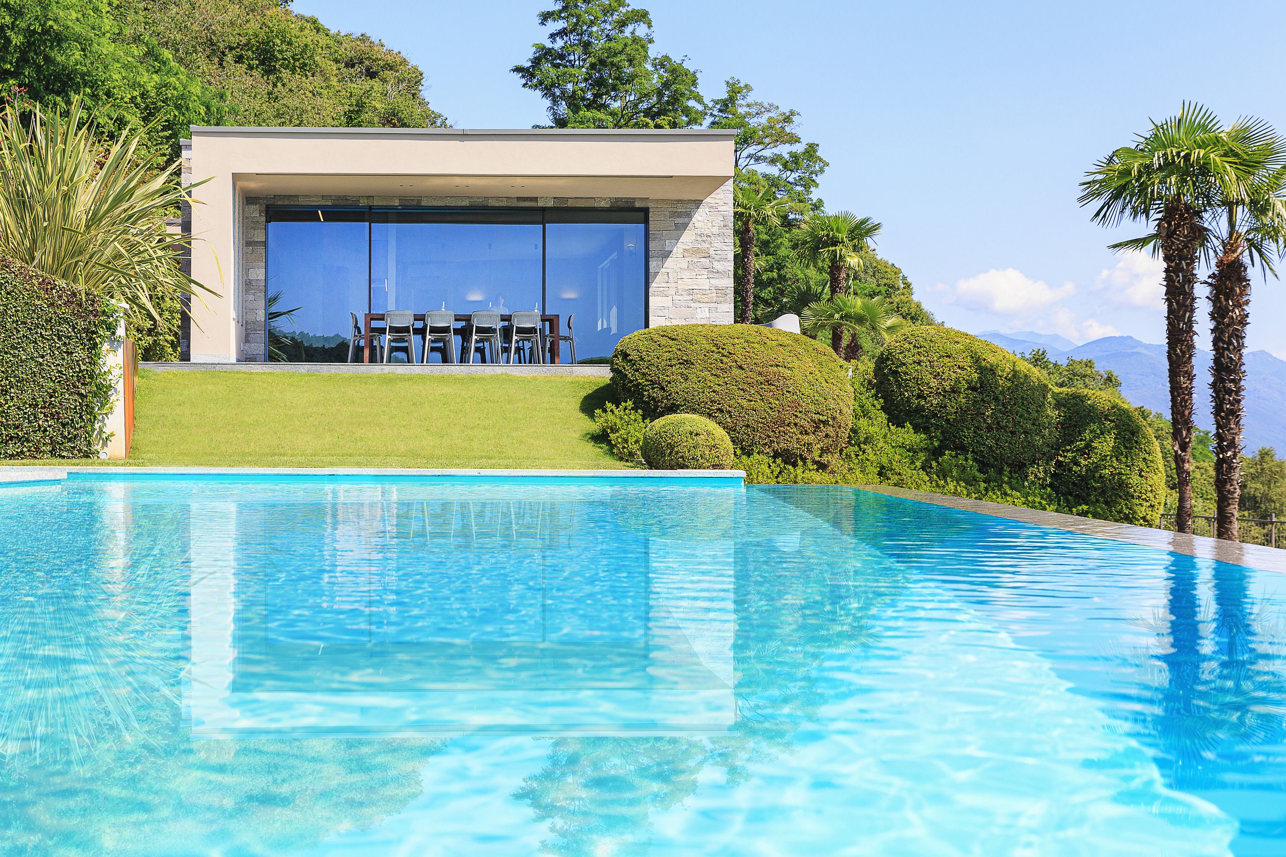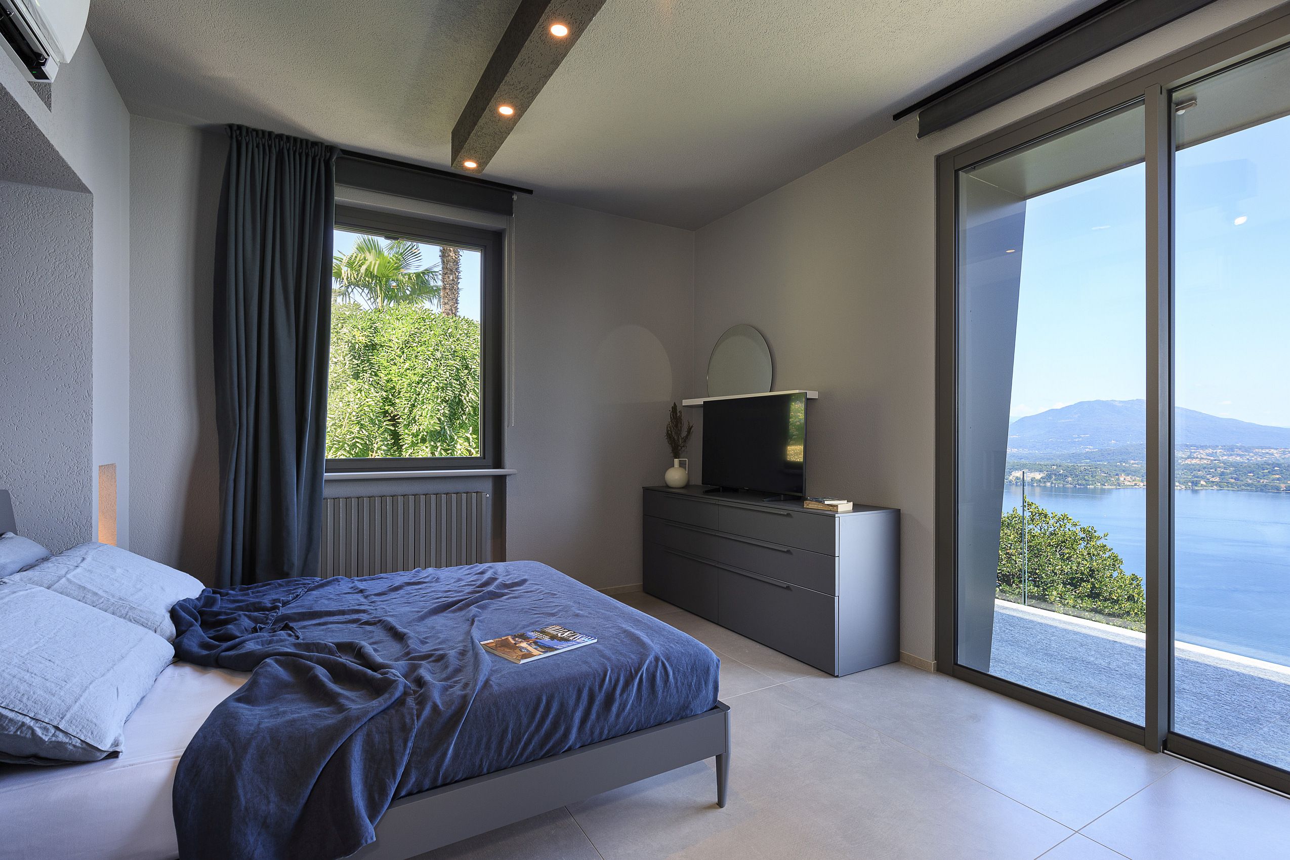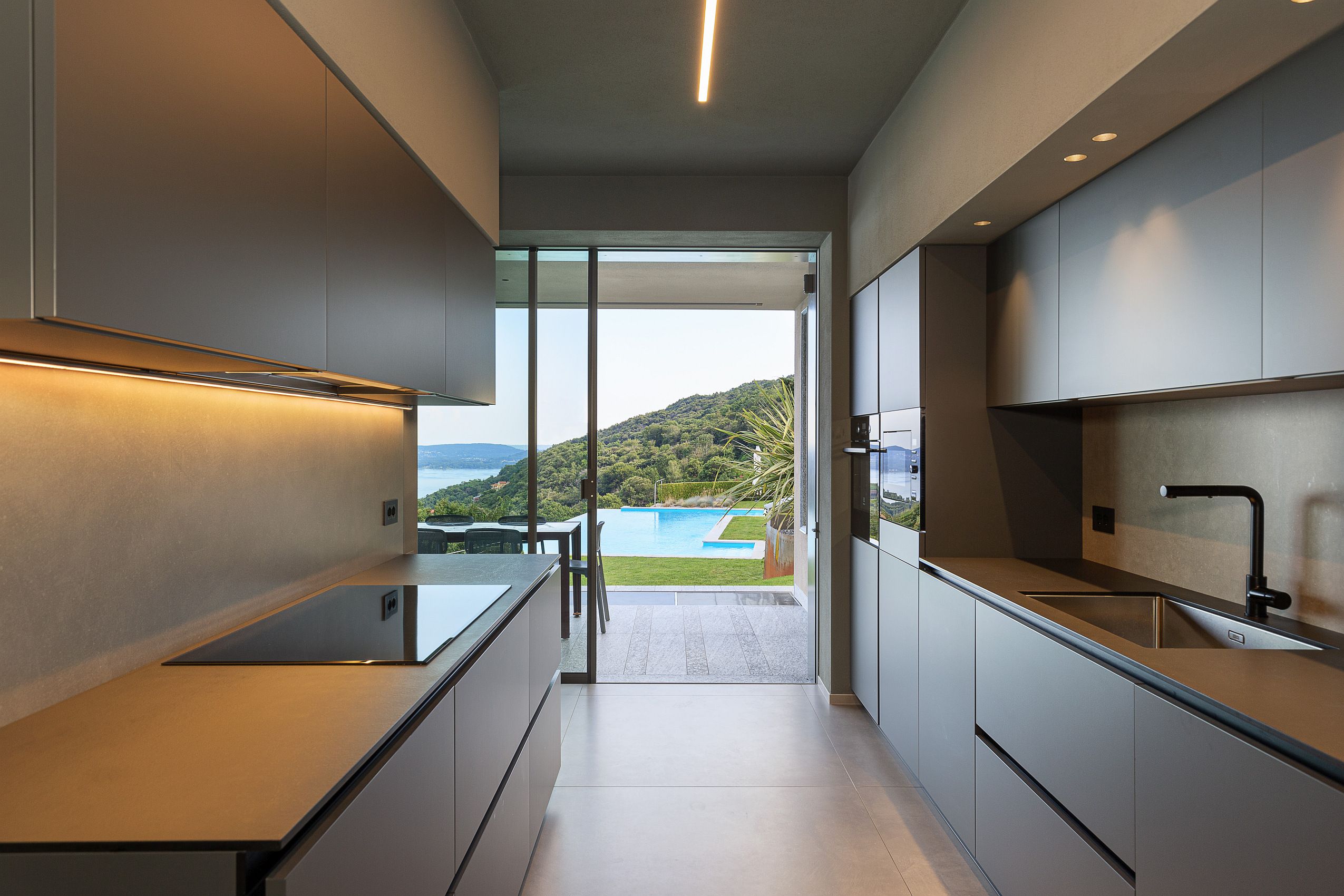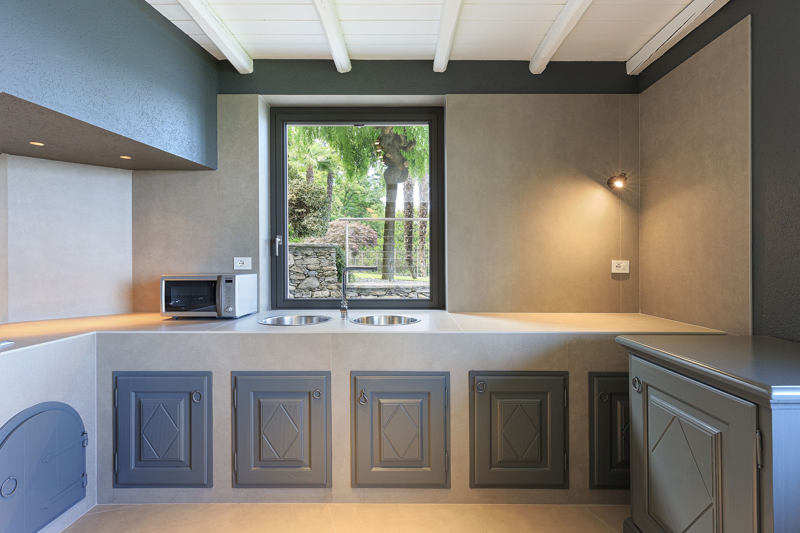 If you could pick up your home and place it anywhere in the world, an Italian, hillside spot with 180-degree views of Lake Maggiore would be a superb bet. Well, the dream location has already been snapped up by this Piedmont villa, and these panoramic scenes could not be any more beautiful. From the privacy of your infinity pool, balcony, and expansive, green garden, it feels as if the entire landscape is yours alone. Standing in a bold statement against its organic country setting, the bright red exterior offers a warm welcome and a colourful start to your stay. Inside, a monochrome theme cools things down with sharp edges, clean lines, and a sleek, modern, grey kitchen. Lunch doesn’t get any better than feasting upon local produce and wine from the renowned Piedmont vineyards. With the peaceful village of Magognino to call home, more shops, restaurants, and a picturesque promenade can be found down on the lake. From there, why not catch a ferry to explore magical islands, or the natural beauty of both Italy and Switzerland. Whether on land or water, there is nothing this home cannot offer you.