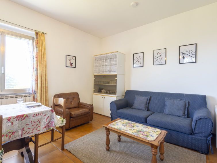 "Edo", 3-room apartment 70 m2, on the ground floor. Practical and cosy furnishings: living/dining room with satellite TV. Exit to the patio. 1 double bedroom. 1 small room with 2 beds. Kitchenette (4 hot plates, oven, dishwasher, kettle, electric coffee machine). Shower/bidet/WC. Gas heating.