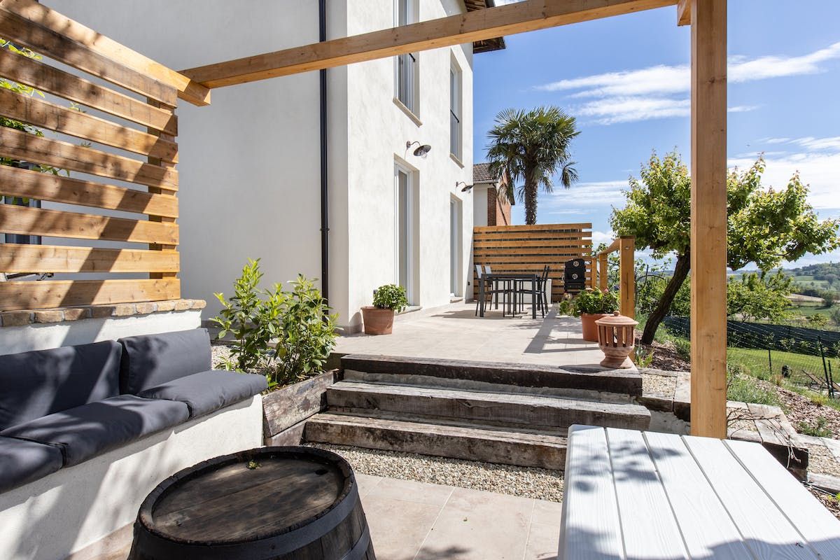 Over the rolling hills of Monferrato, amidst vast Italian landscapes – resides a peaceful country hideaway boasting the most beautiful vistas of the snow-capped mountains in the distance. Recently renovated, the home is a brand new barn conversion with its own spacious garden, swimming pool and outdoor lounge areas. The barn was designed to transition with the changing seasons in mind, and so feels light and airy during the warm summer months, yet warm and cosy come winter. Light up the log fire burner in the humble living room when it's cold and open up the floor-to-ceiling windows to let the fresh air in when it's hot. The open-plan living area will ensure a sociable stay from the inside, while the large terrace with a dining table and chairs serve perfectly for those long summer evenings of dining alfresco. There is also a relaxing corner under the pergola, where you can lounge around come day or night – it's the perfect spot to find some shade or watch the sunset. With Turin just an hours drive away, you're secluded and out of the action at this retreat in Sanico, however, feel rest assured that you're not too far away from the city's sights should you wish to explore further afield.