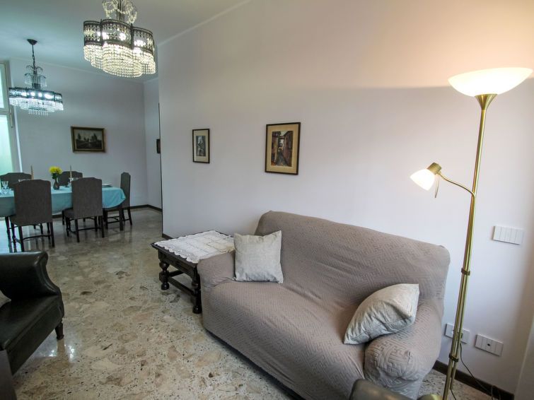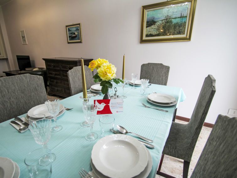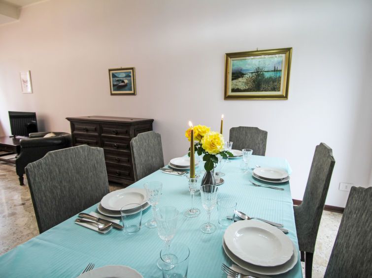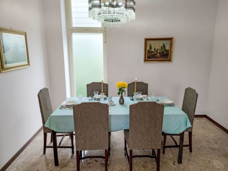 4-room apartment 95 m2 on 1st floor. Fully renovated in 2023, practical and cosy furnishings: living/dining room with TV and electric shutters. 1 double bedroom with fan. Exit to the balcony. 1 room with 1 bed, 1 pull-out bed and fan. 1 room with 1 x 1 bunk beds (140 cm), fan. Kitchen (4 hot plates, dishwasher, kettle, freezer, electric coffee machine) with dining table.
