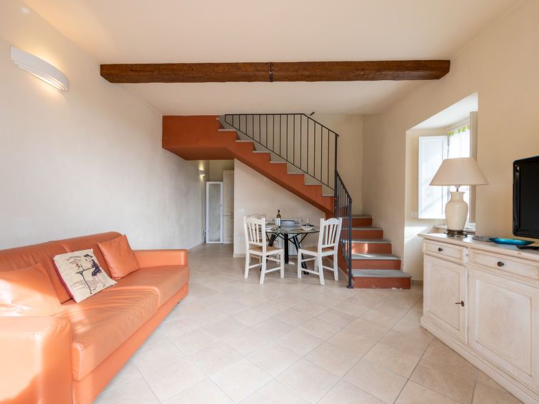 "Marco", 2-room apartment 75 m2 on 2 levels. Rustic furnishings: living/sleeping room with 1 double sofabed and TV. Exit to the terrace. Open kitchen (oven, Gas stove, 4 gas rings, toaster, kettle, electric coffee machine). Upper floor: 1 double bedroom. Shower/WC. Heating. Heating available only from 01.