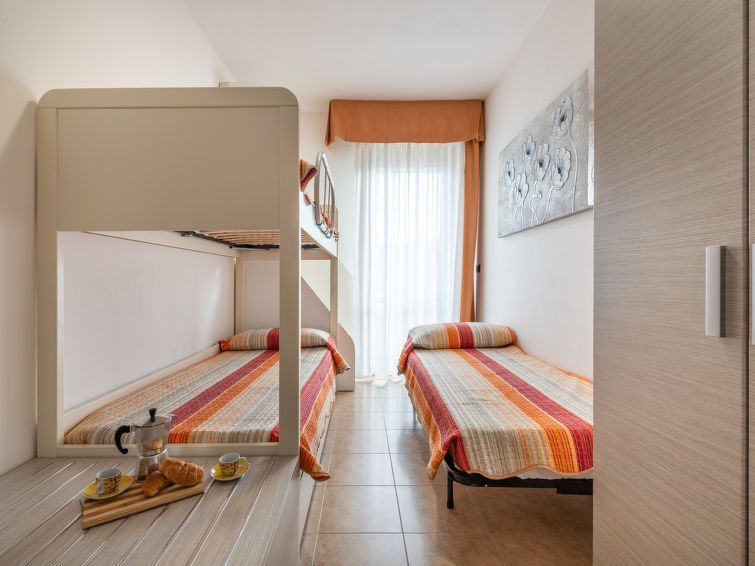 3-room apartment 65 m2 on 1st floor. Comfortable and modern furnishings: living/dining room with 1 sofabed, dining table, cable TV and air conditioning. Exit to the balcony. 1 double bedroom with air conditioning. 1 room with 1 bed and 1 x 2 bunk beds, air conditioning. Kitchenette (4 hot plates, dishwasher, microwave, freezer).