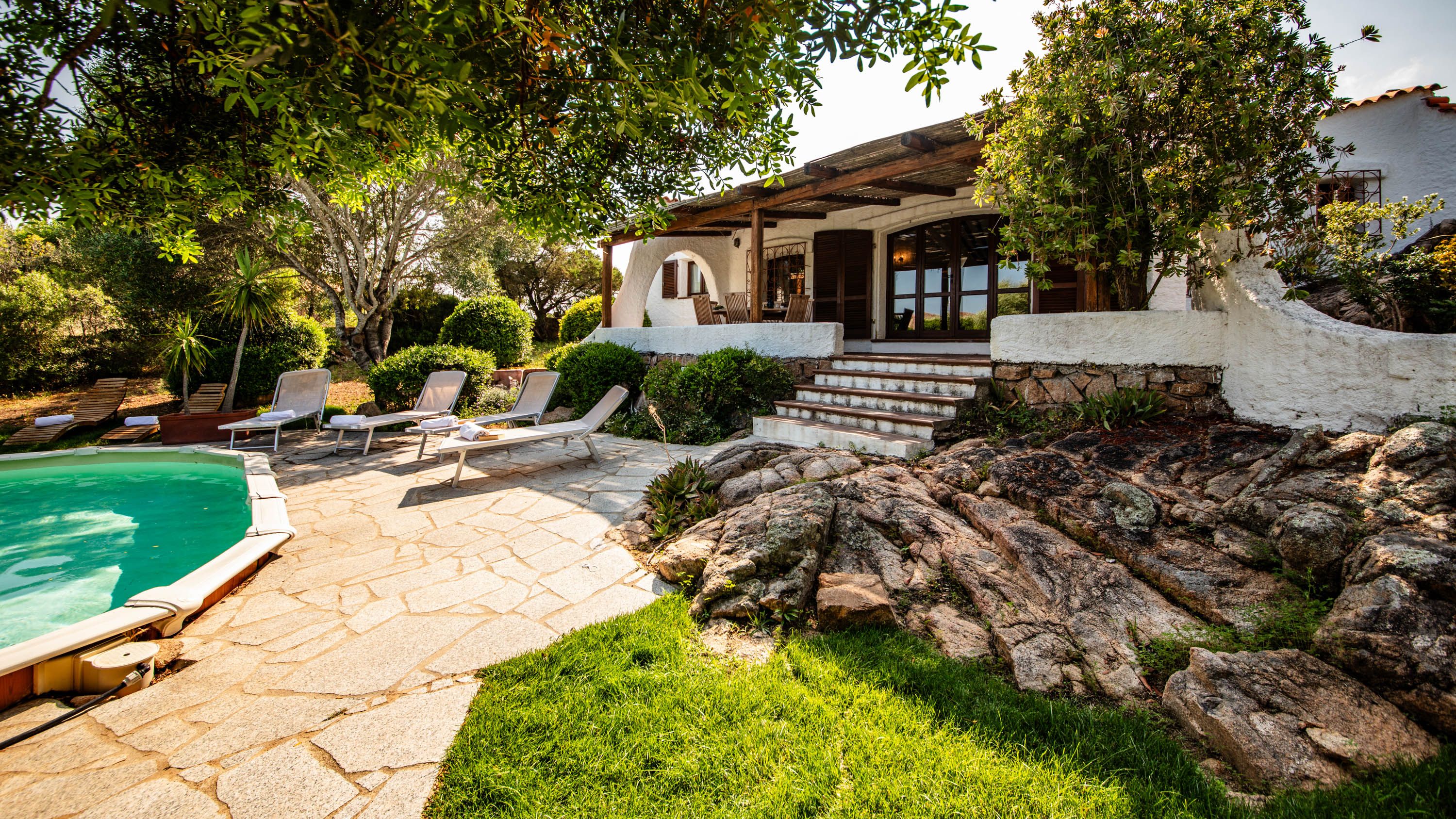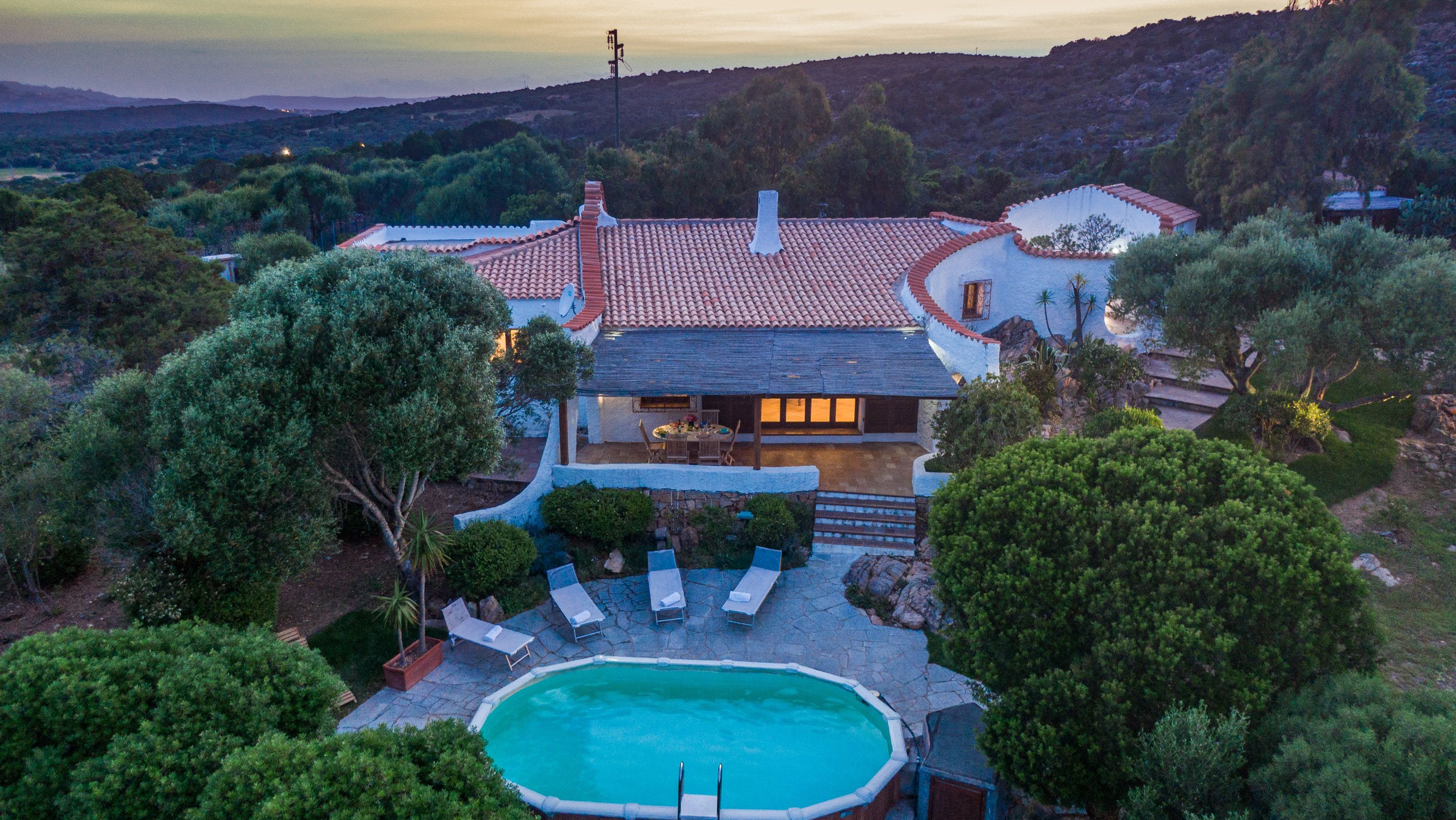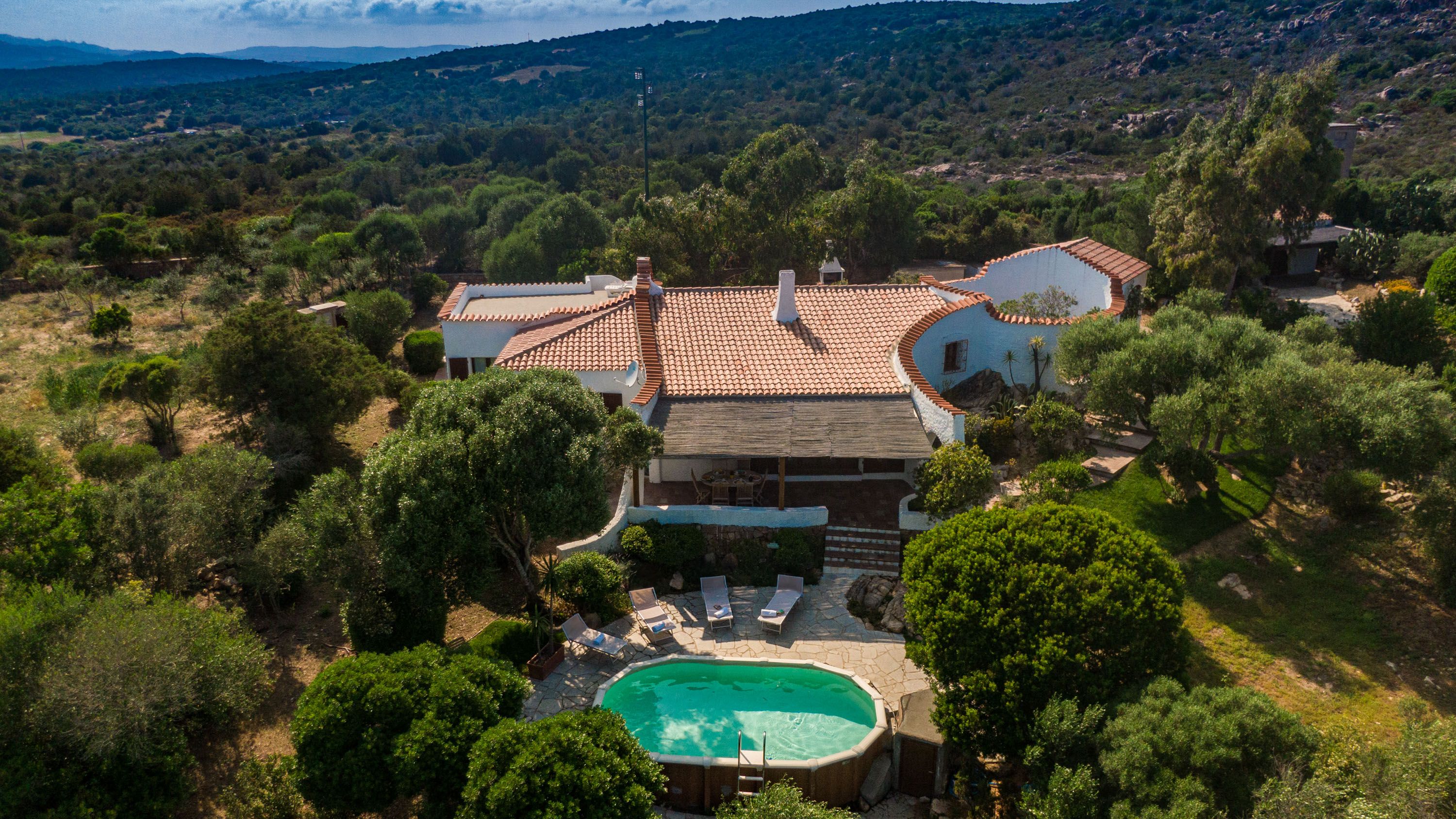 Nestled in the hills of Monte Altura lies this beautiful villa, perfect for those who want to just get away from everything. Enjoy the natural daylight permeating the indoor space and spend some time by the private pool in the morning, whether you're starting your day with some laps or a cup of coffee on the covered veranda. In the evening, the uniquely-designed fireplace makes the living space into the perfect cosy spot for everyone to gather for a movie night, or just to socialise and recount tales of the day. The kitchen gives you direct access to the barbecue area, so dining alfresco has never been easier, no matter what's for dinner. Challenge friends and family to a game of chess with the unique board in the living area after dinner. In the evening, head out to the terrace at the back of the home where you can enjoy a breathtaking panoramic view of the Maddalena Archipelago as the sun sets.